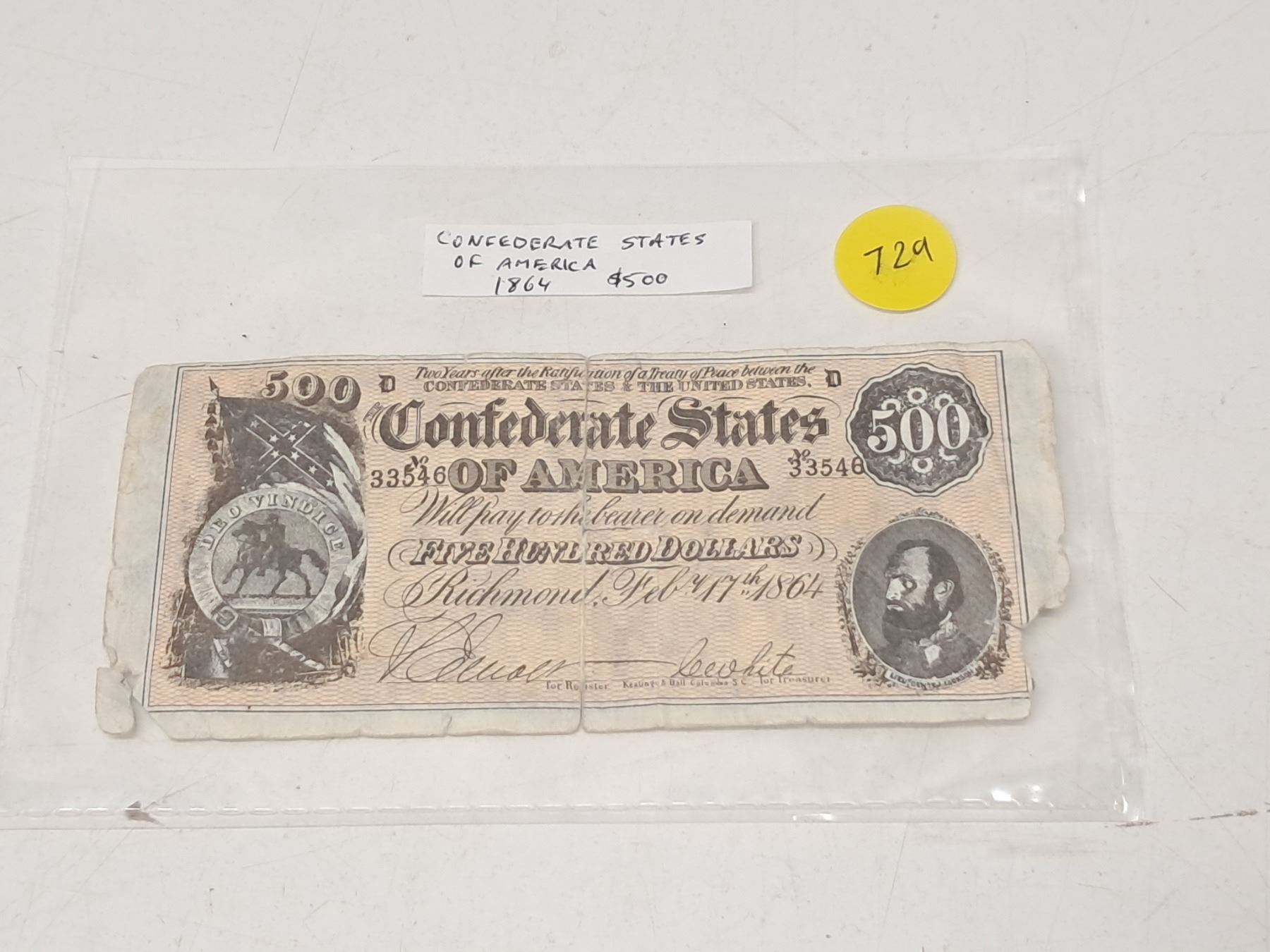 "replica of confederate state of America" 1864 $500