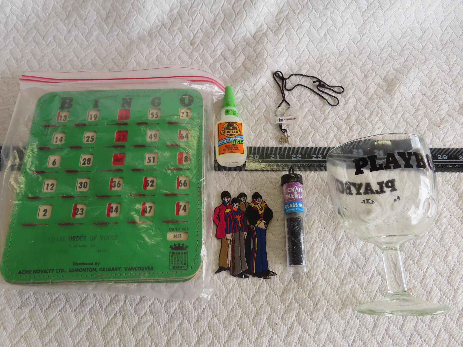 reproduction Beatles patch, 6 bingo cards, Chinese sugar symbol