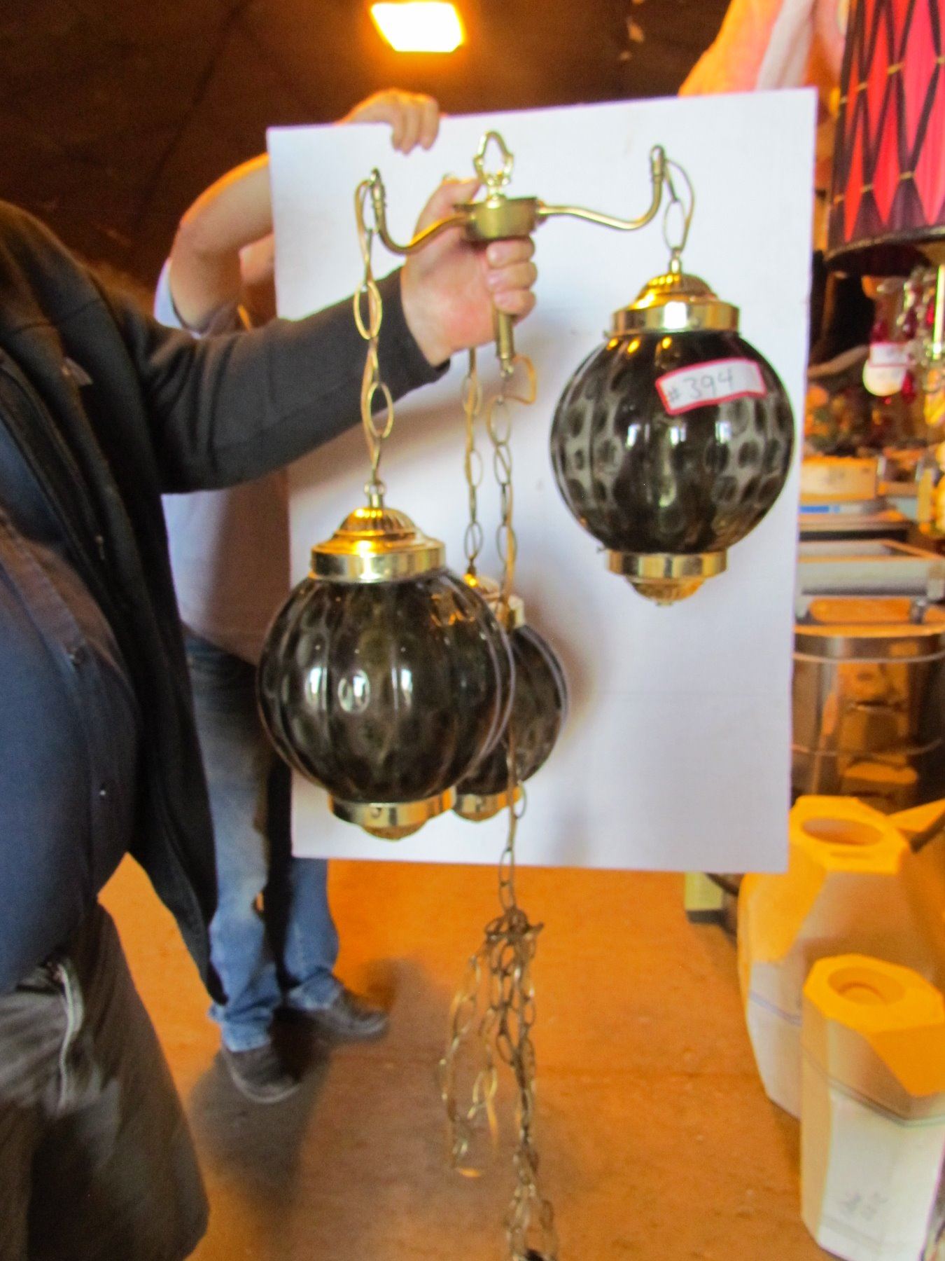 retro 70s swag lamp gold and black