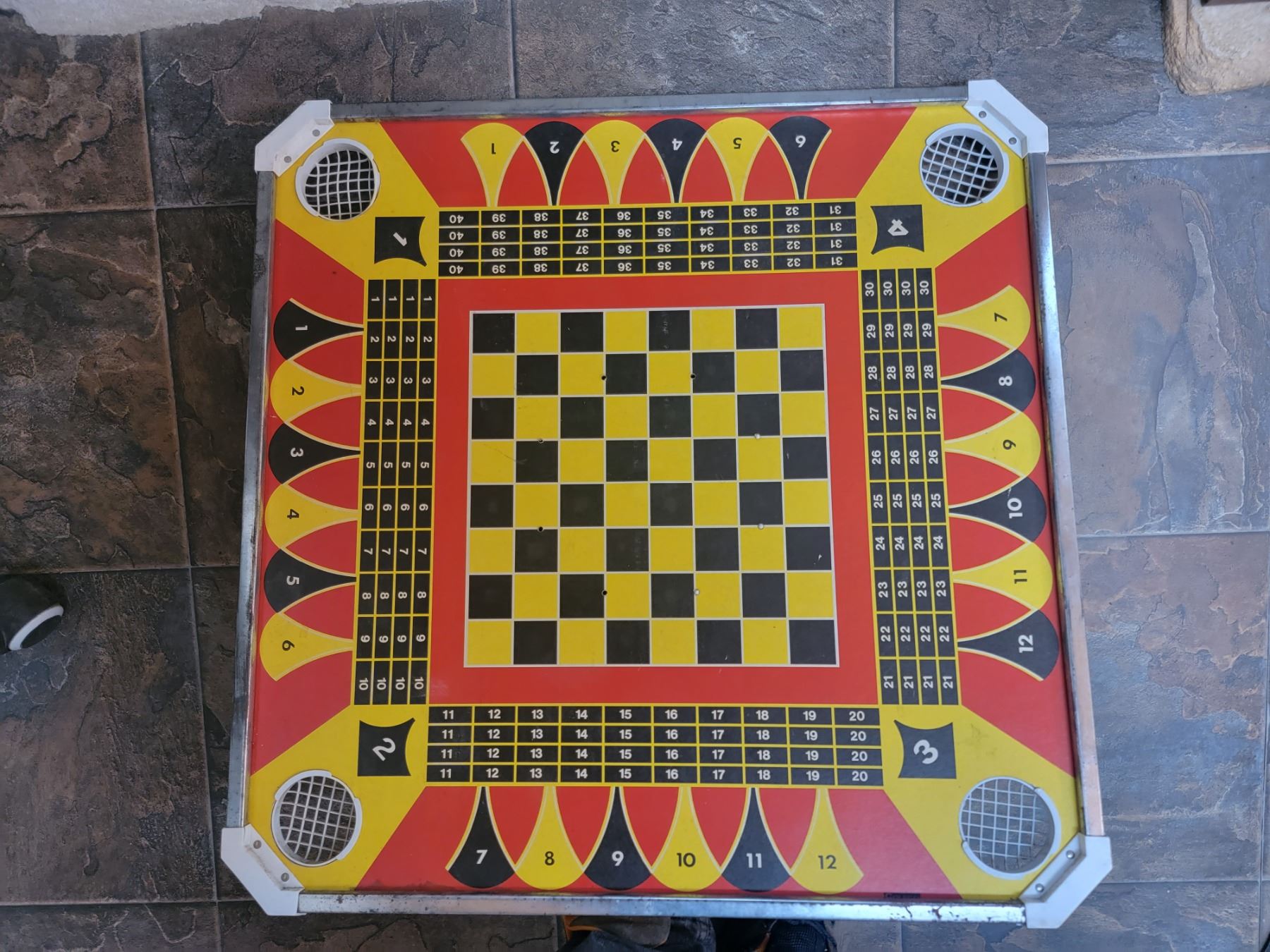 retro crokinole & other games board, carboard + plastic