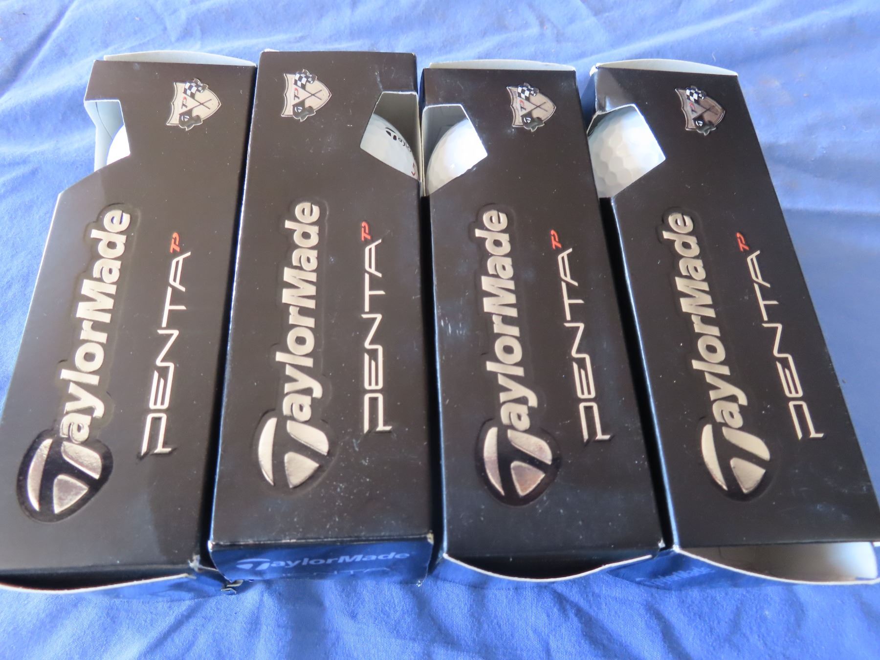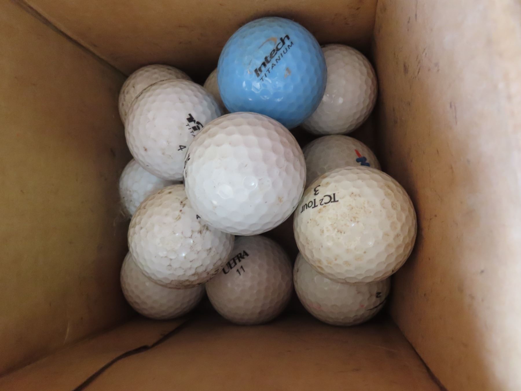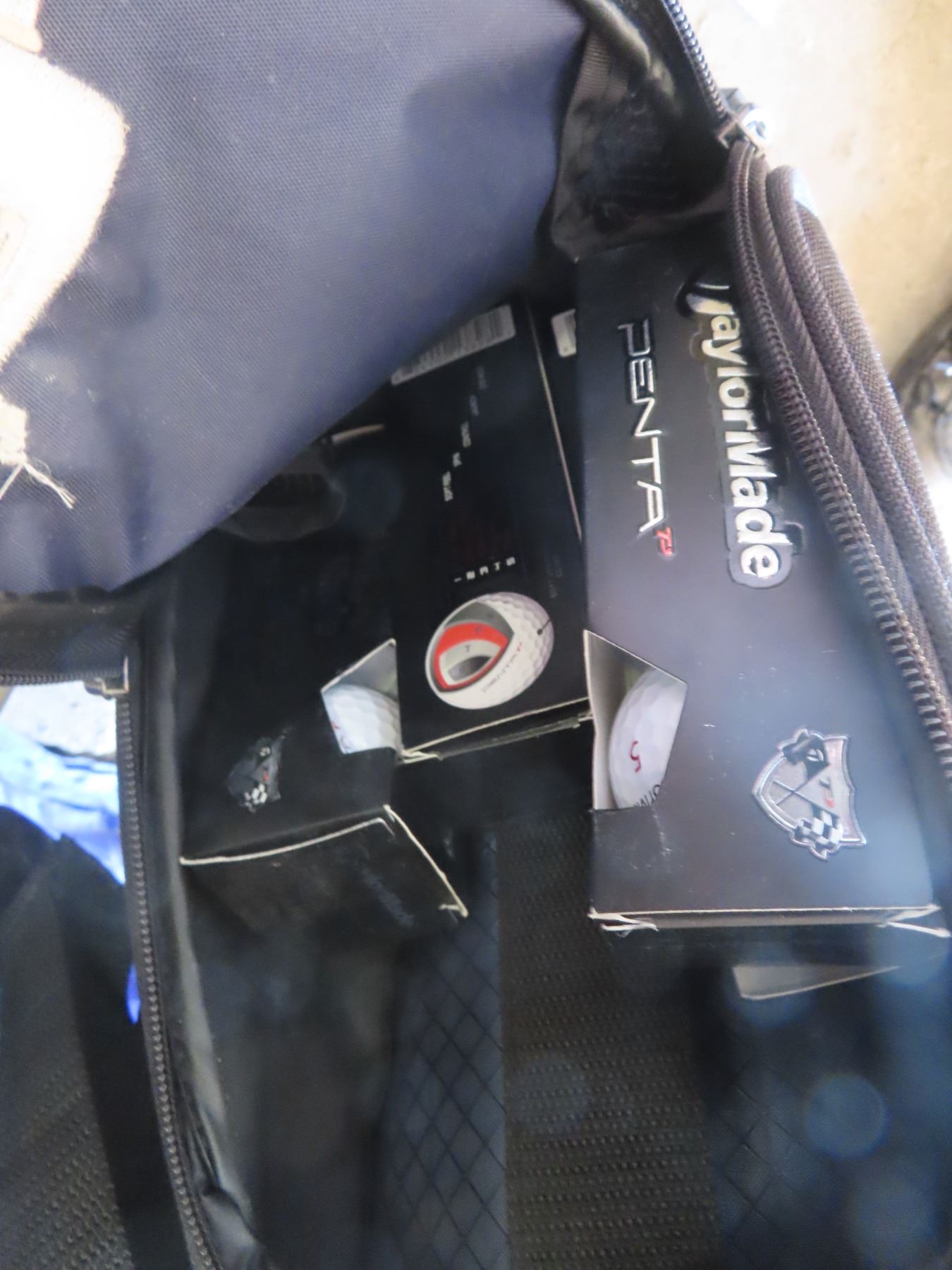 comes with boxes 3 boxes of balls and pouch of balls 2 size 6 women's cleated golf shoes and carry caddy