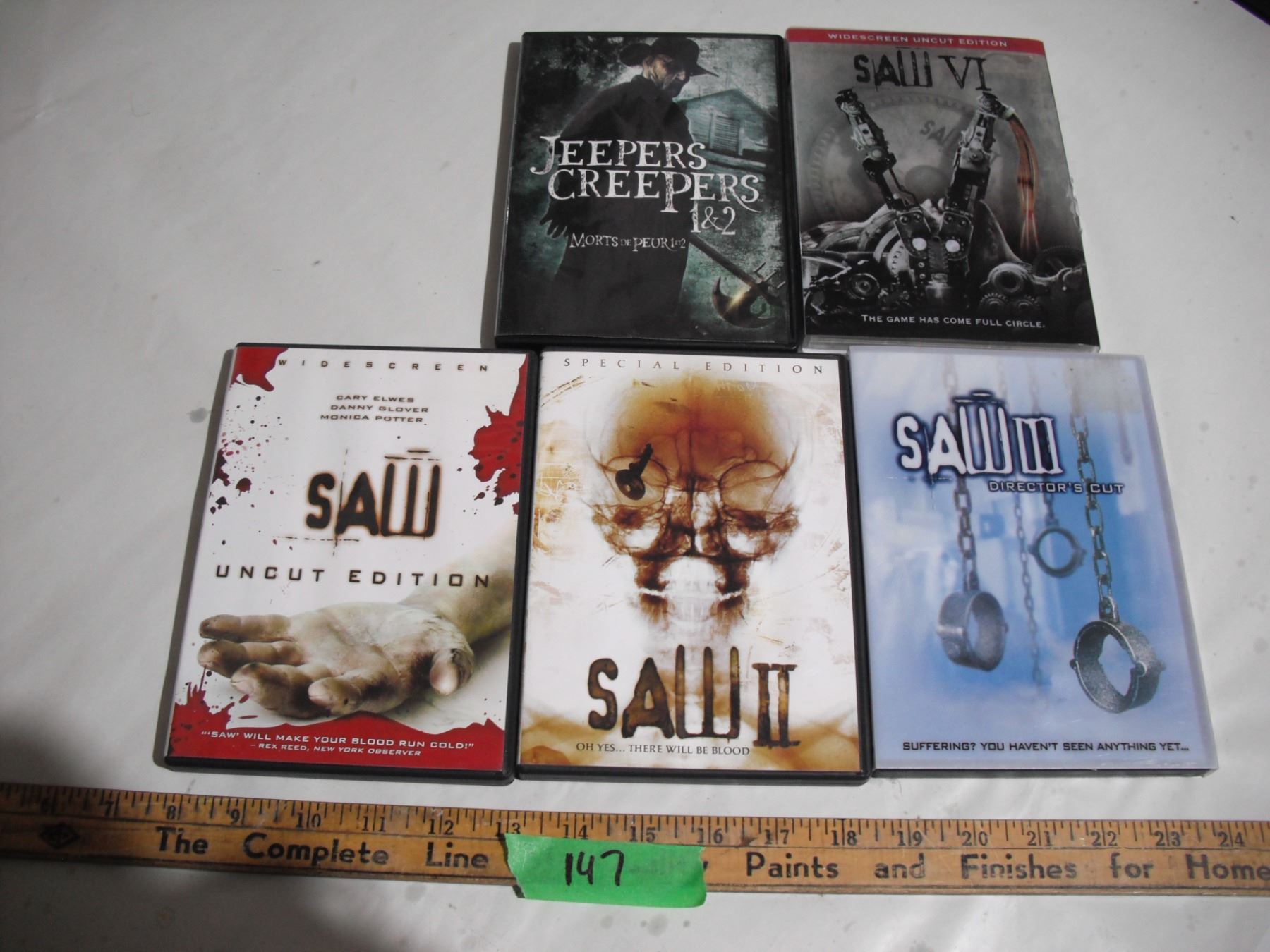 saw I, II,III,VI, + jeepers keepers 1,2 total 9 dvd's