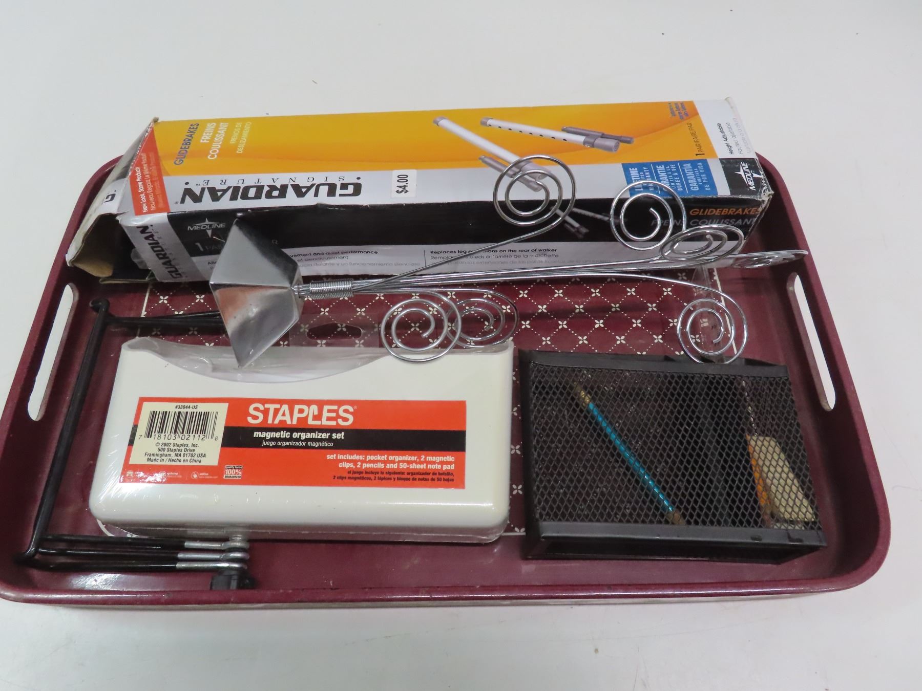 serving tray with office supplies