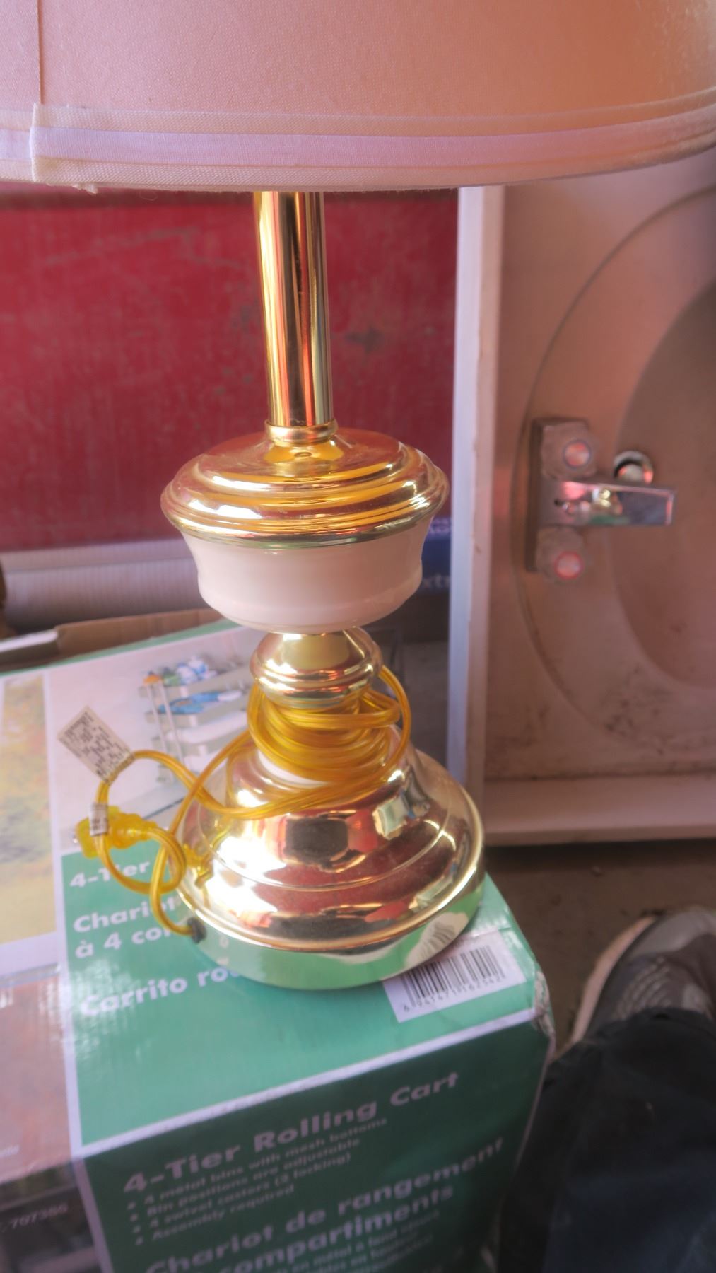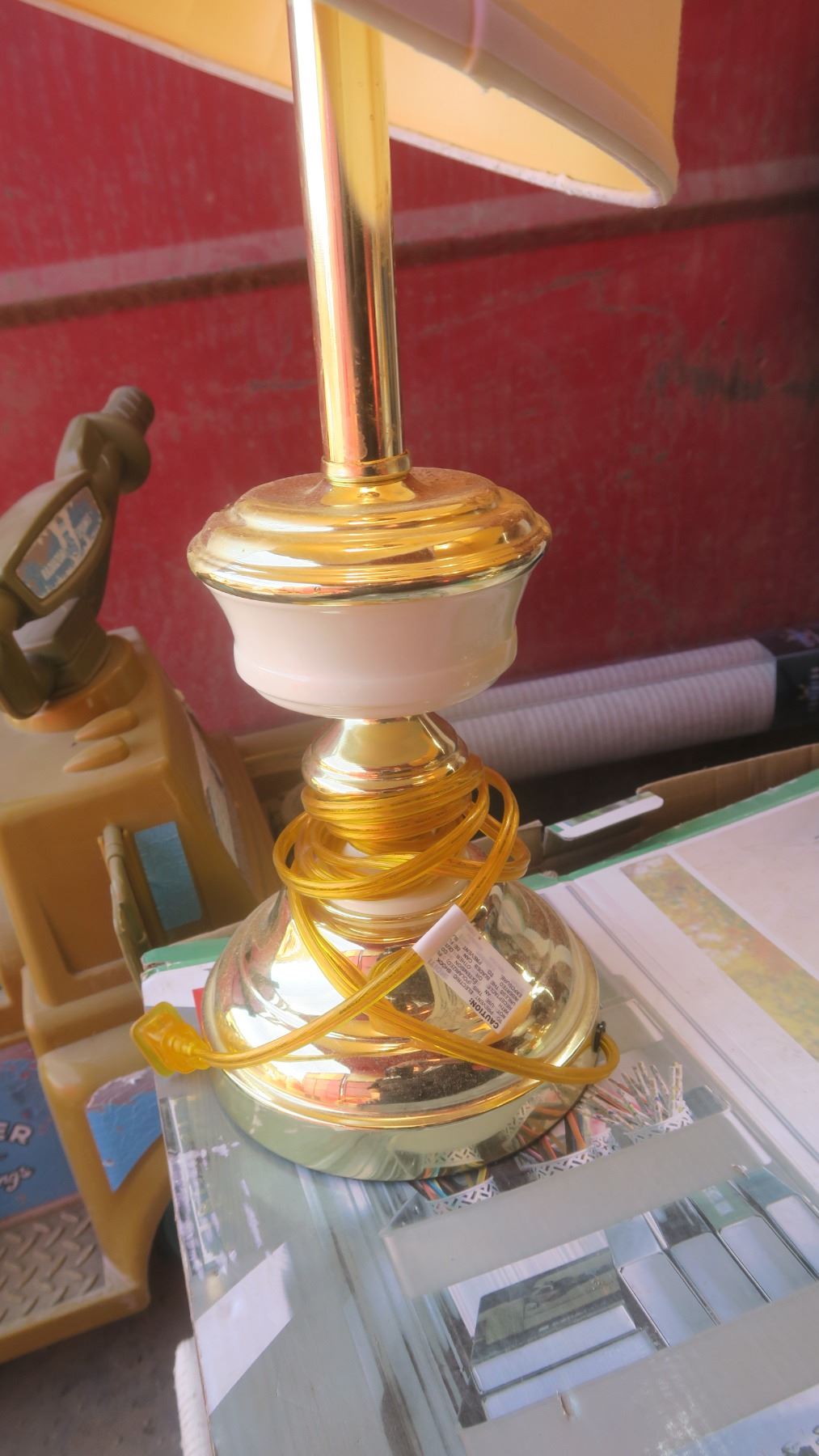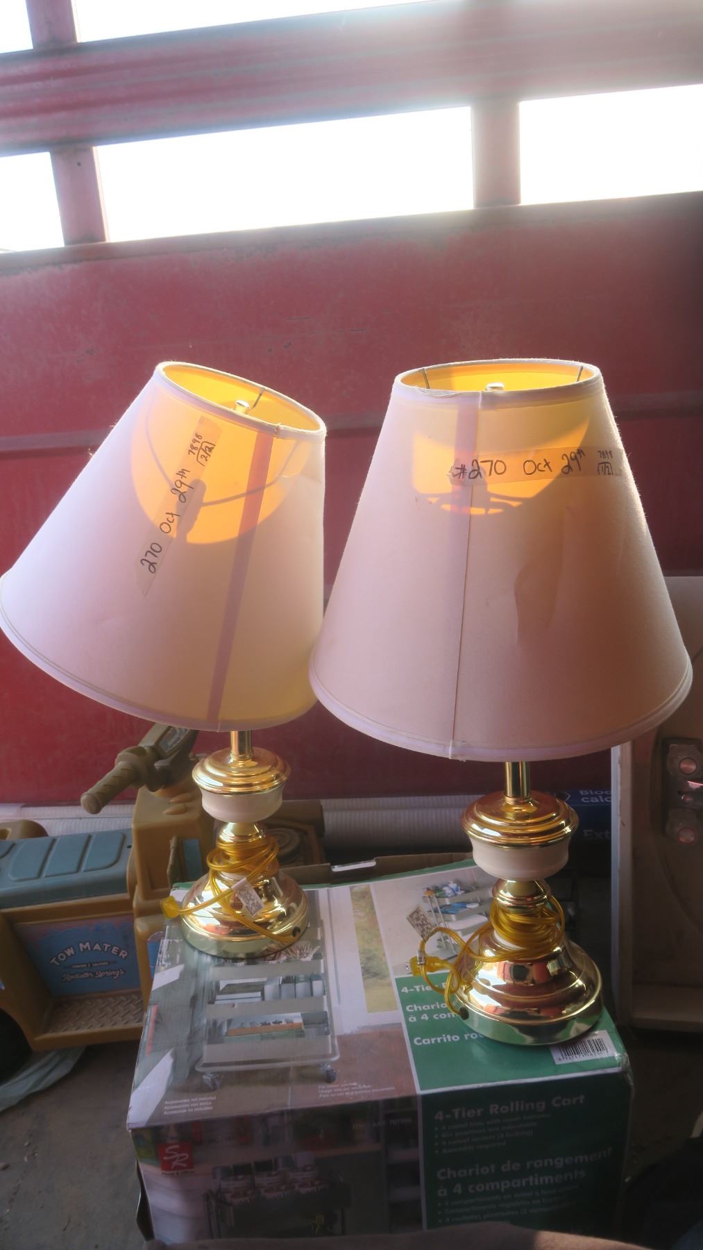 set of 2 brass & white lamps