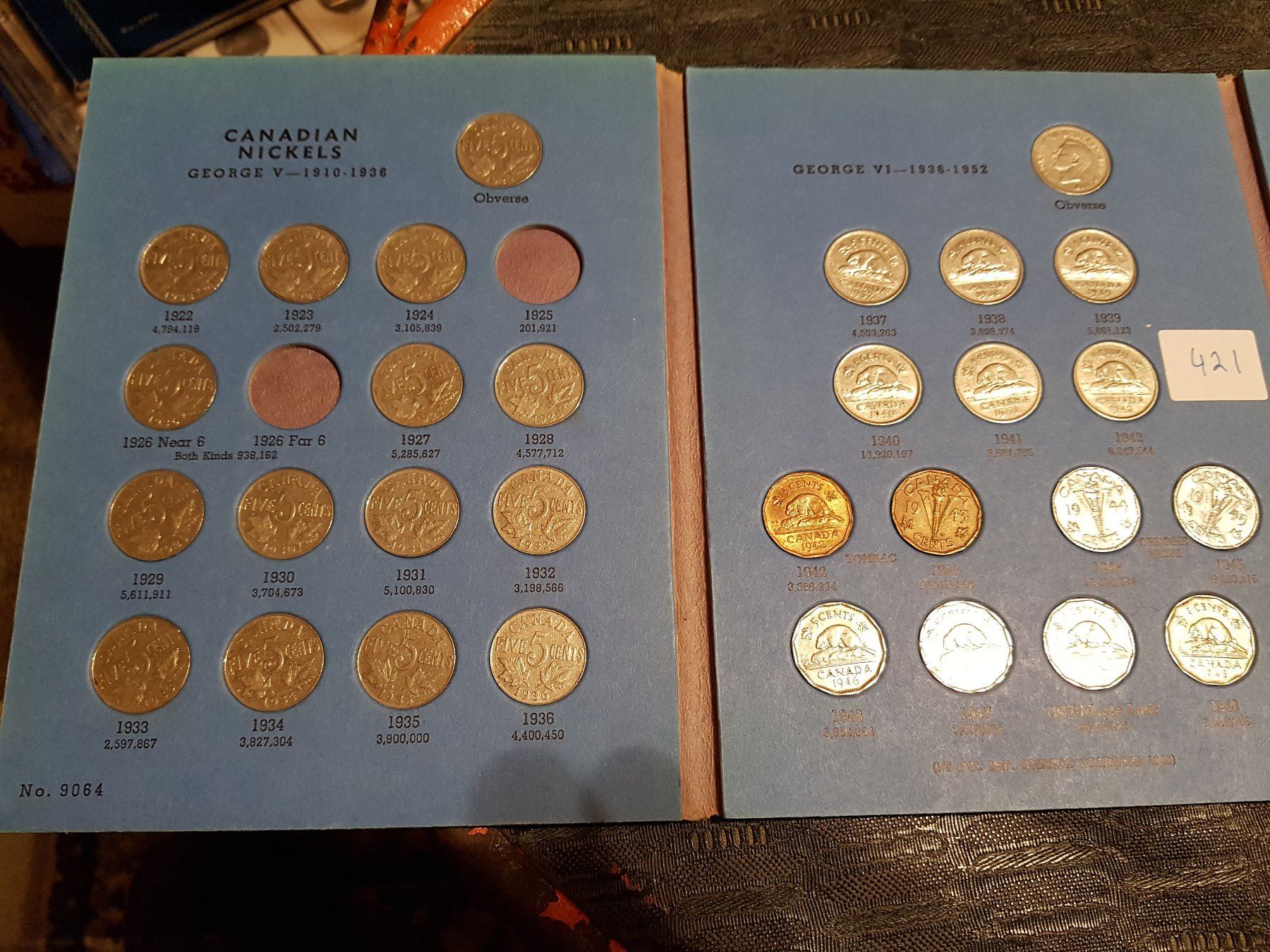set of 5 cents 1922- 1960 missing 2