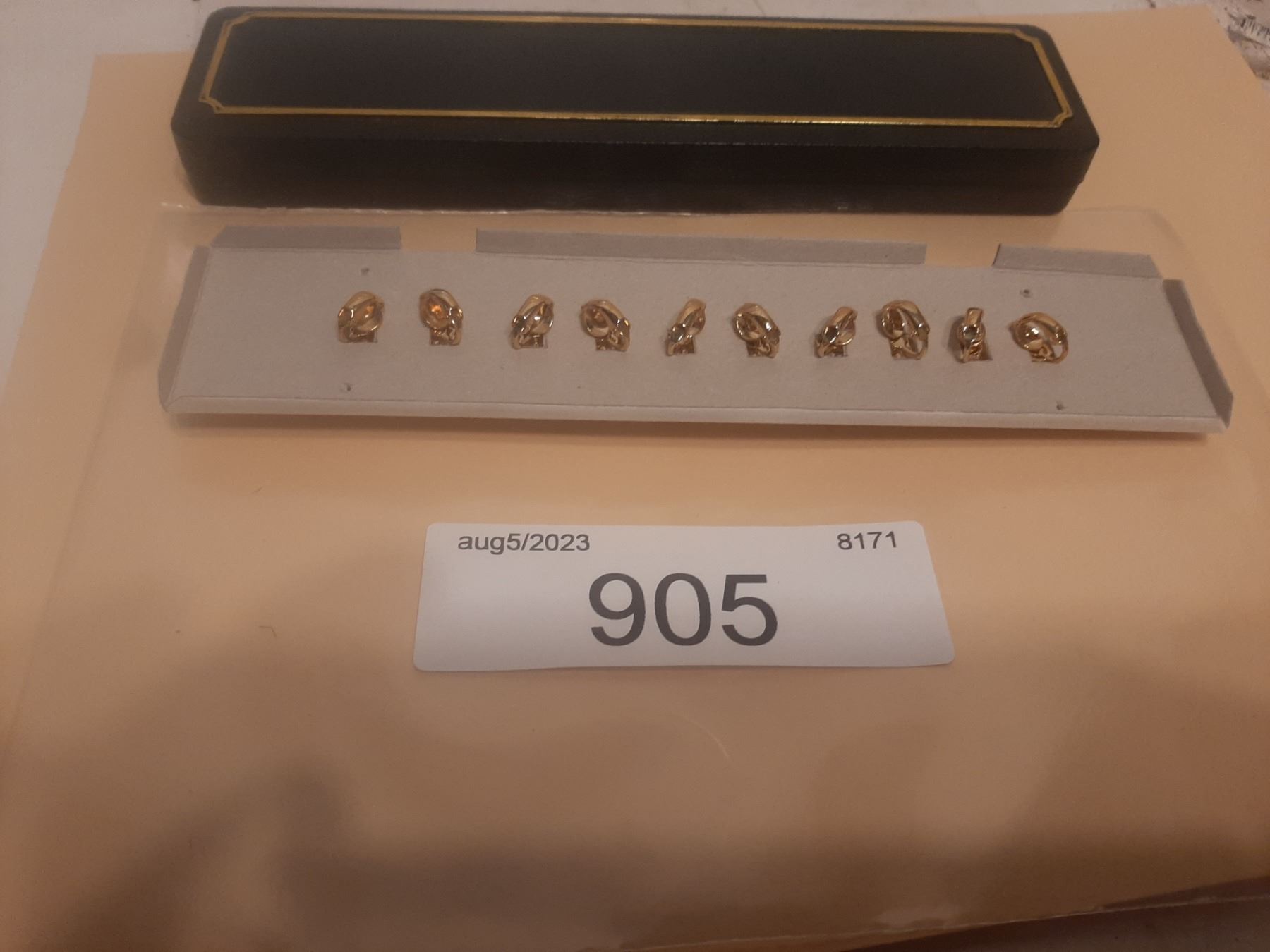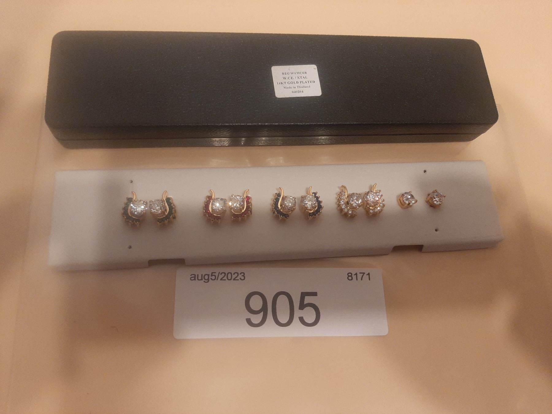 set of 6 clip on earrings 14kt plated gold w.cz/xtal
