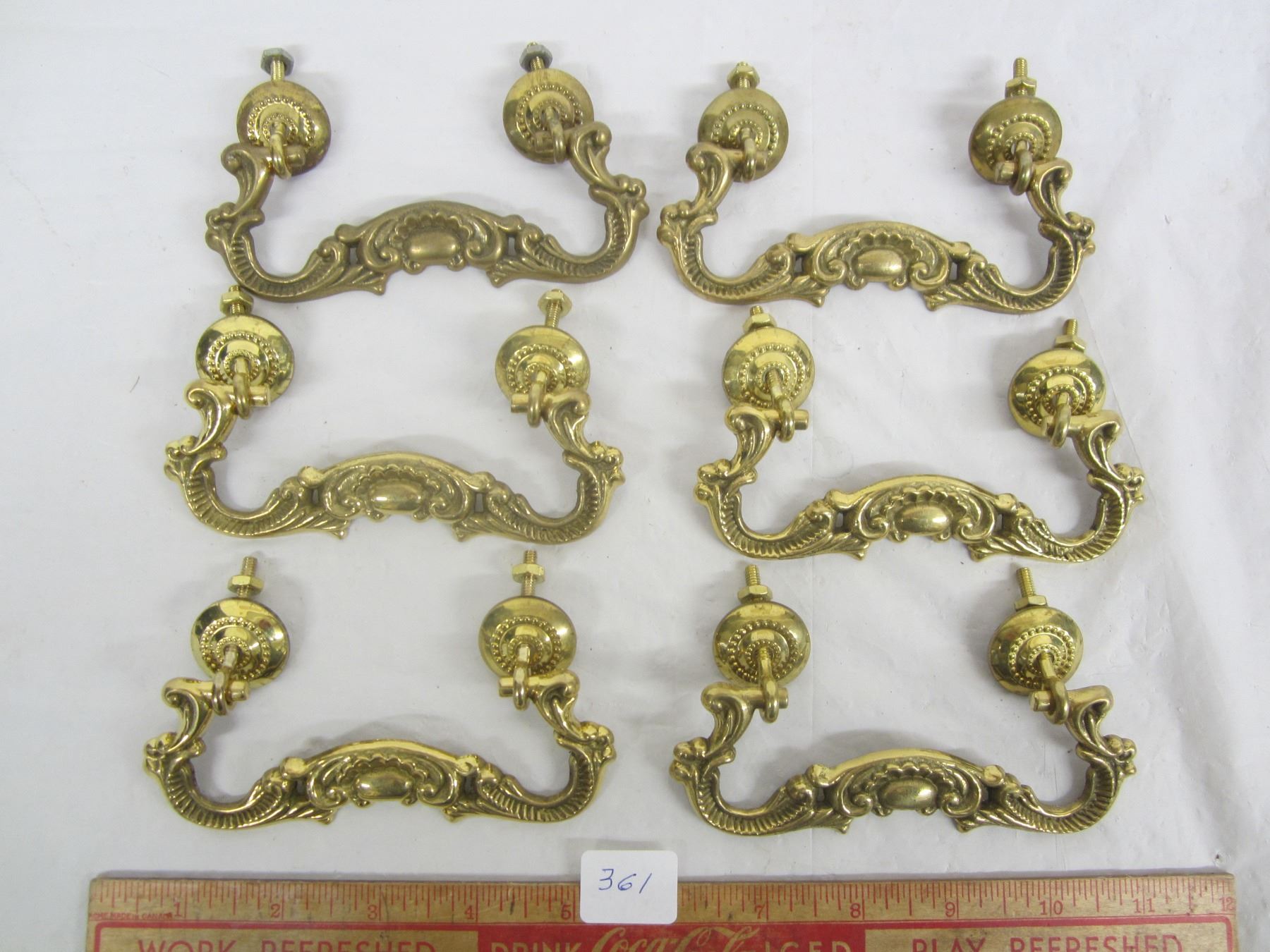 set of 6 vintage ornate solid brass handles