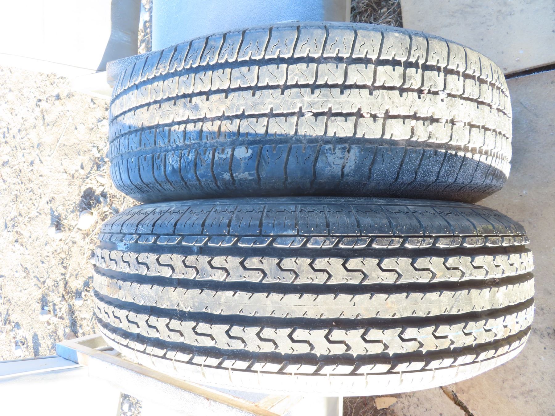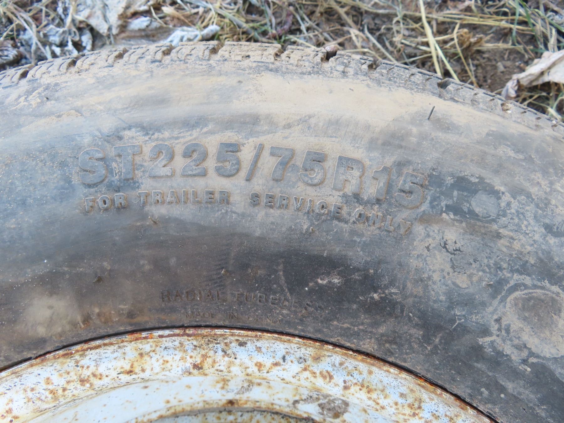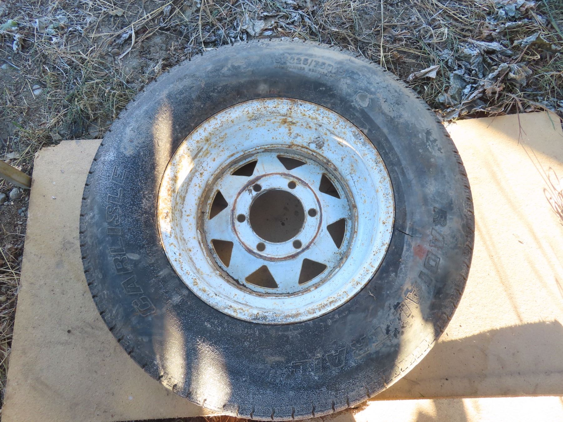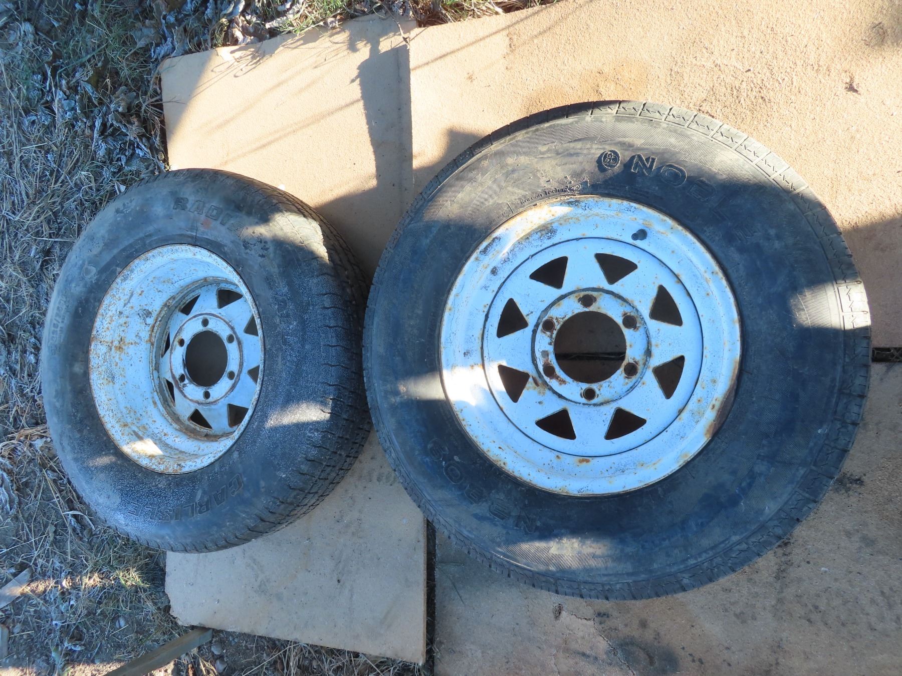 set of trailer tires and matching steel rims