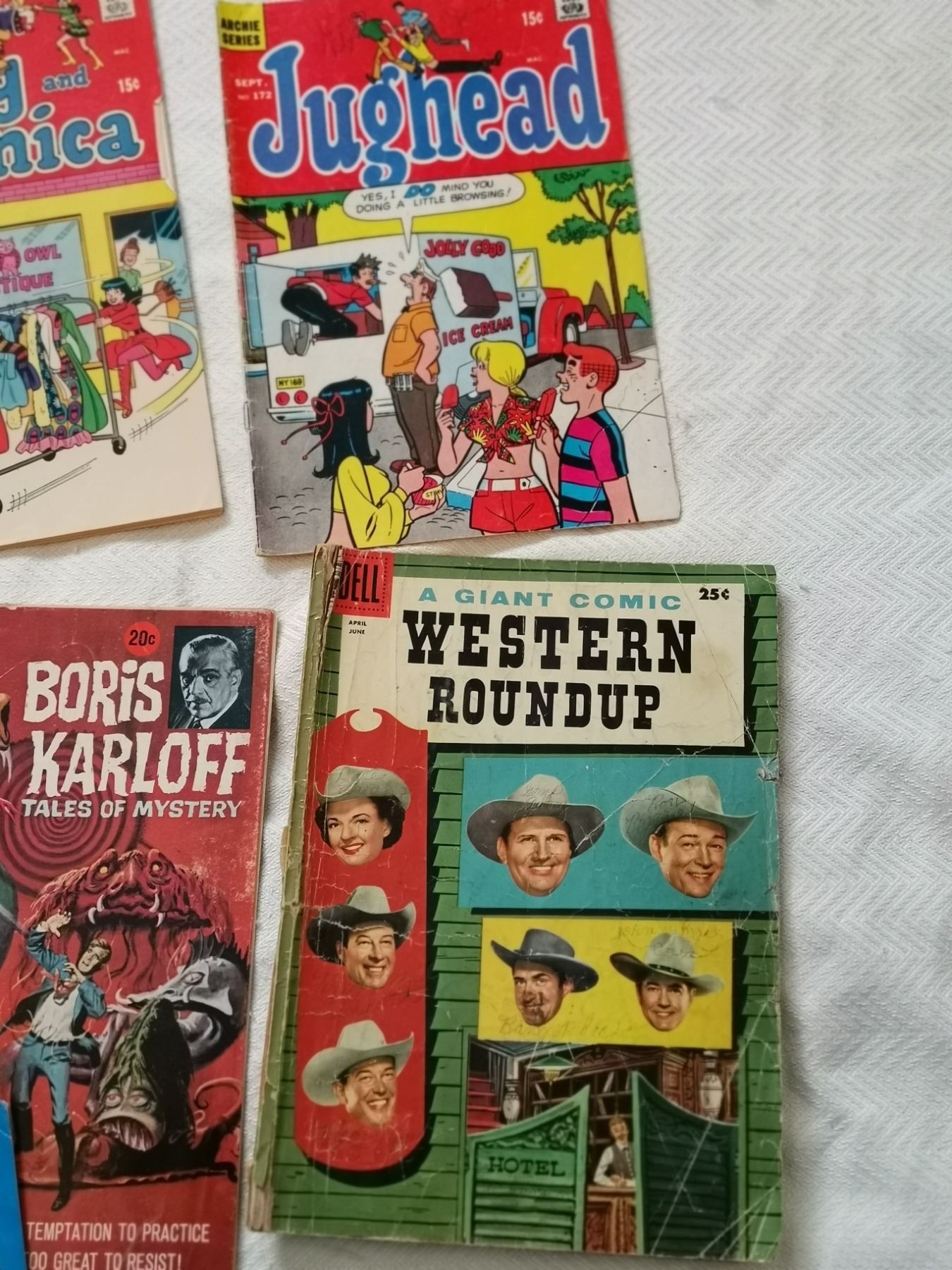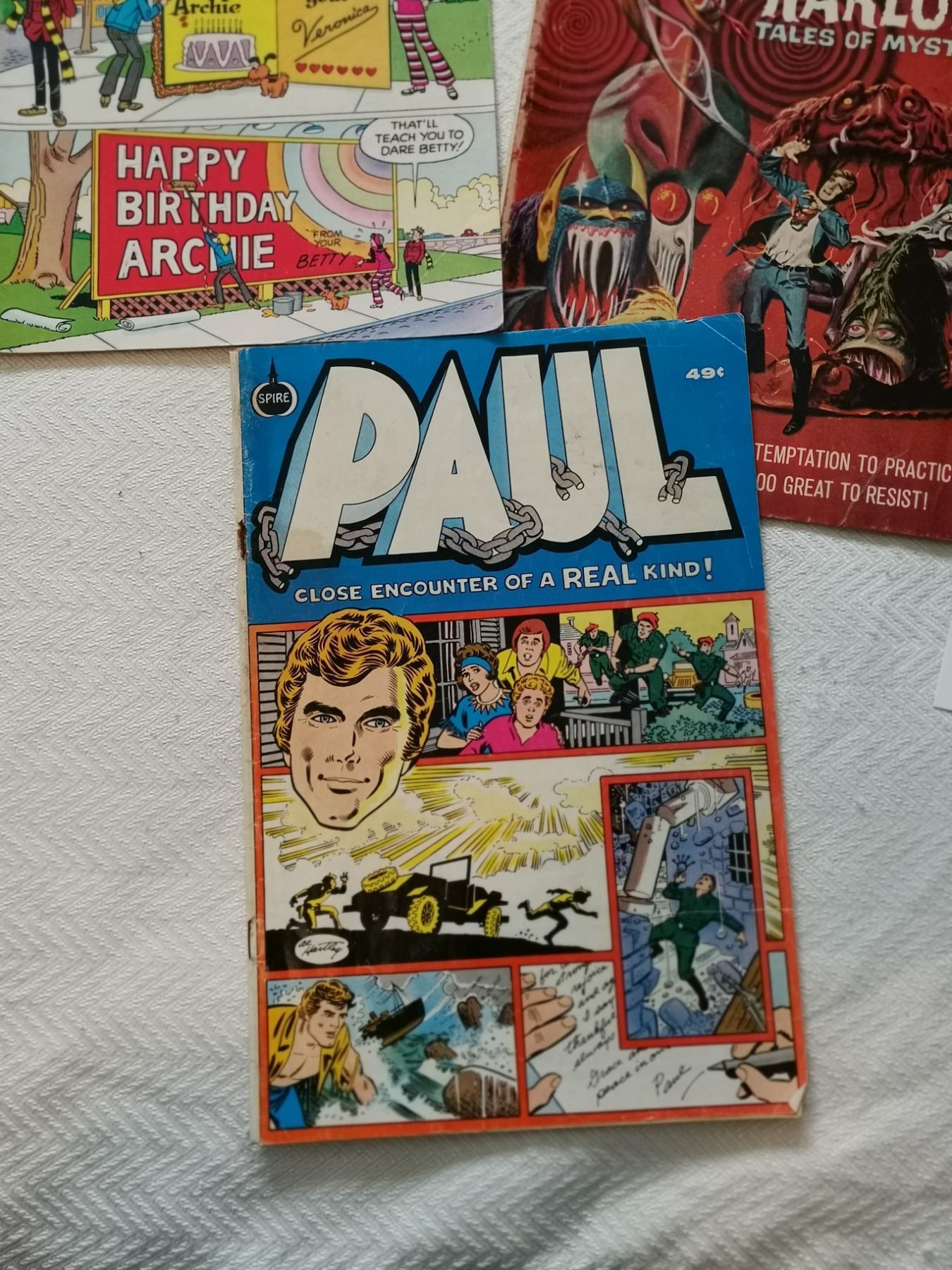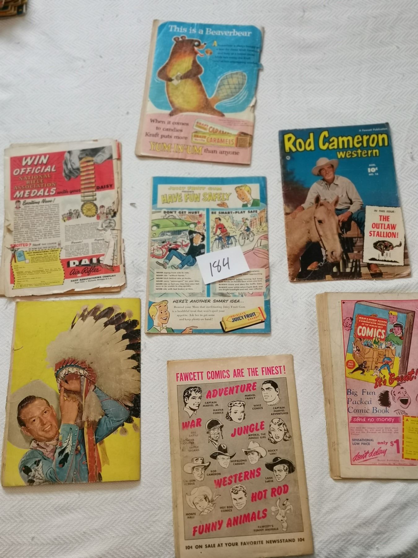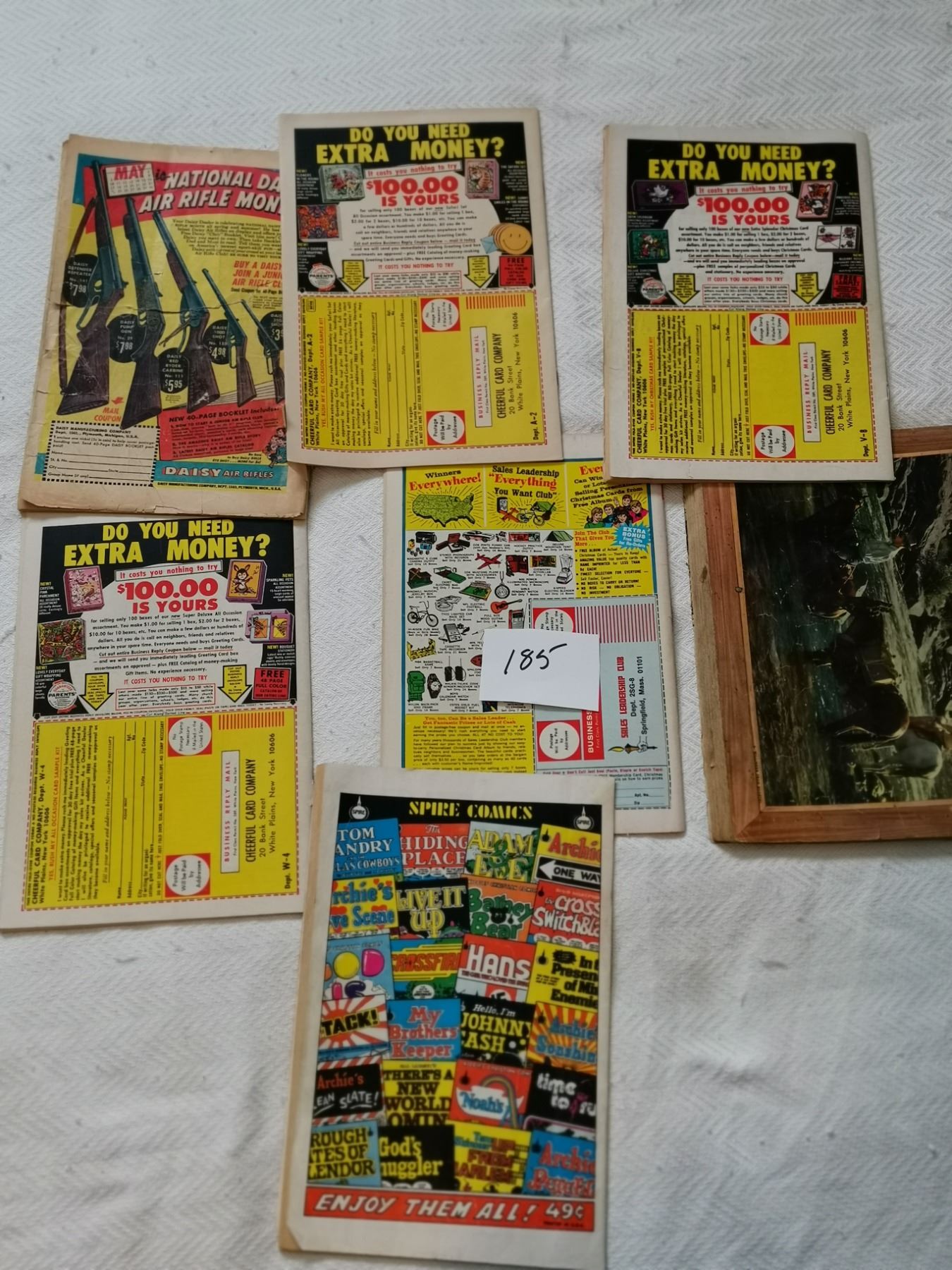 seven old comics 10 cent, 15 cent, 20 cent, 25 cent, 49 cent