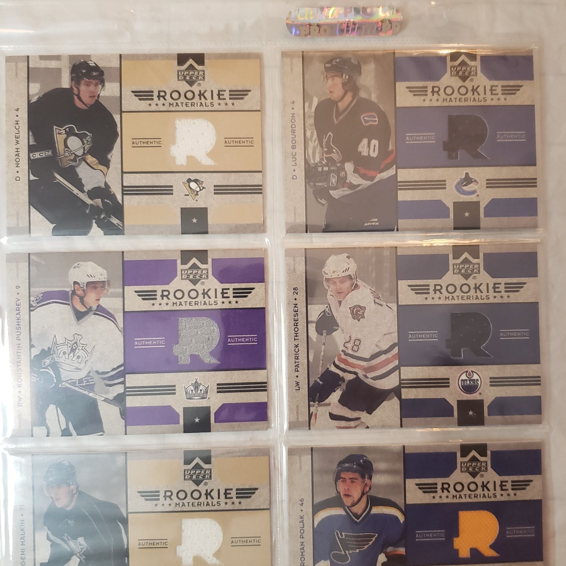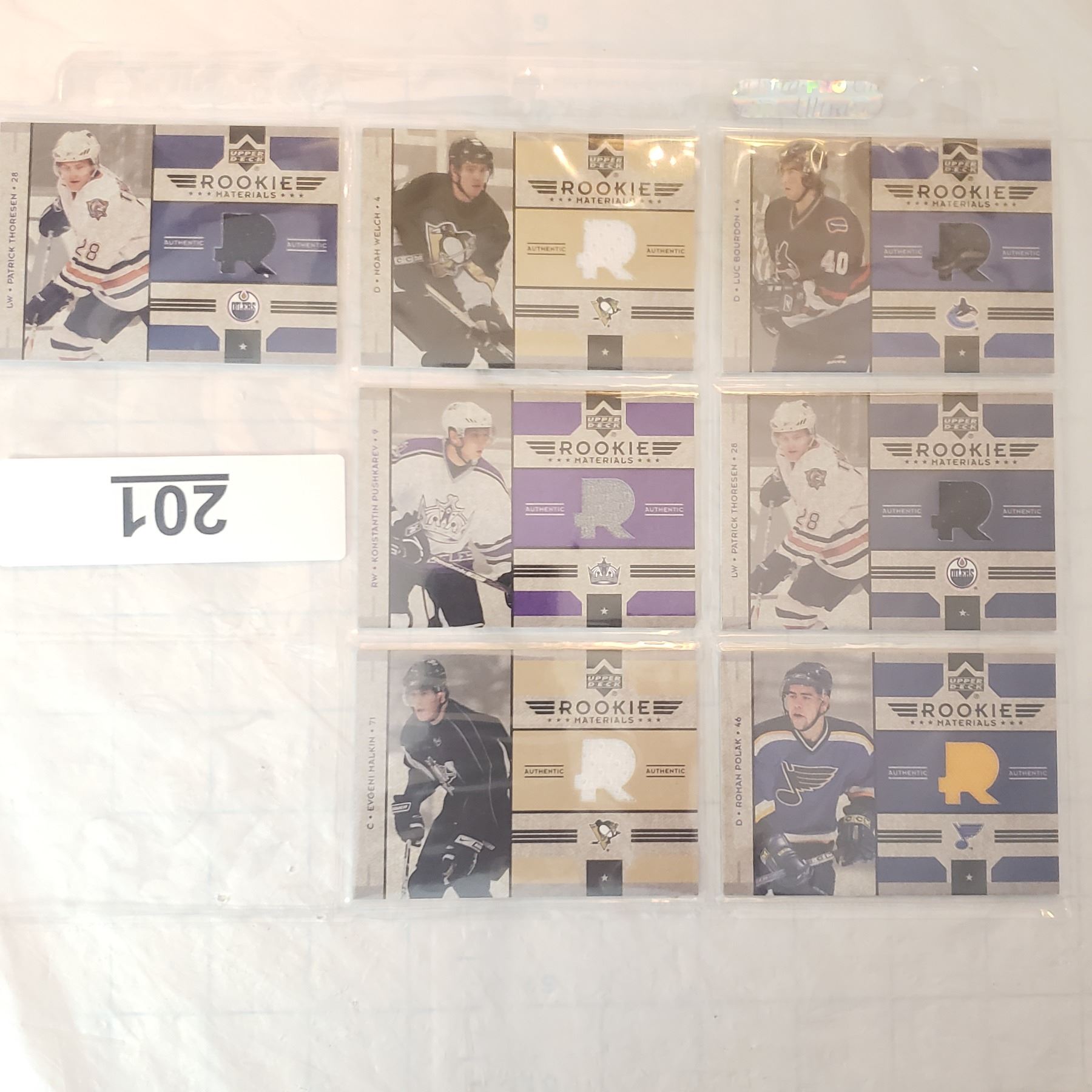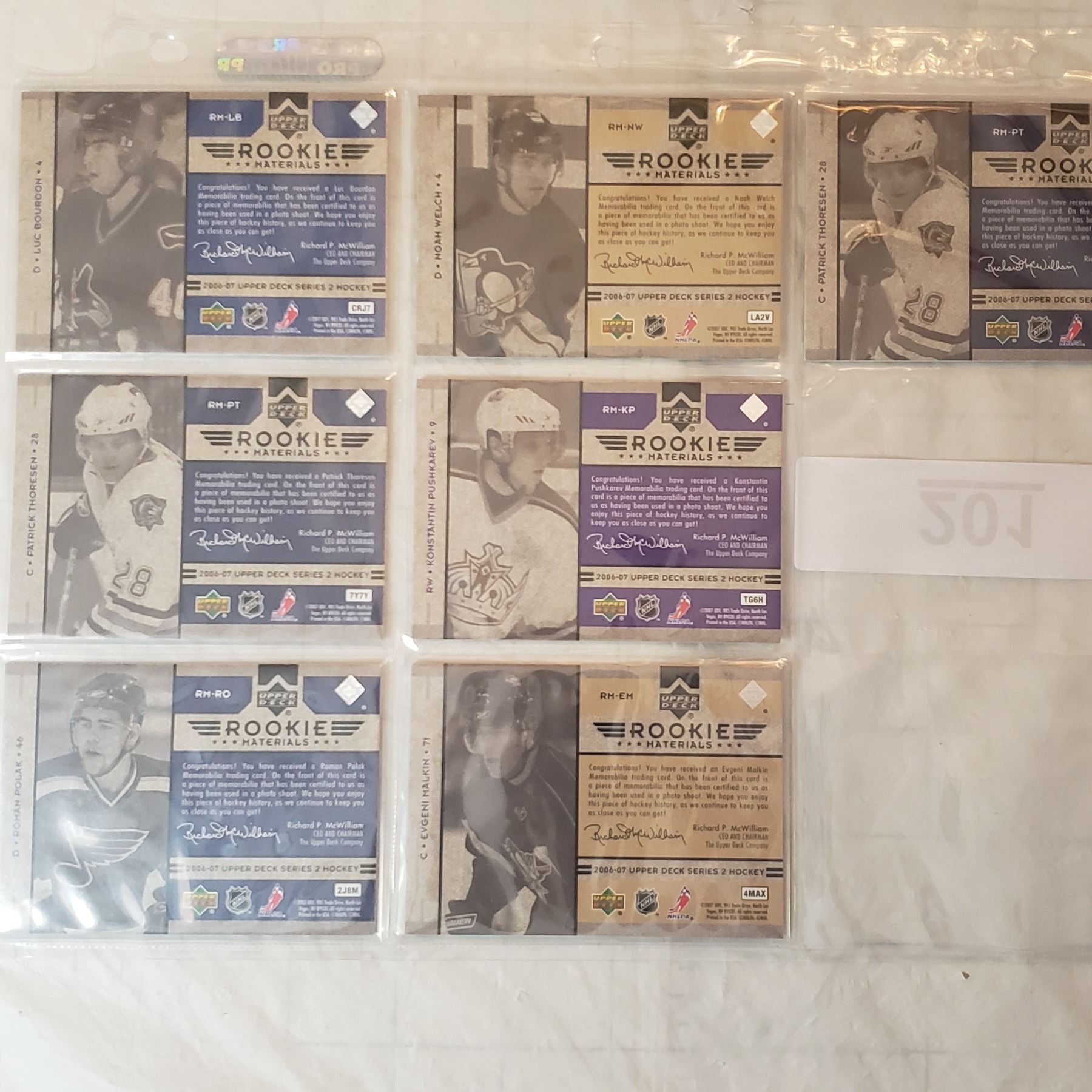 seven rookie jersey cards (includes Malkin rookie jersey) 2006-07