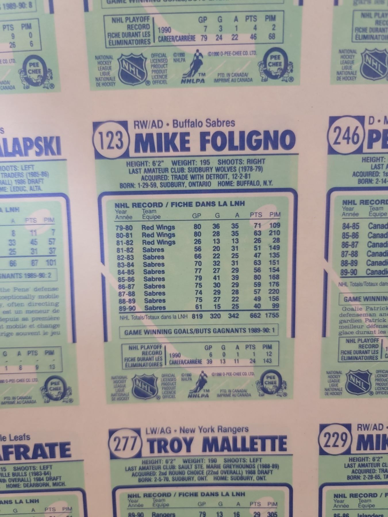 sheet of uncut 1991 O-Pee-Chee hockey cards
