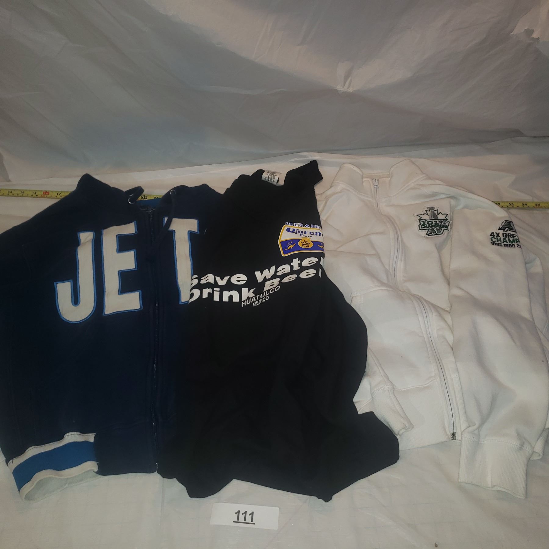 shirt hoodie lot rough rider sweater, Jets full zip has couple small marks. corona shirt is mint