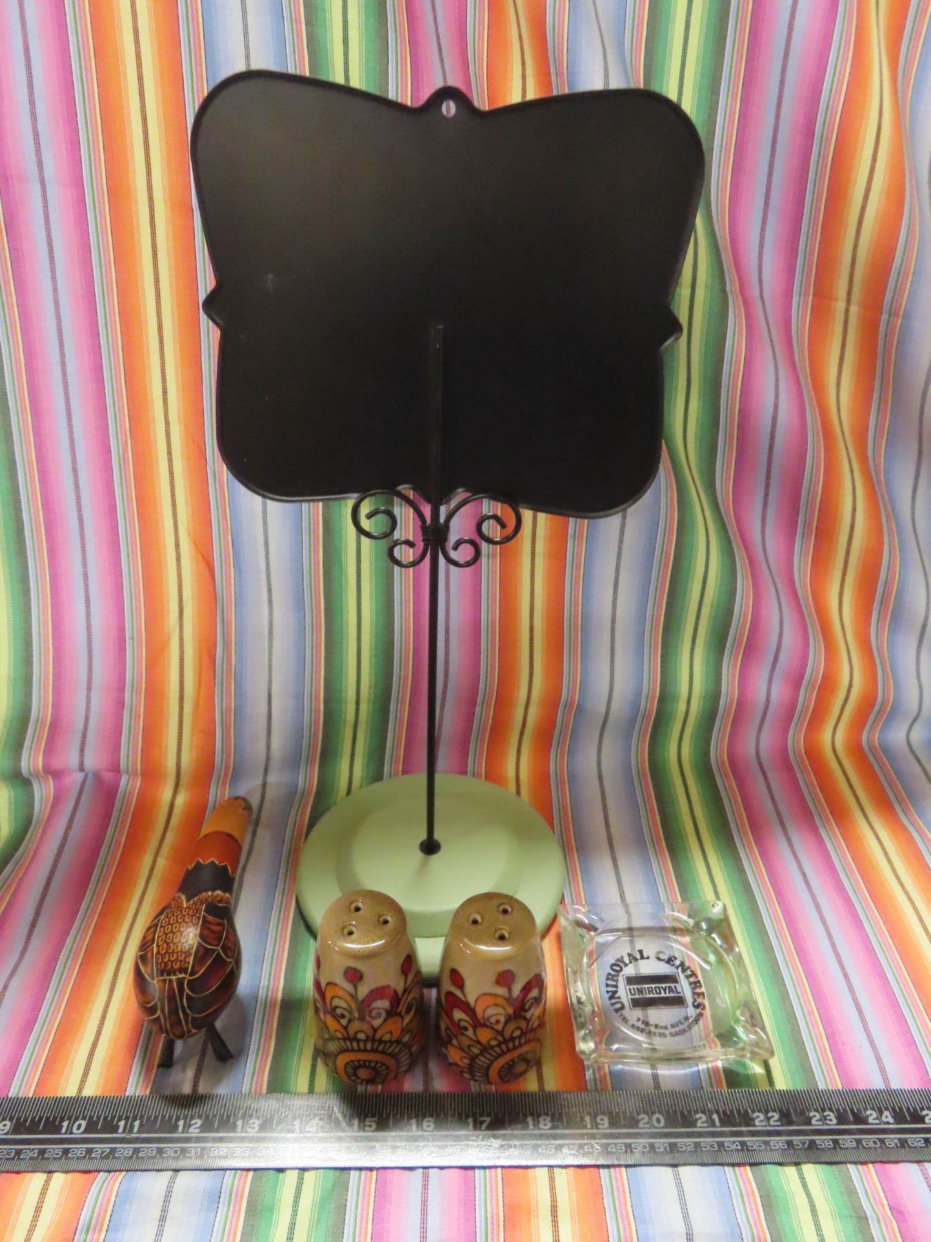 sign, salt and pepper shakers, hand painted décor, ashtray
