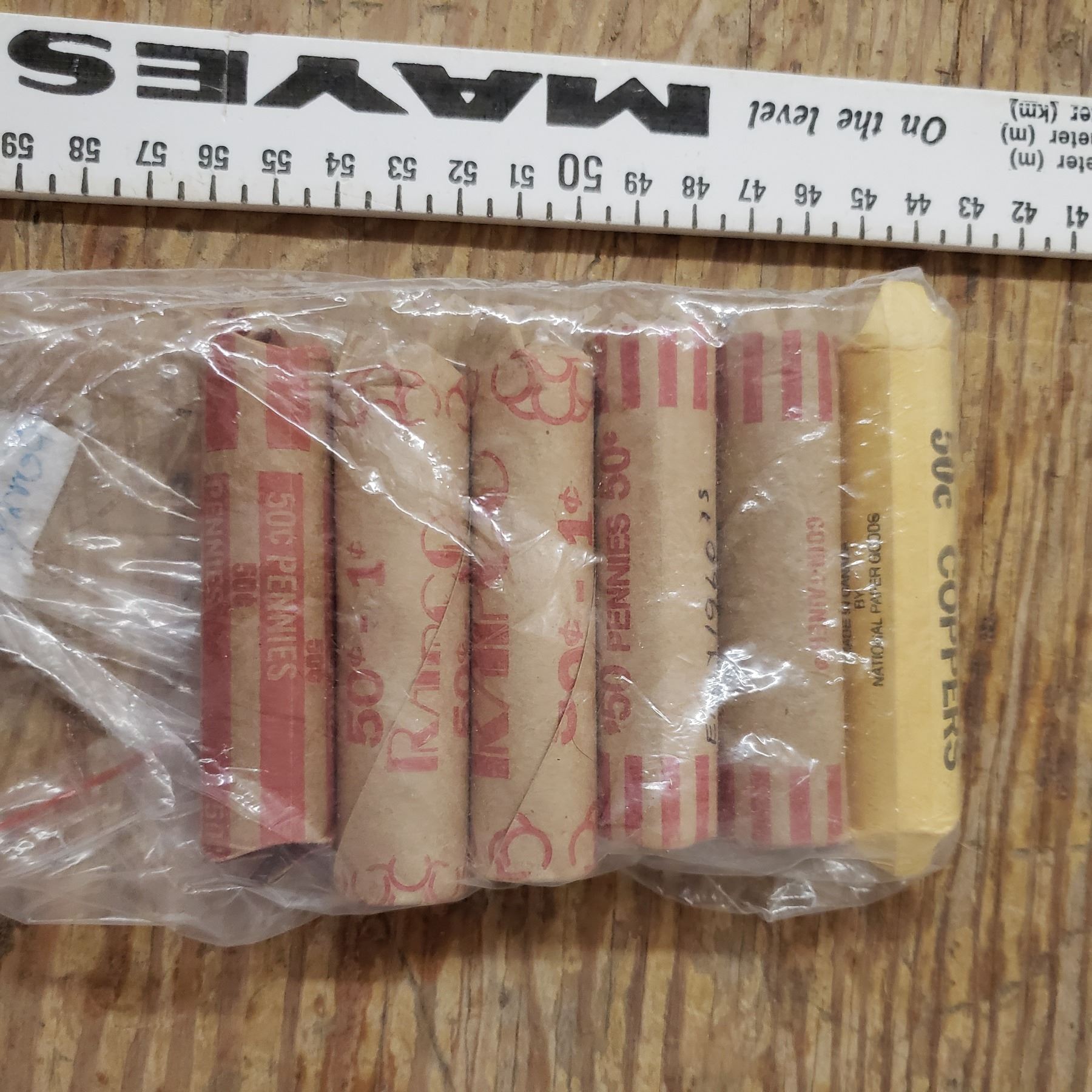six rolls of pennies