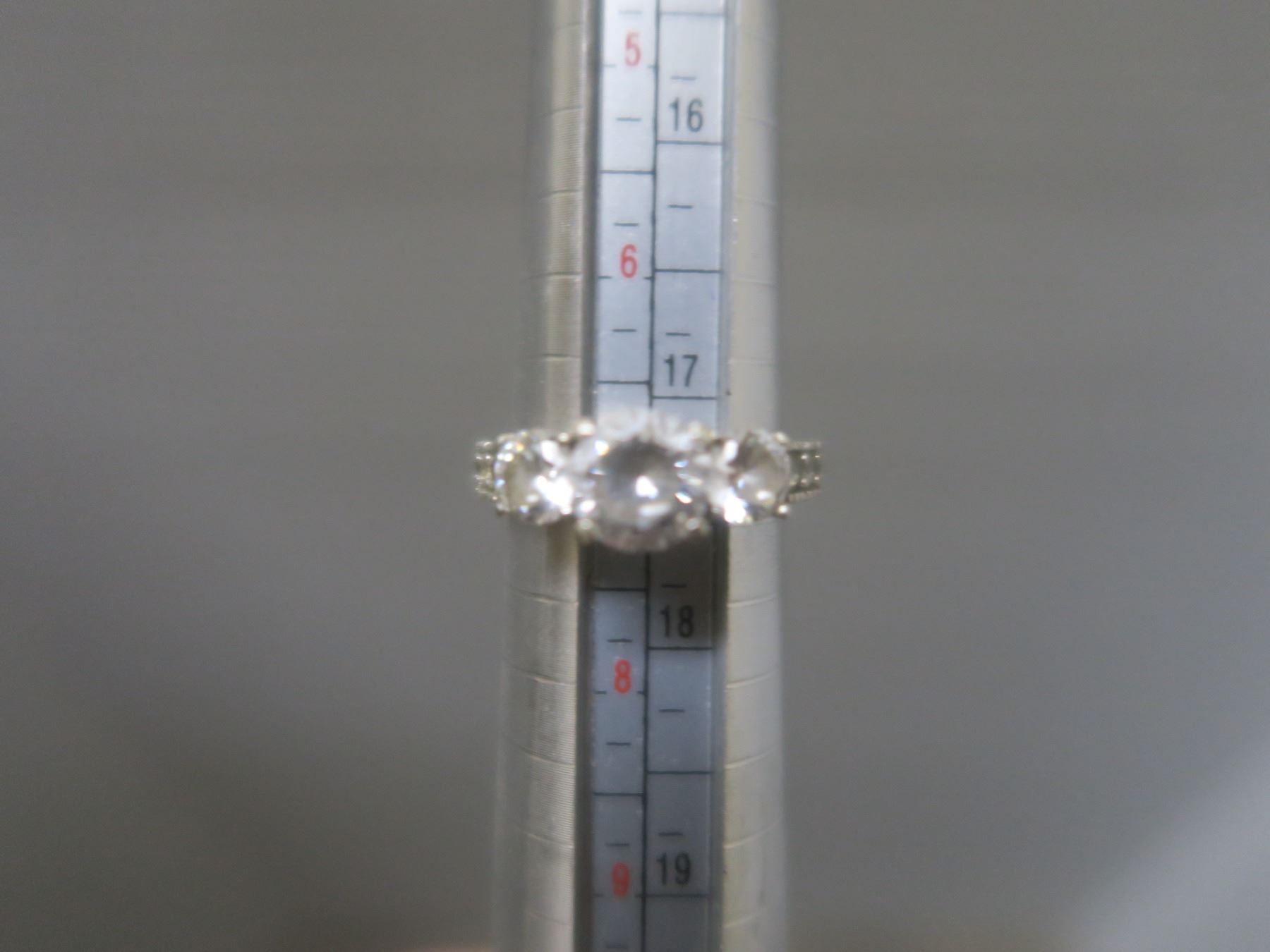 size 7 ladies sterling silver ring with 3L stones and 8SM stones