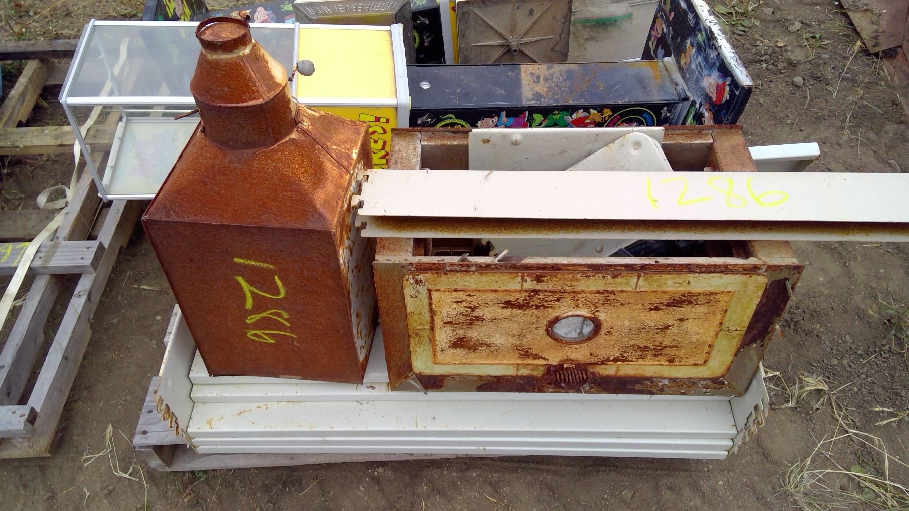 steel shelves, flour mill and misc
