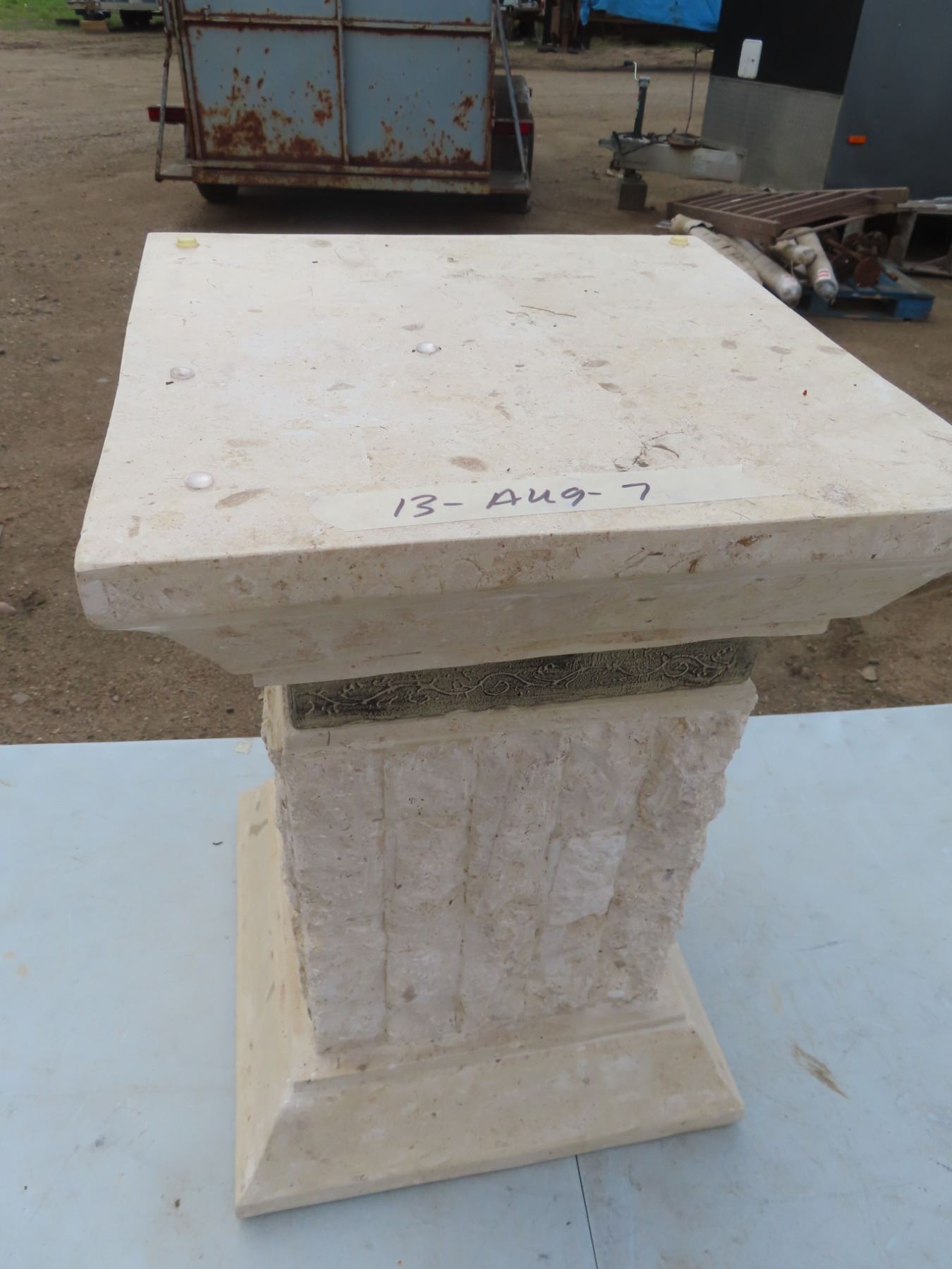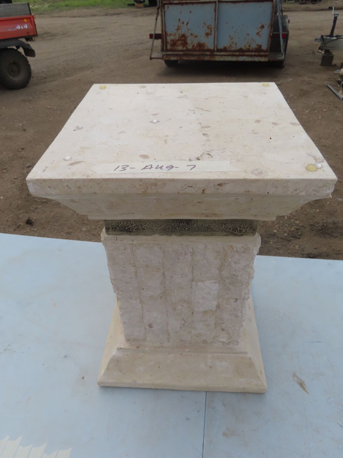 stone pillar 21" tall with glass