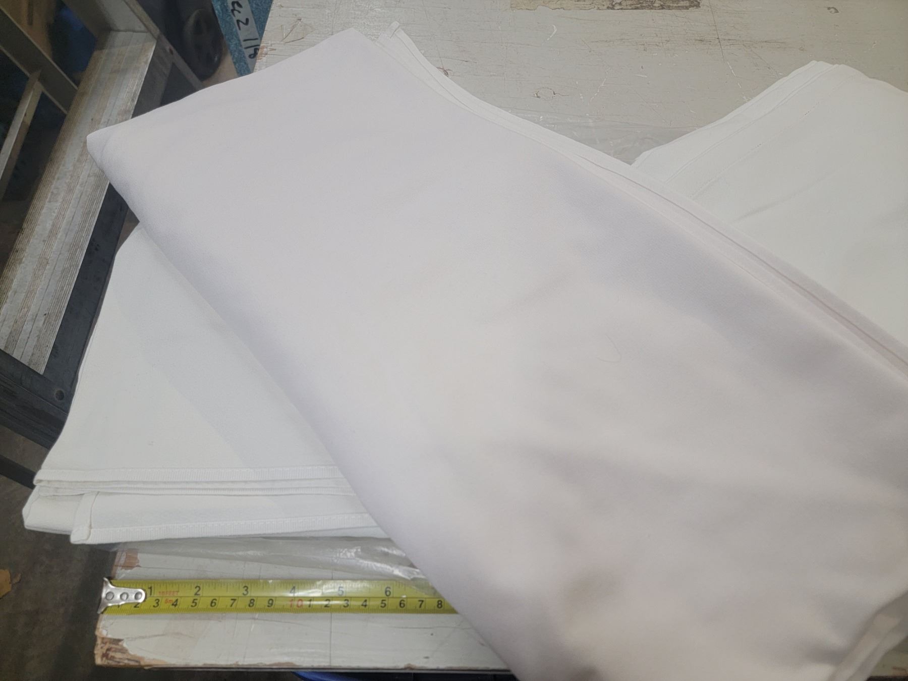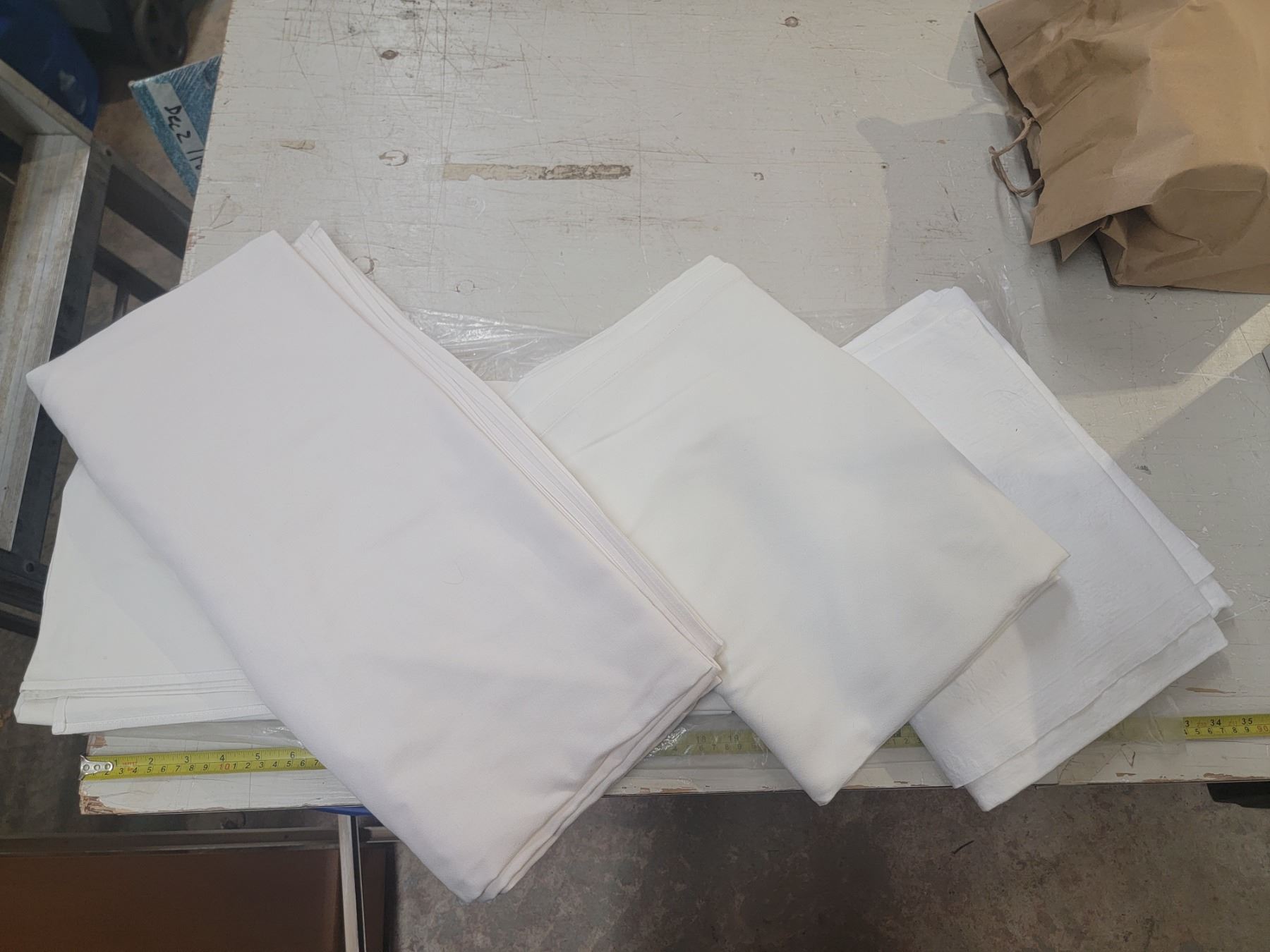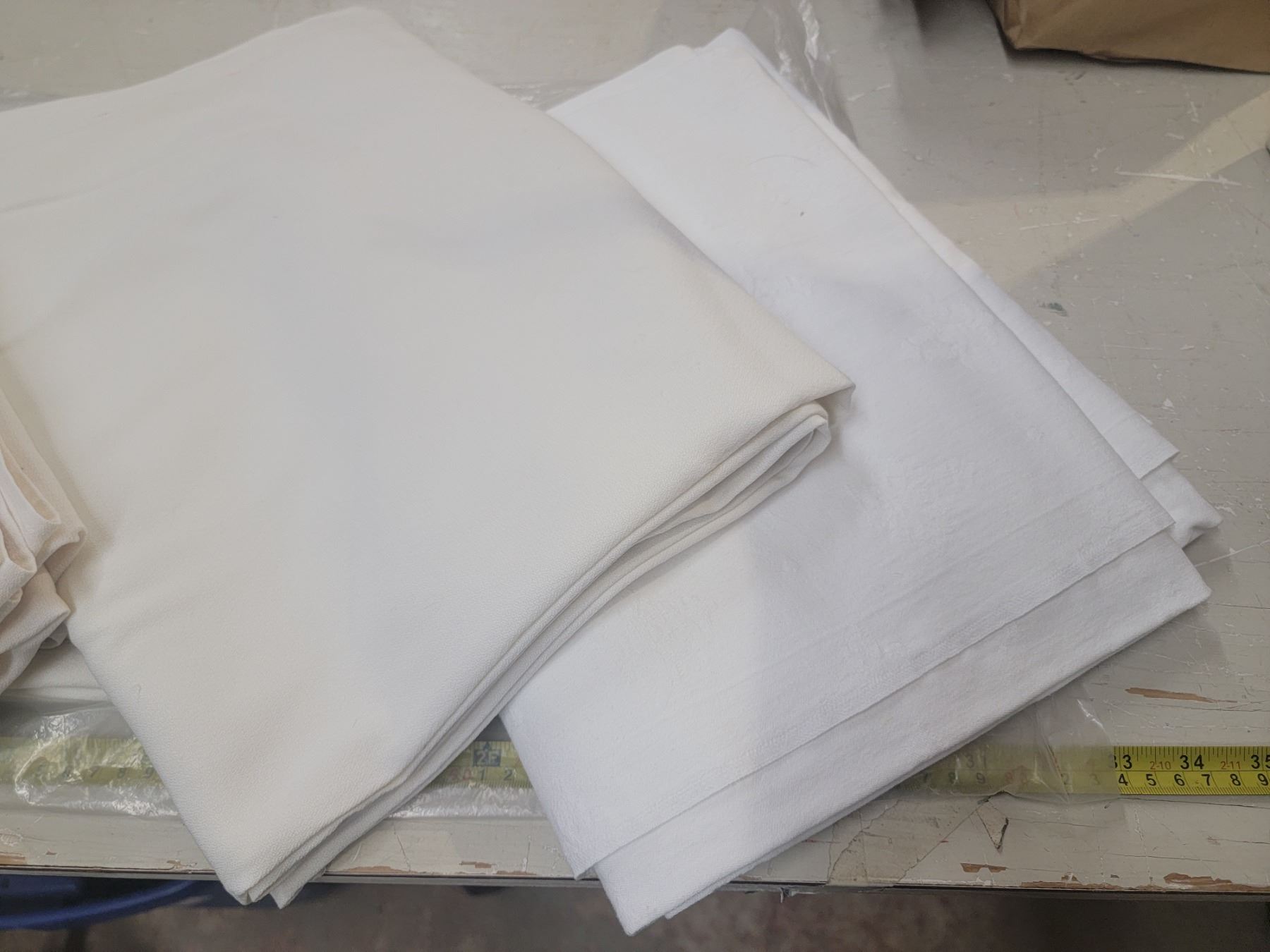 table covers (2) 84 x 86" (2) 60" x 82" - all white, good condition