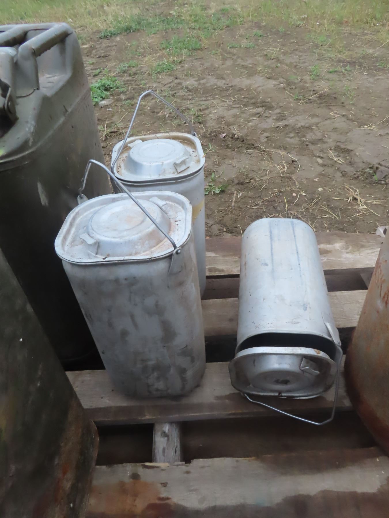 three aluminum army cans