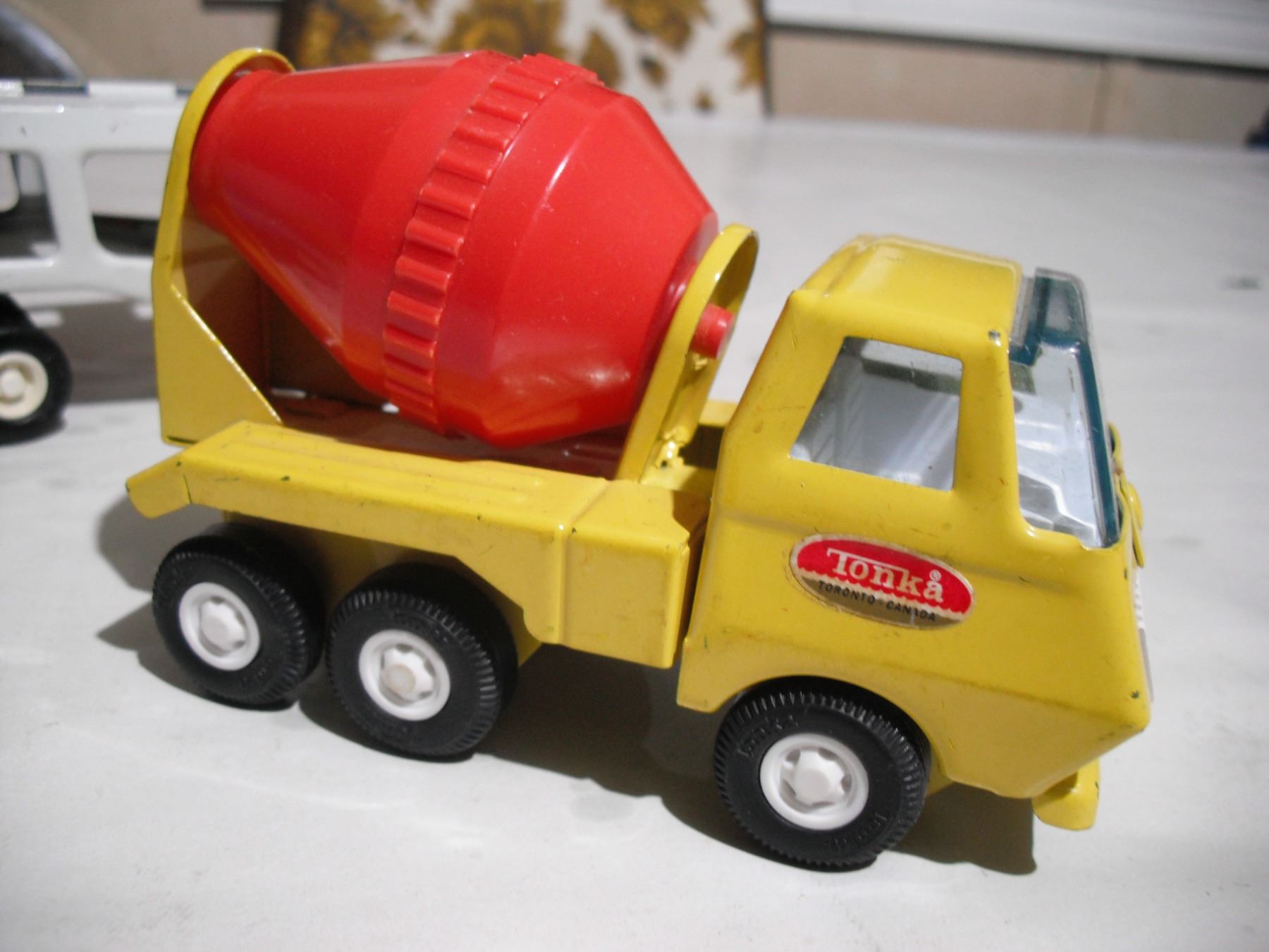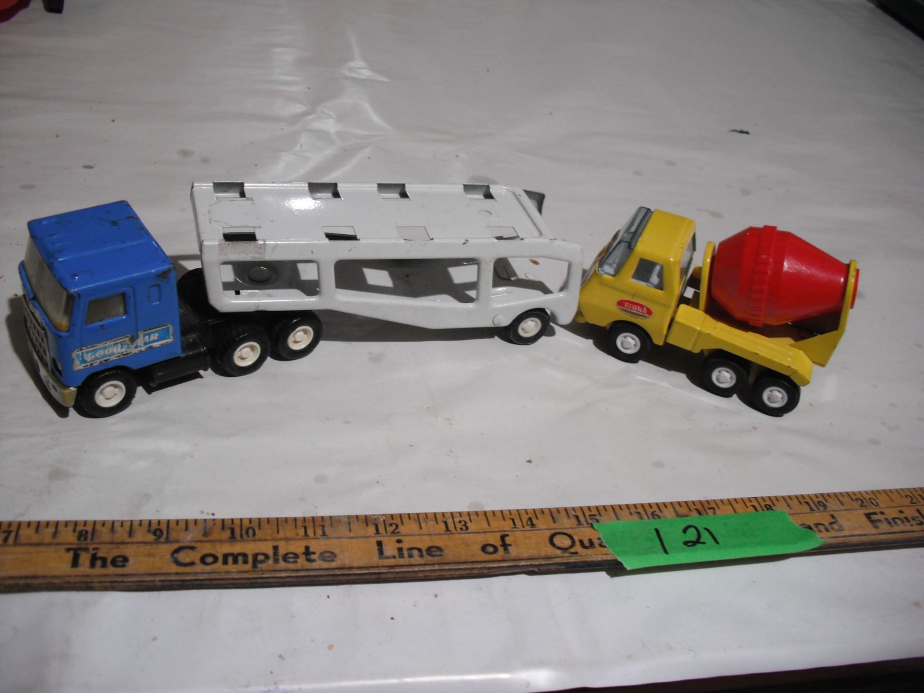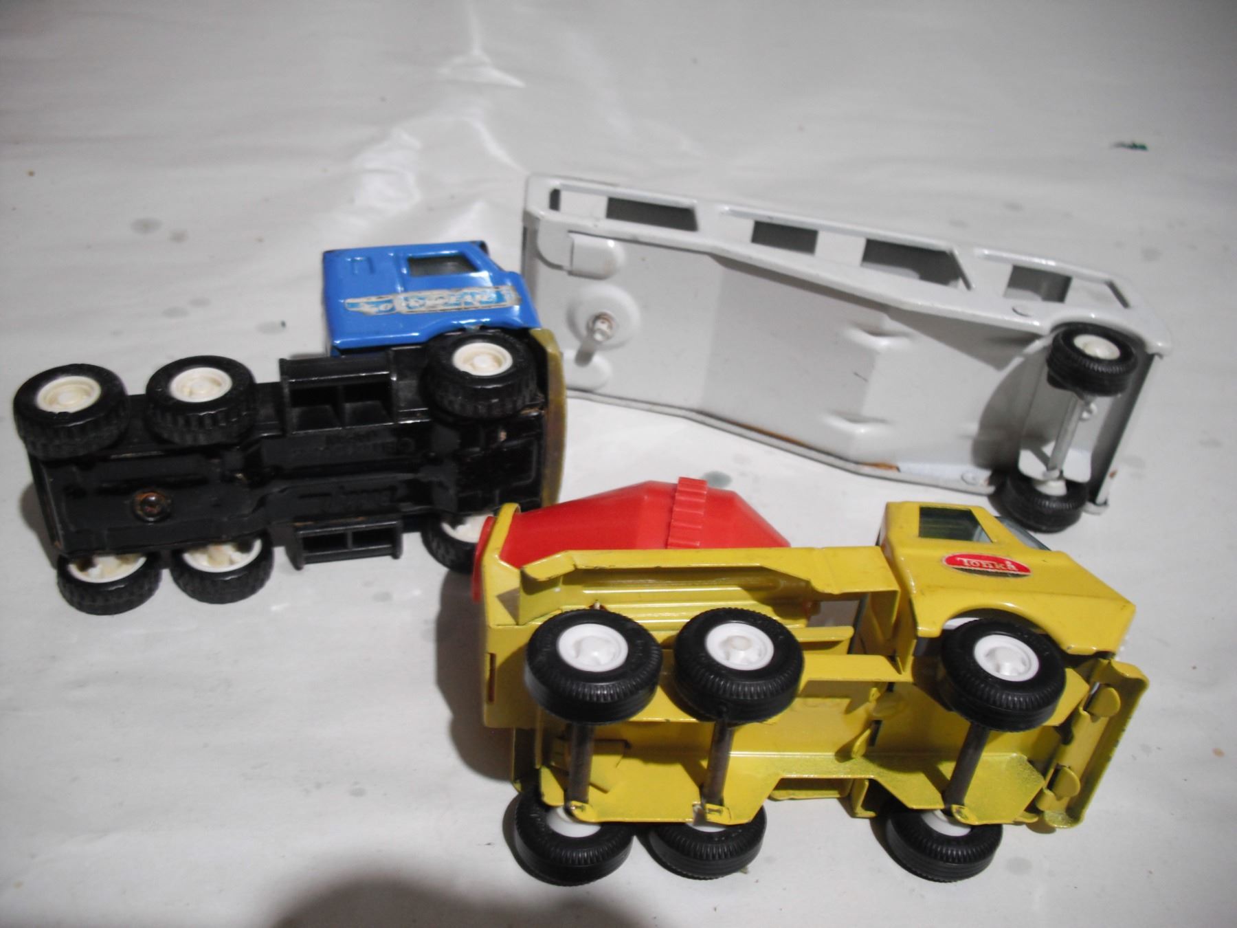 tonka small cement truck + buddy L semi + tonka trailer