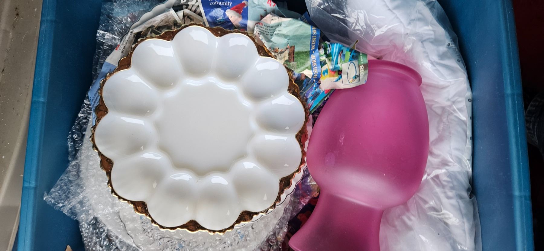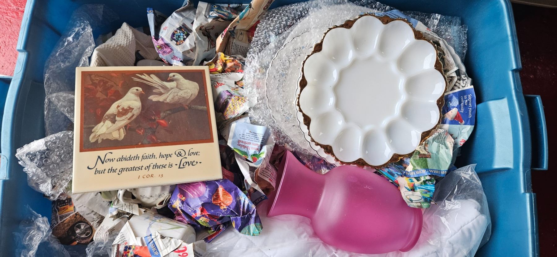tote of vintage china