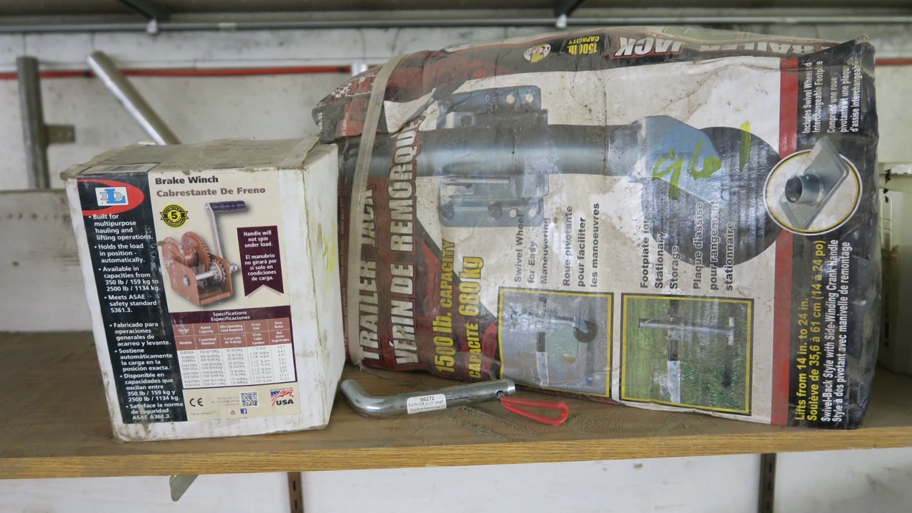 trailer lot -brake winch, jack, hitch pin