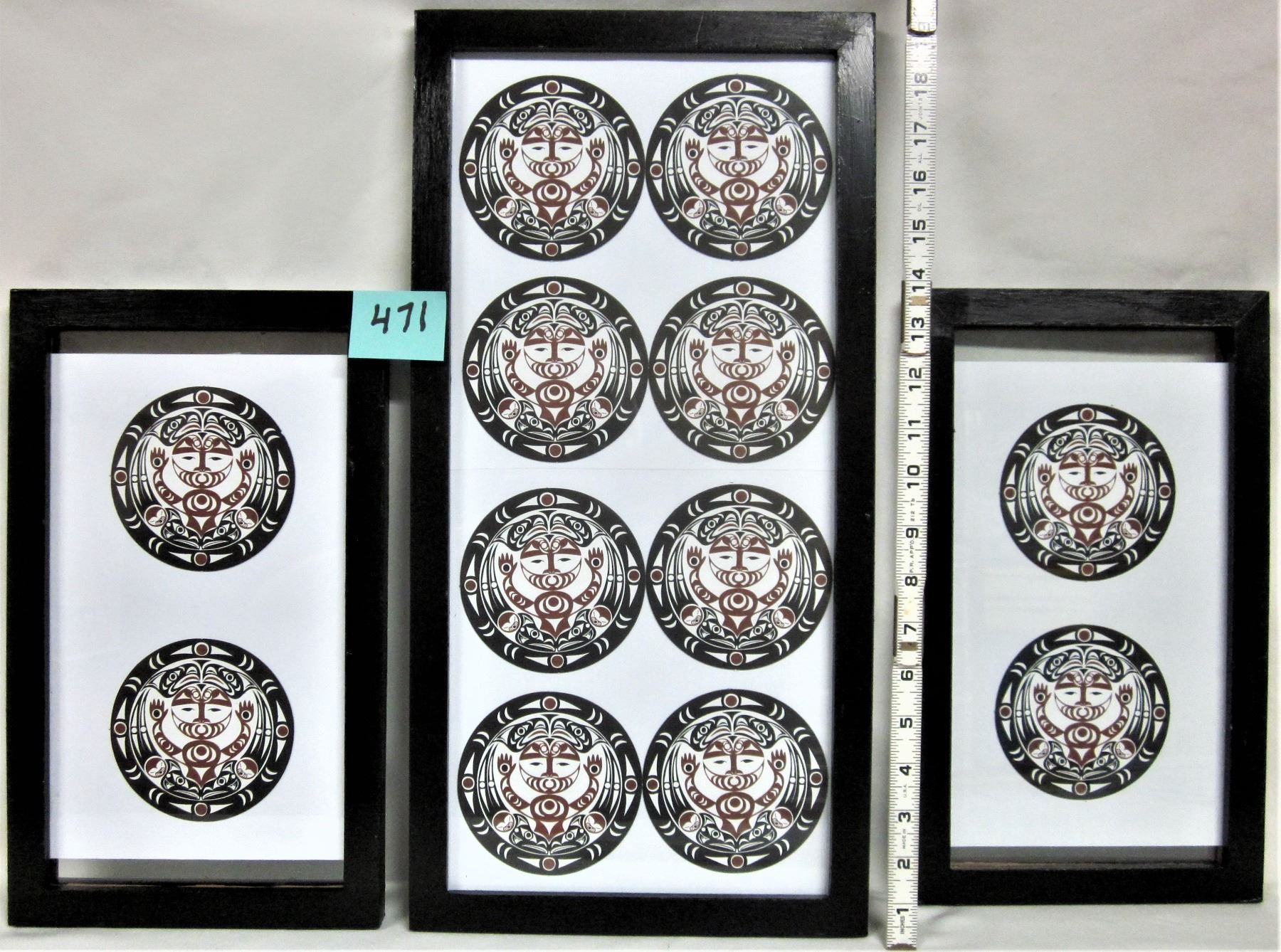trio (3) framed "Haida" art coasters