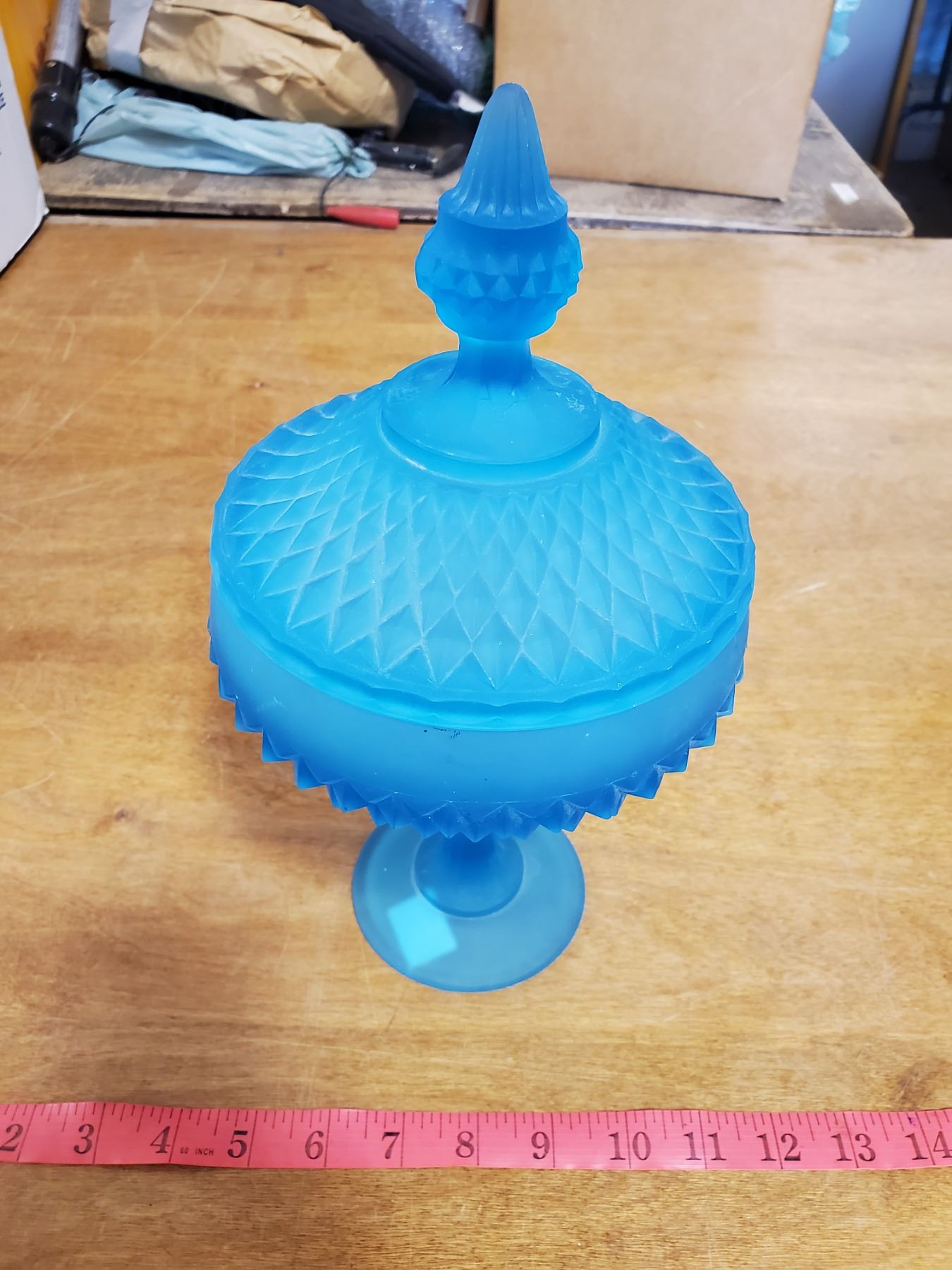 turquoise blue vintage candy dish 12" tall