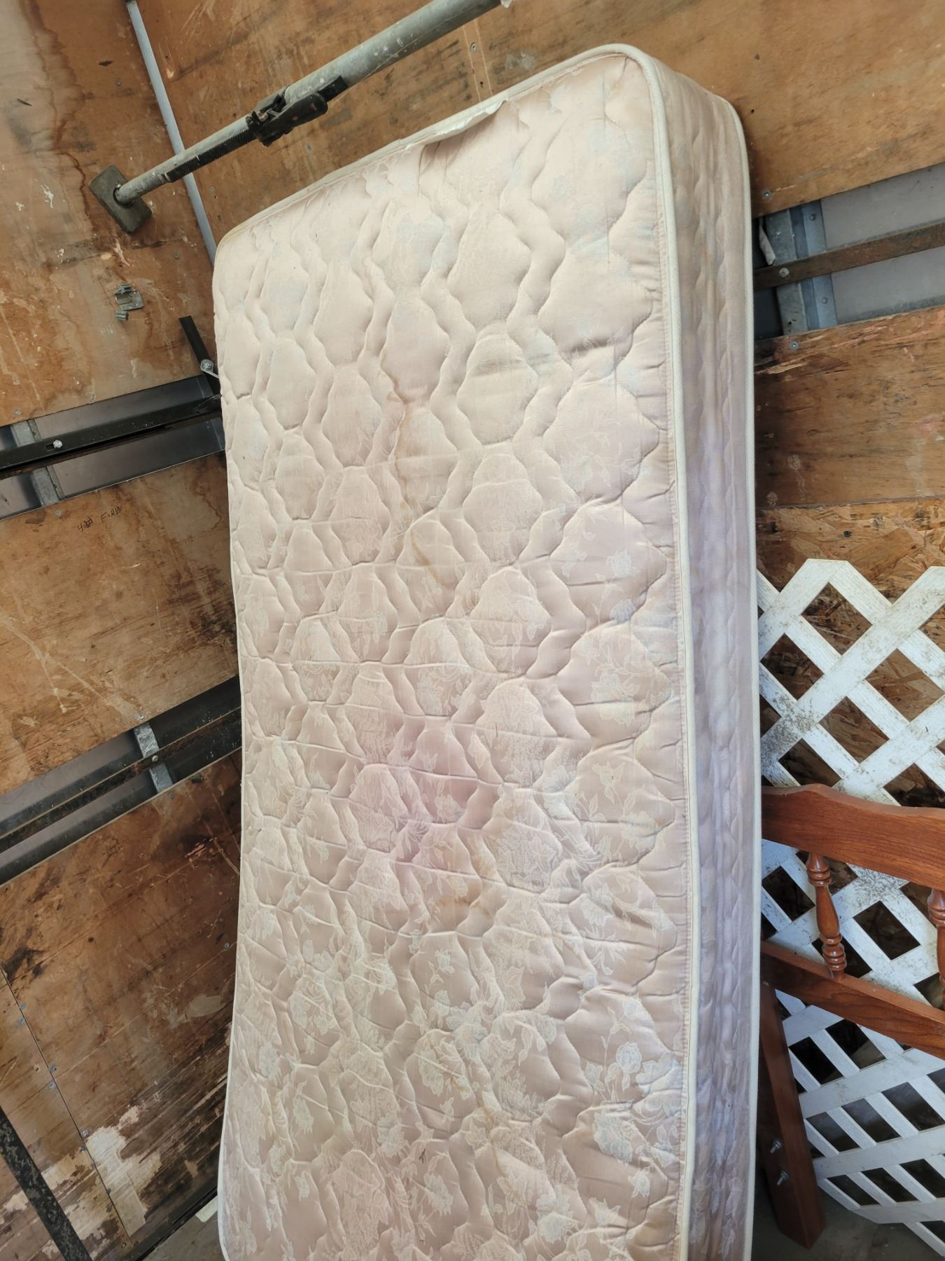 twin bed including mattress, box spring, frame and headboard/footboard - needs cleaning