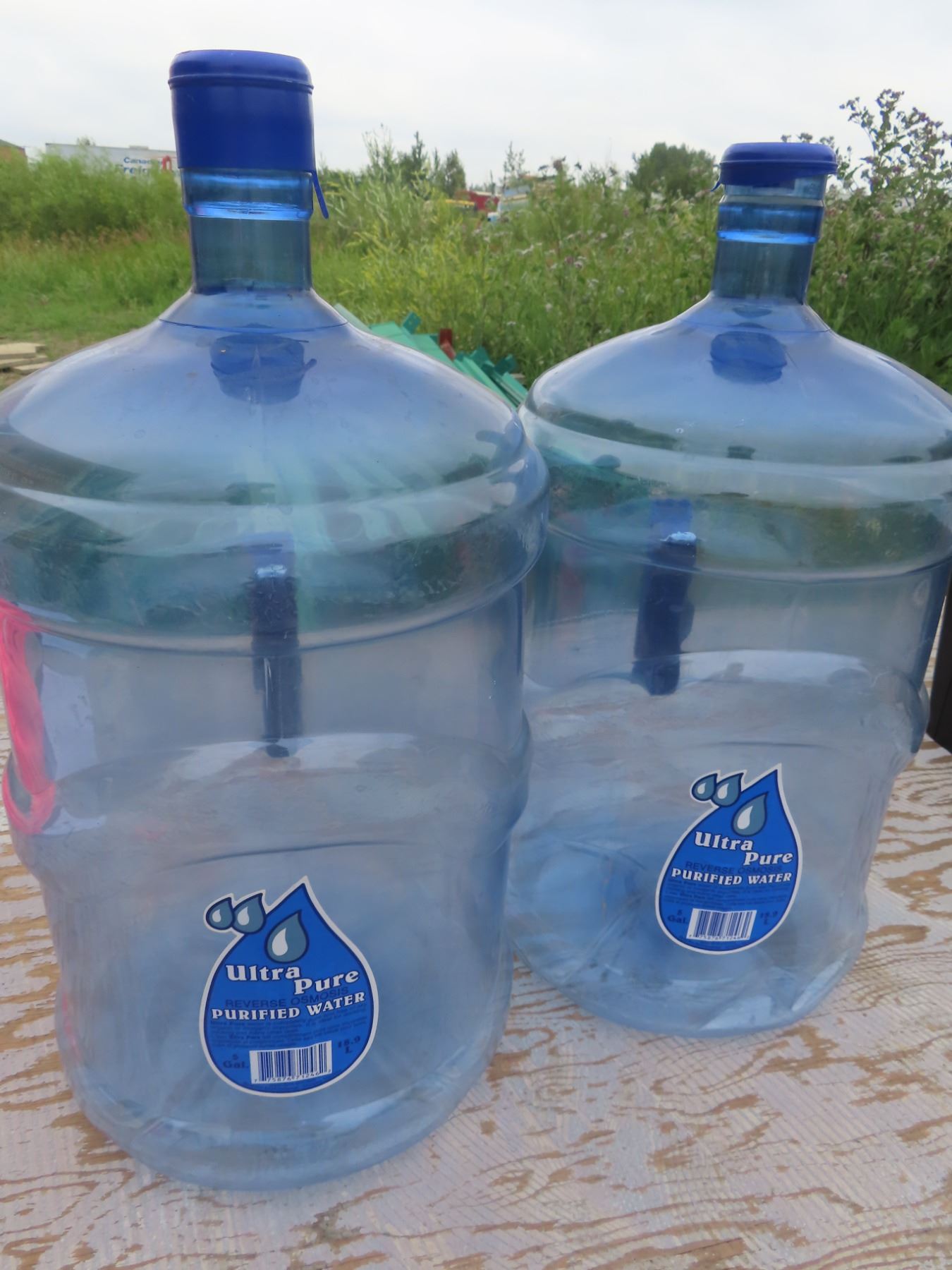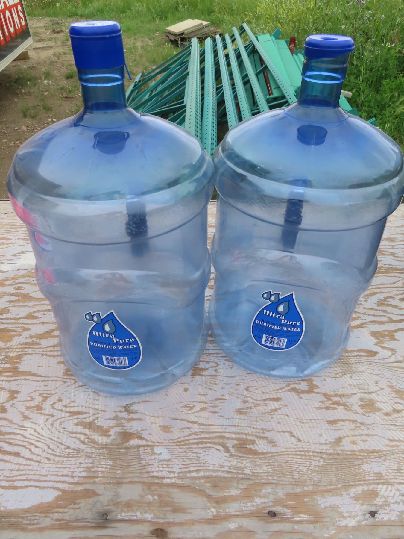 two 18.9 L water jugs
