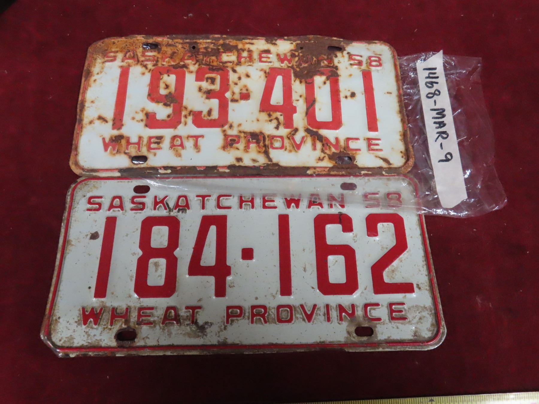 two 1958 Saskatchewan plates