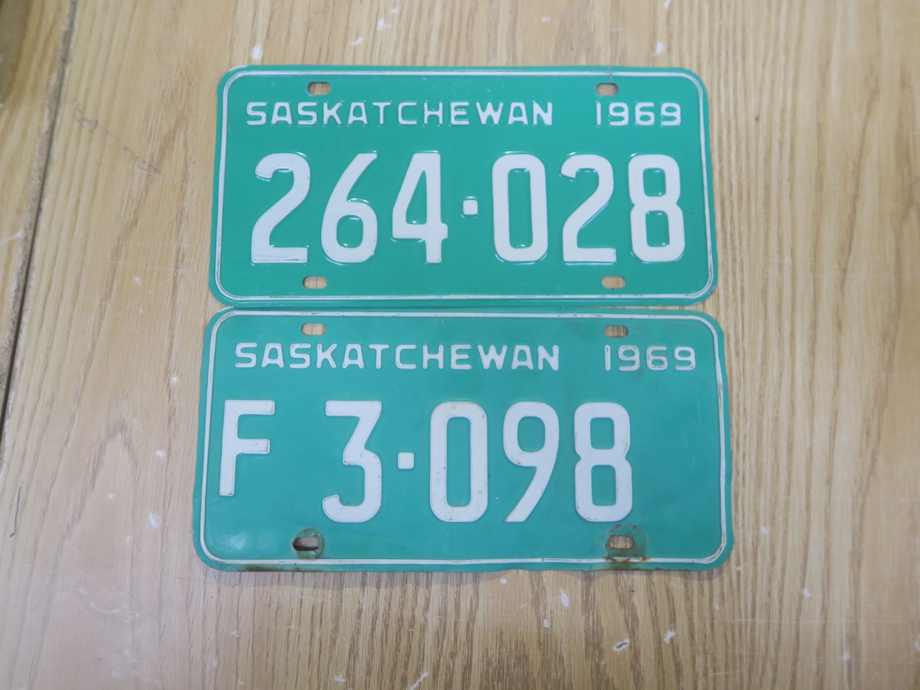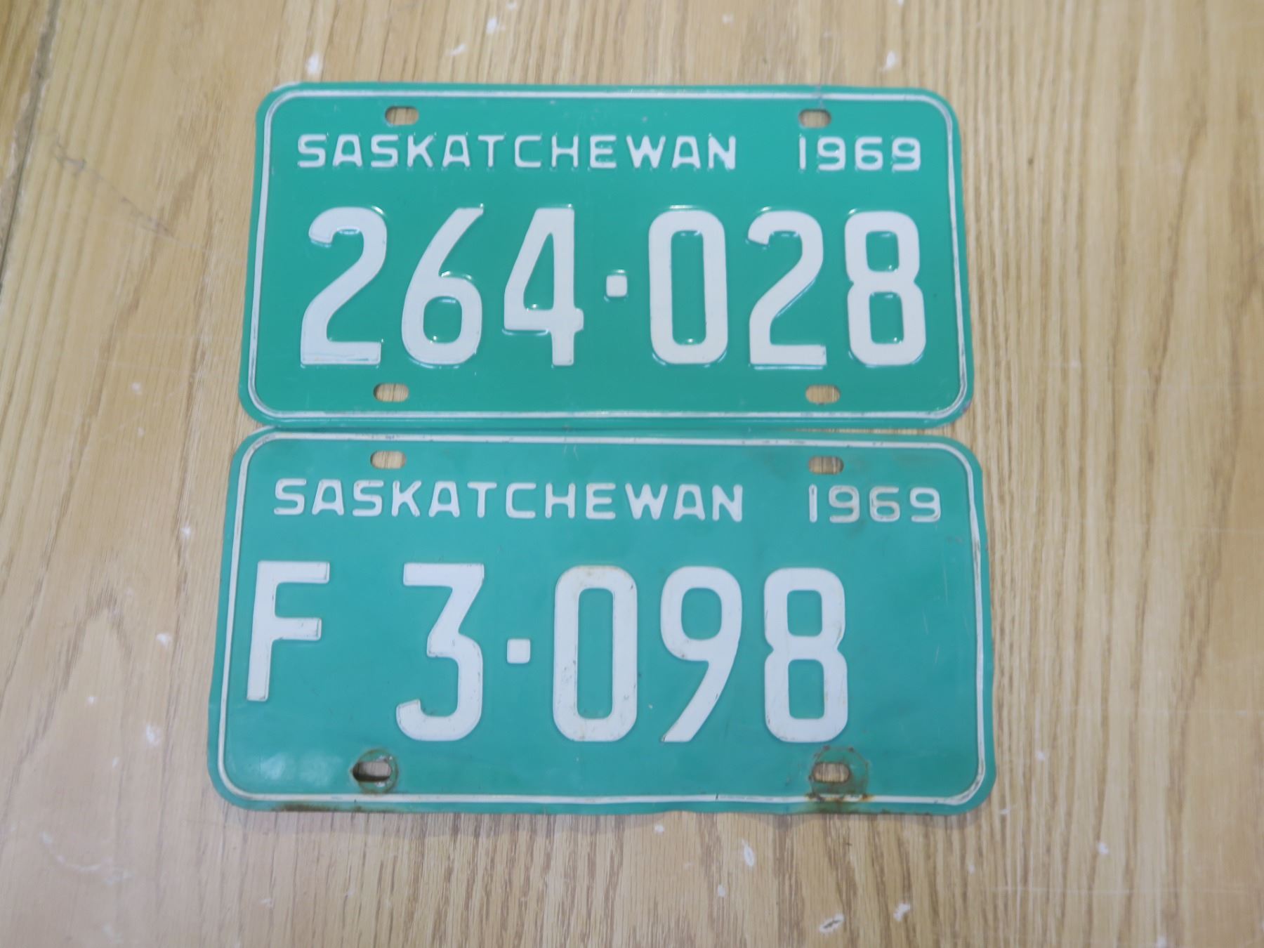 two 1969 sask license plates one farm plate