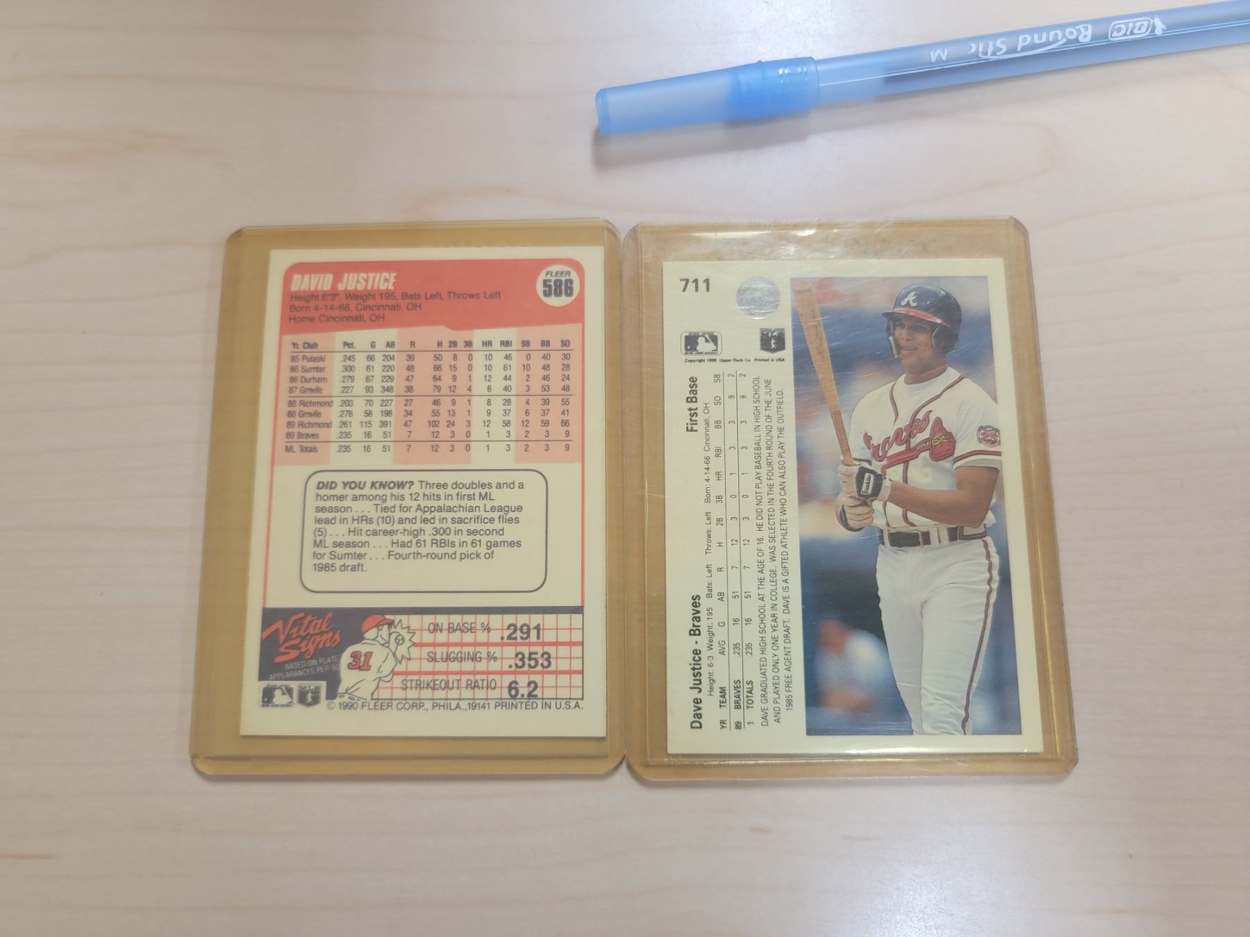two David Justice rookie cards