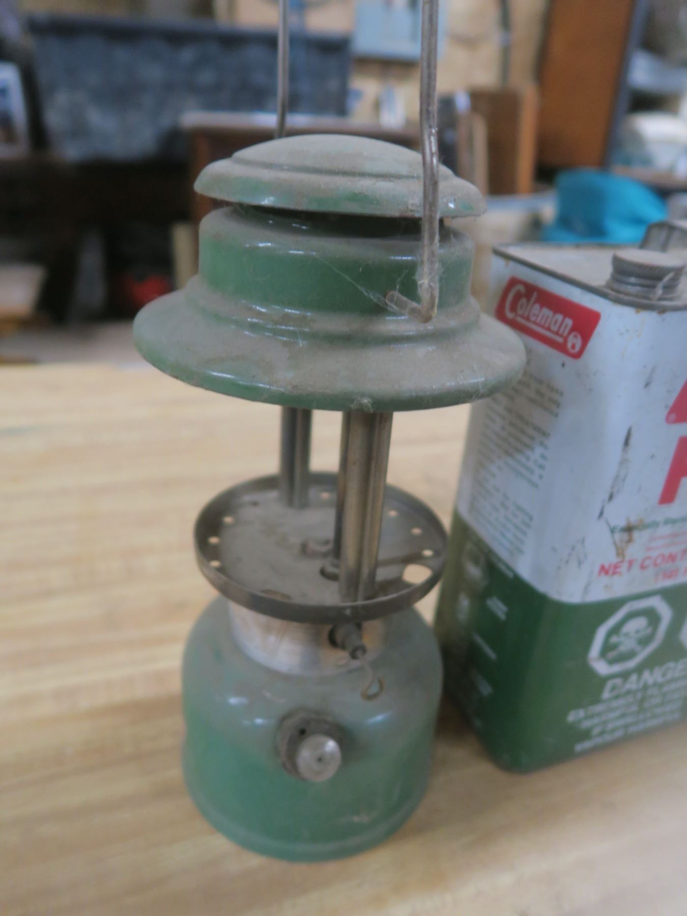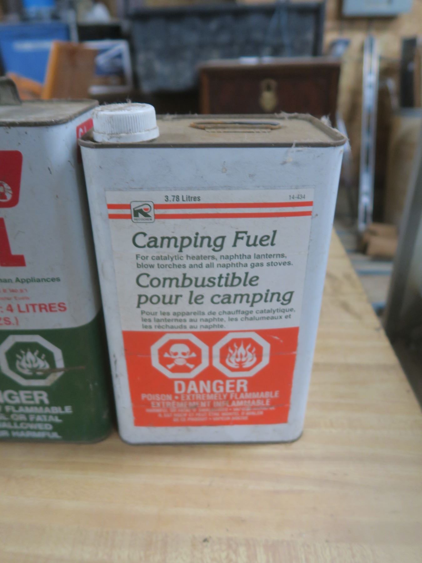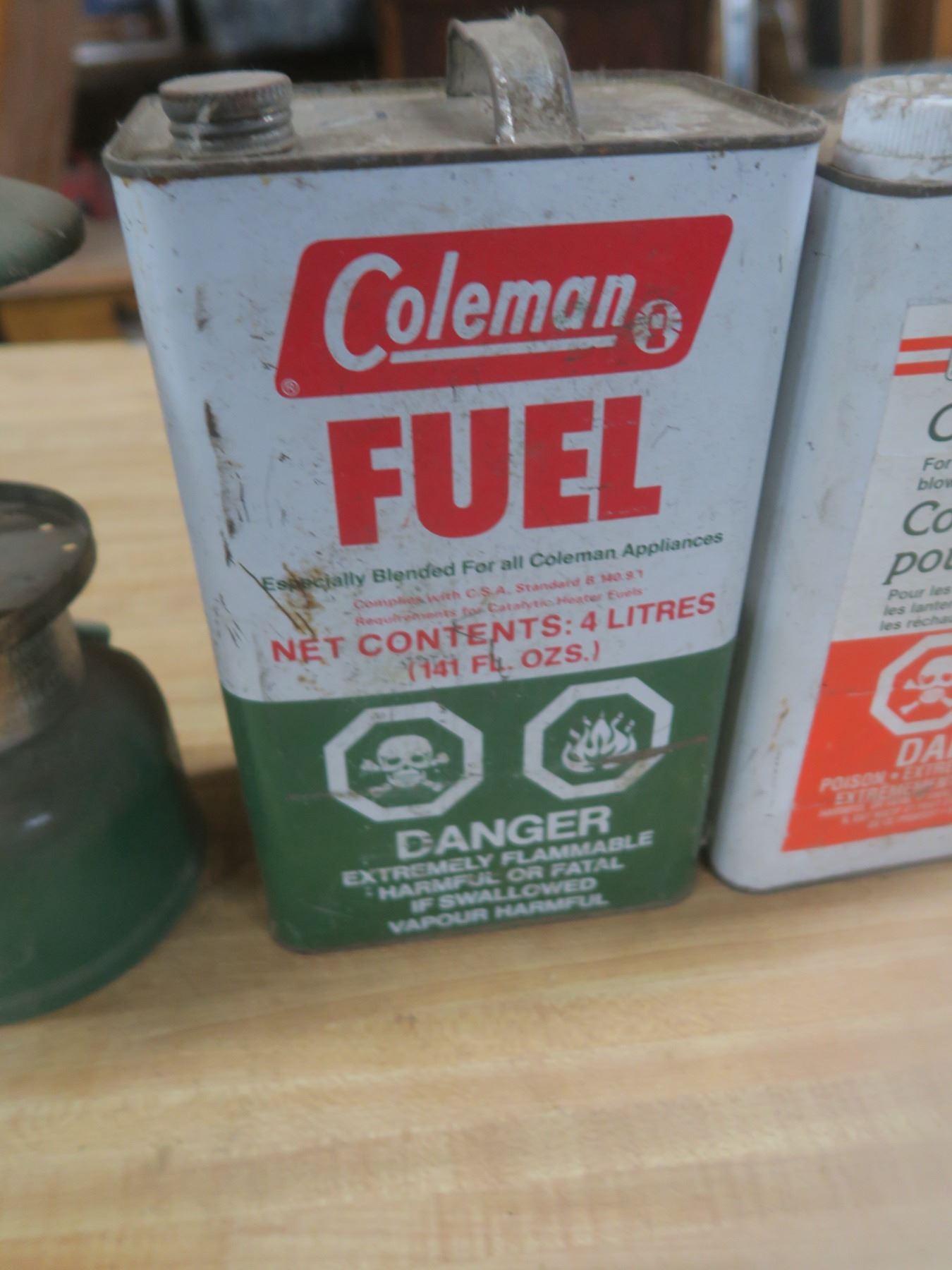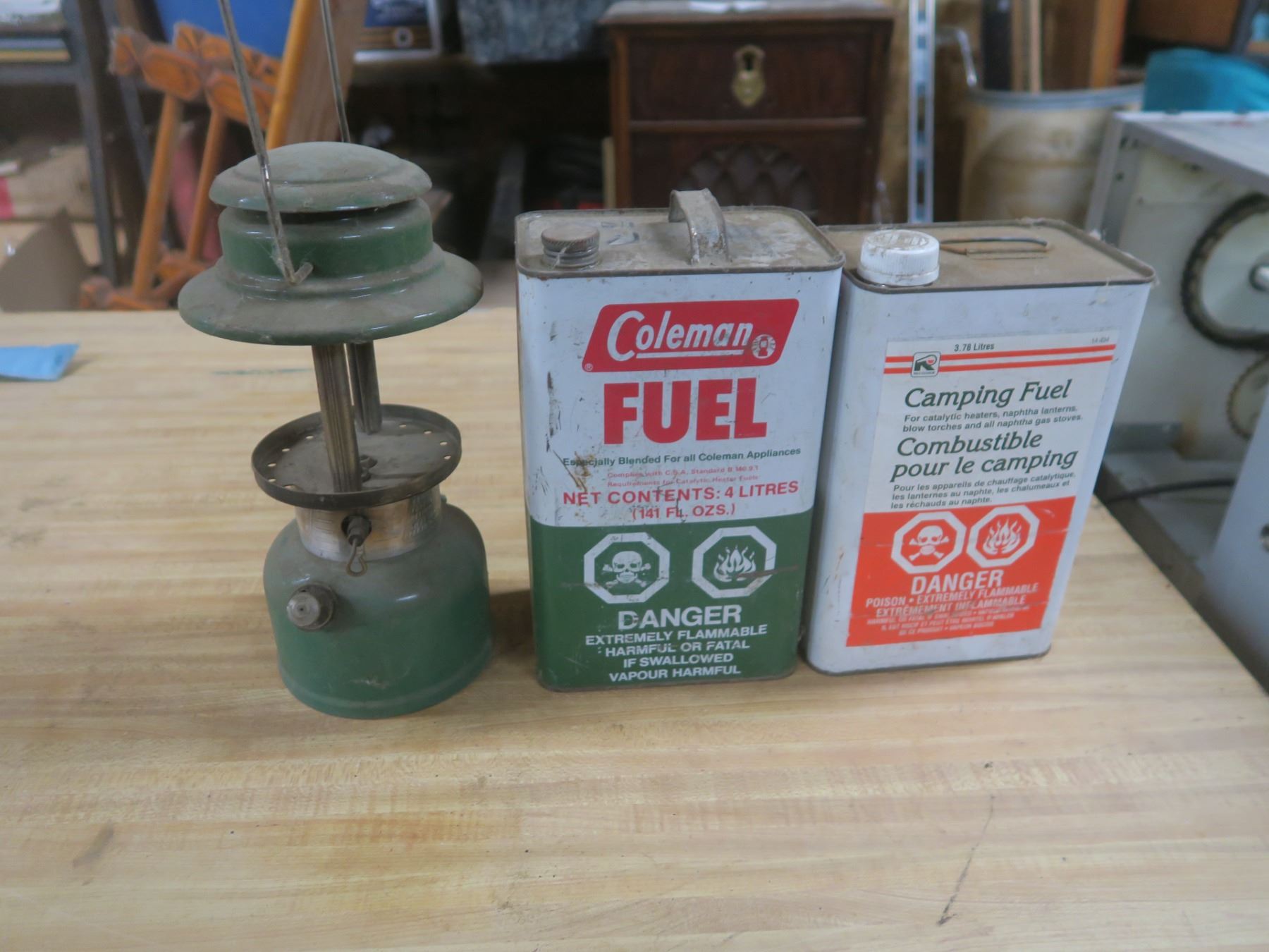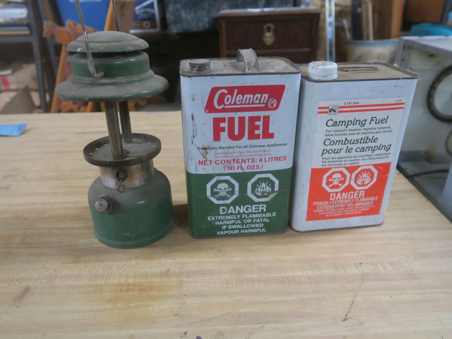 two camping fuel cans and a lantern