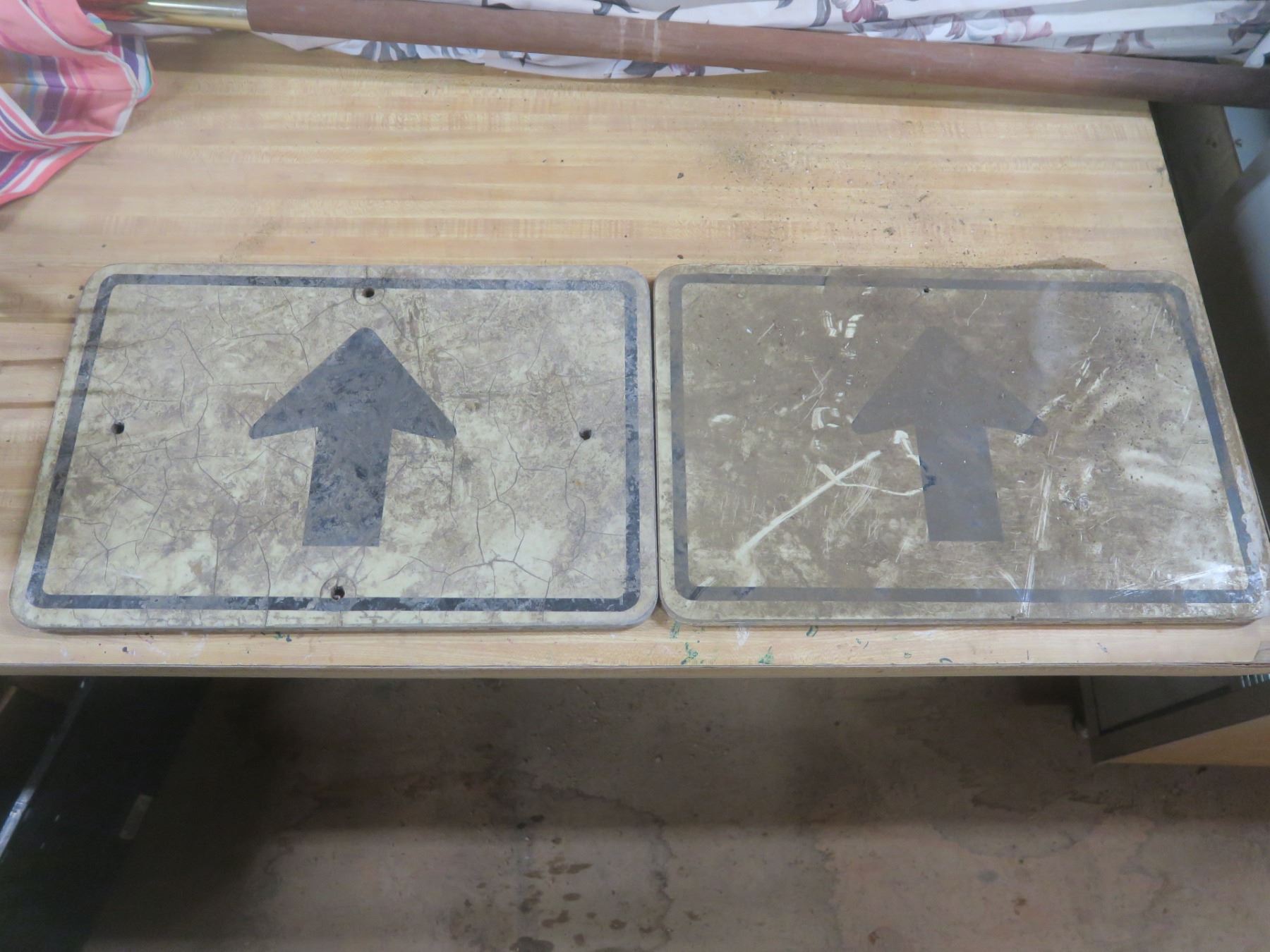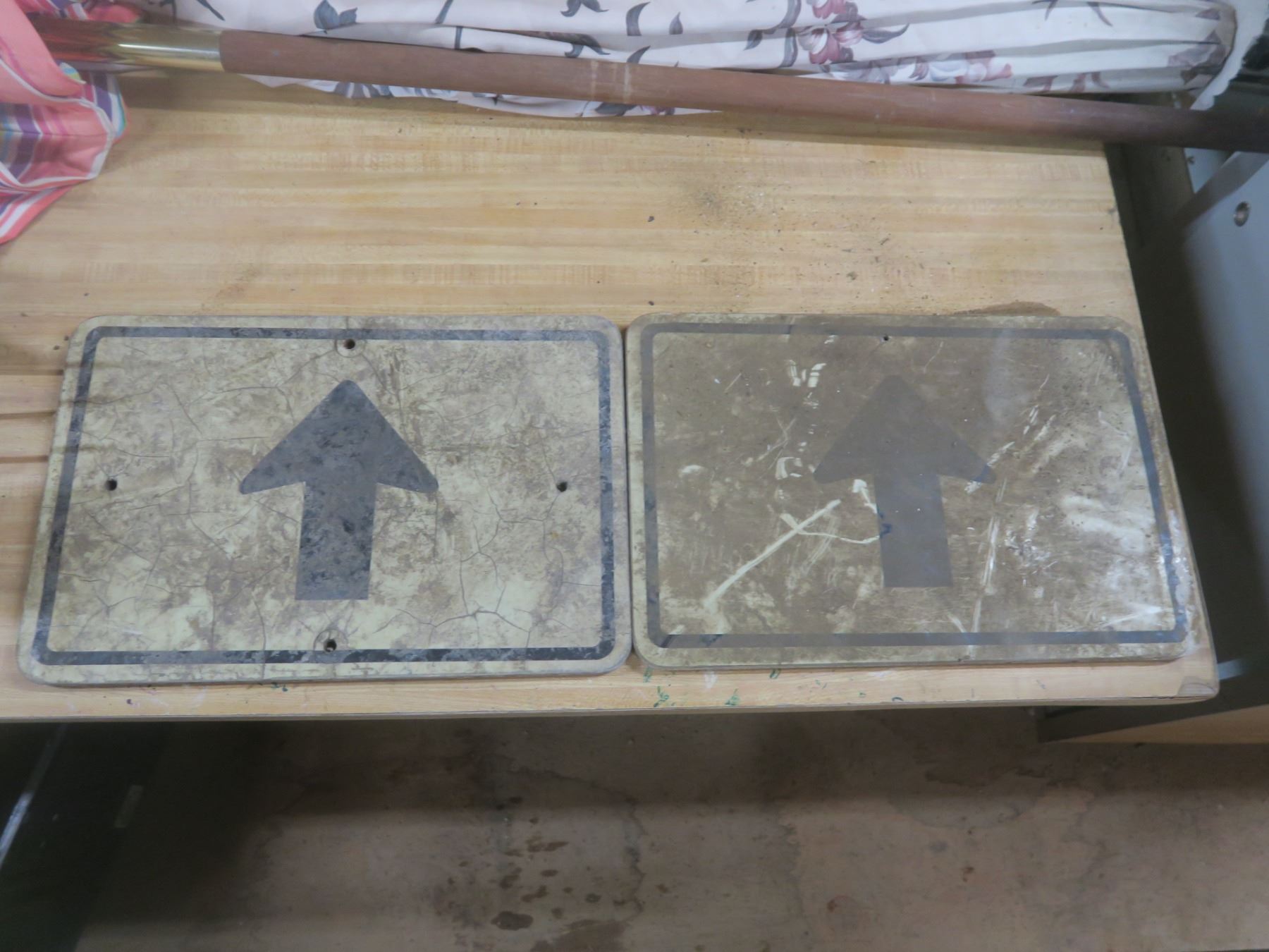 two forward arrow signs