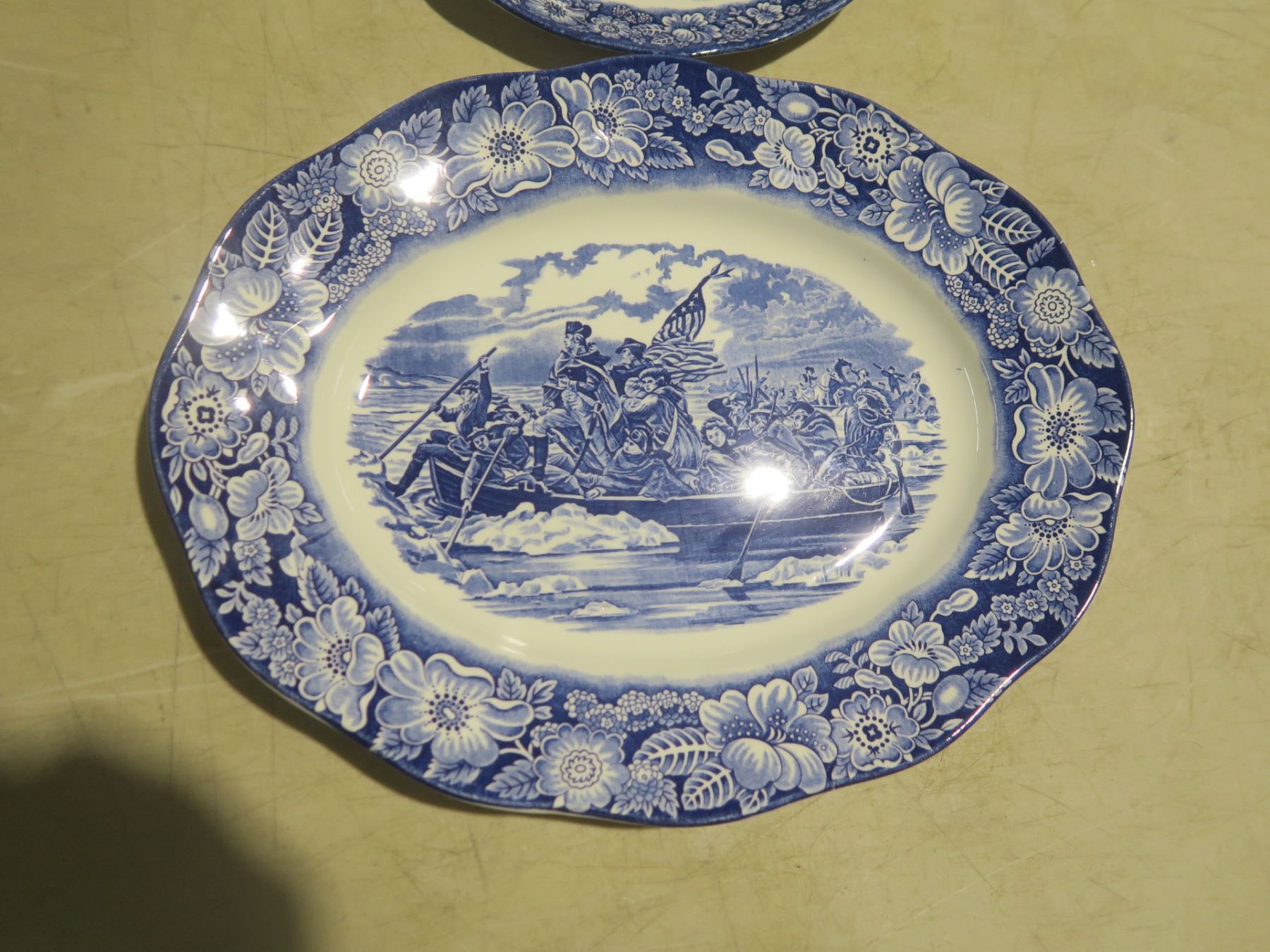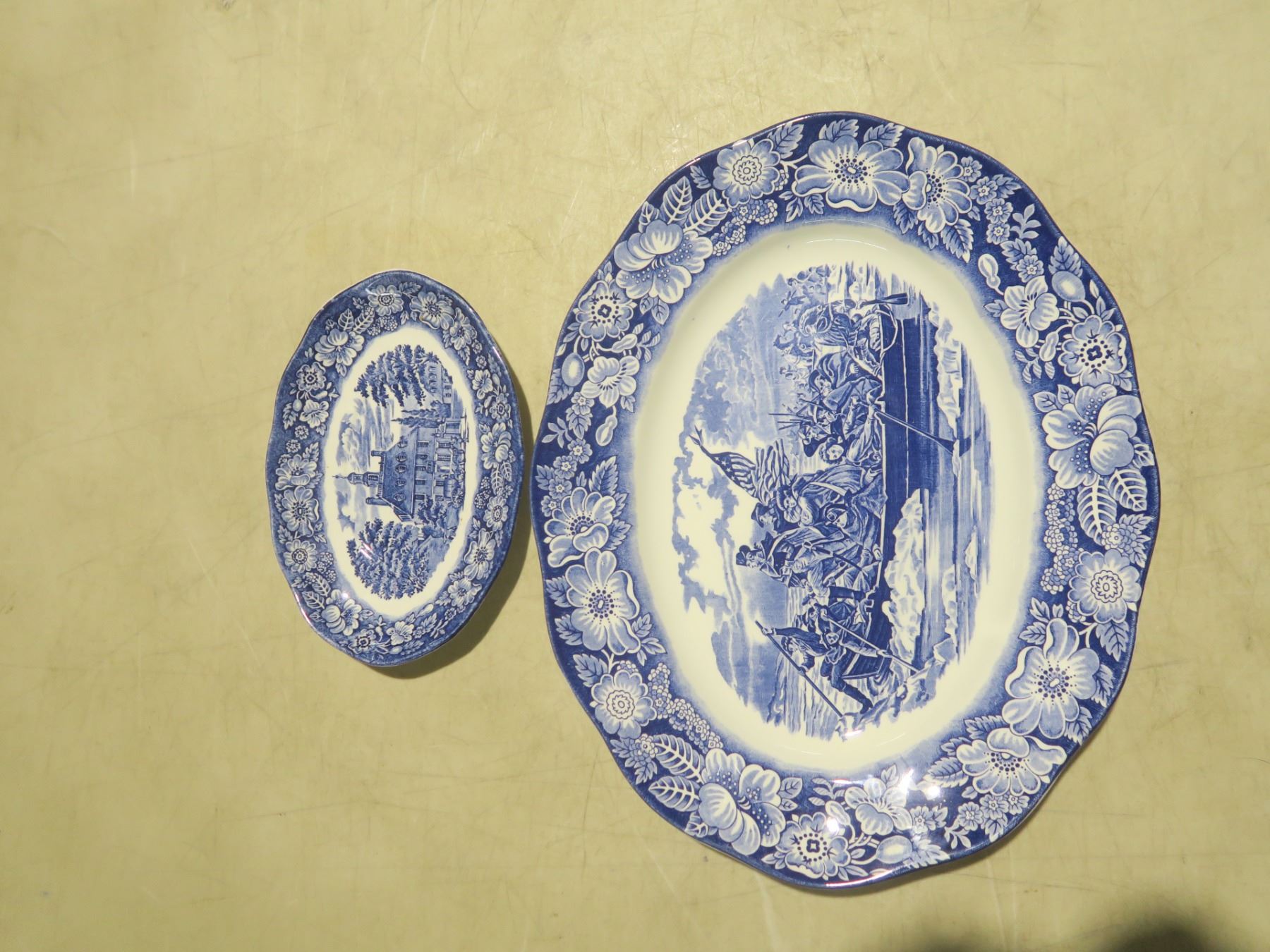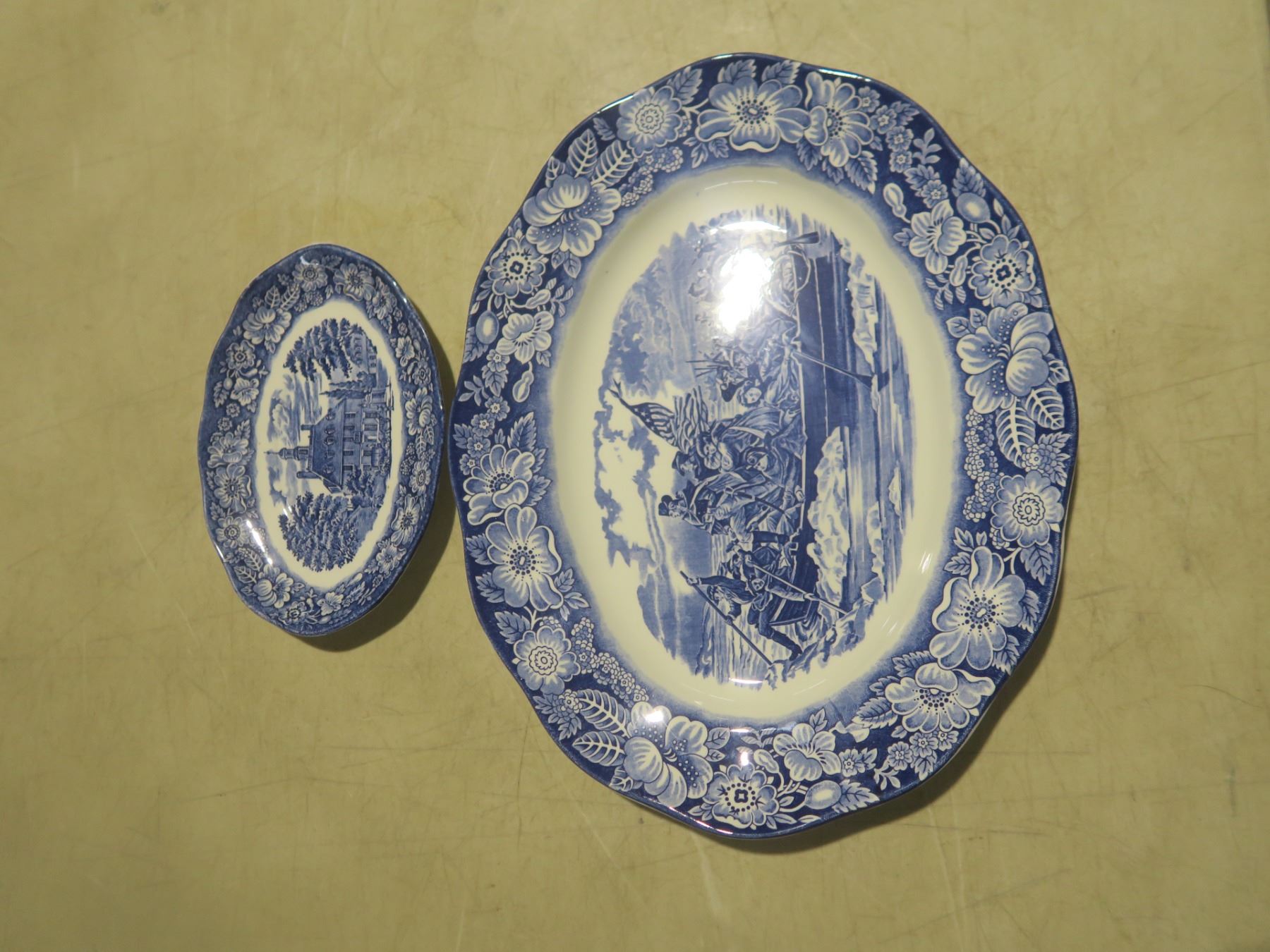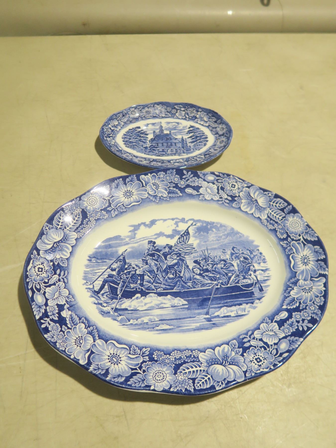 two liberty blue platters 14"x11.3" and 8"x5.5"