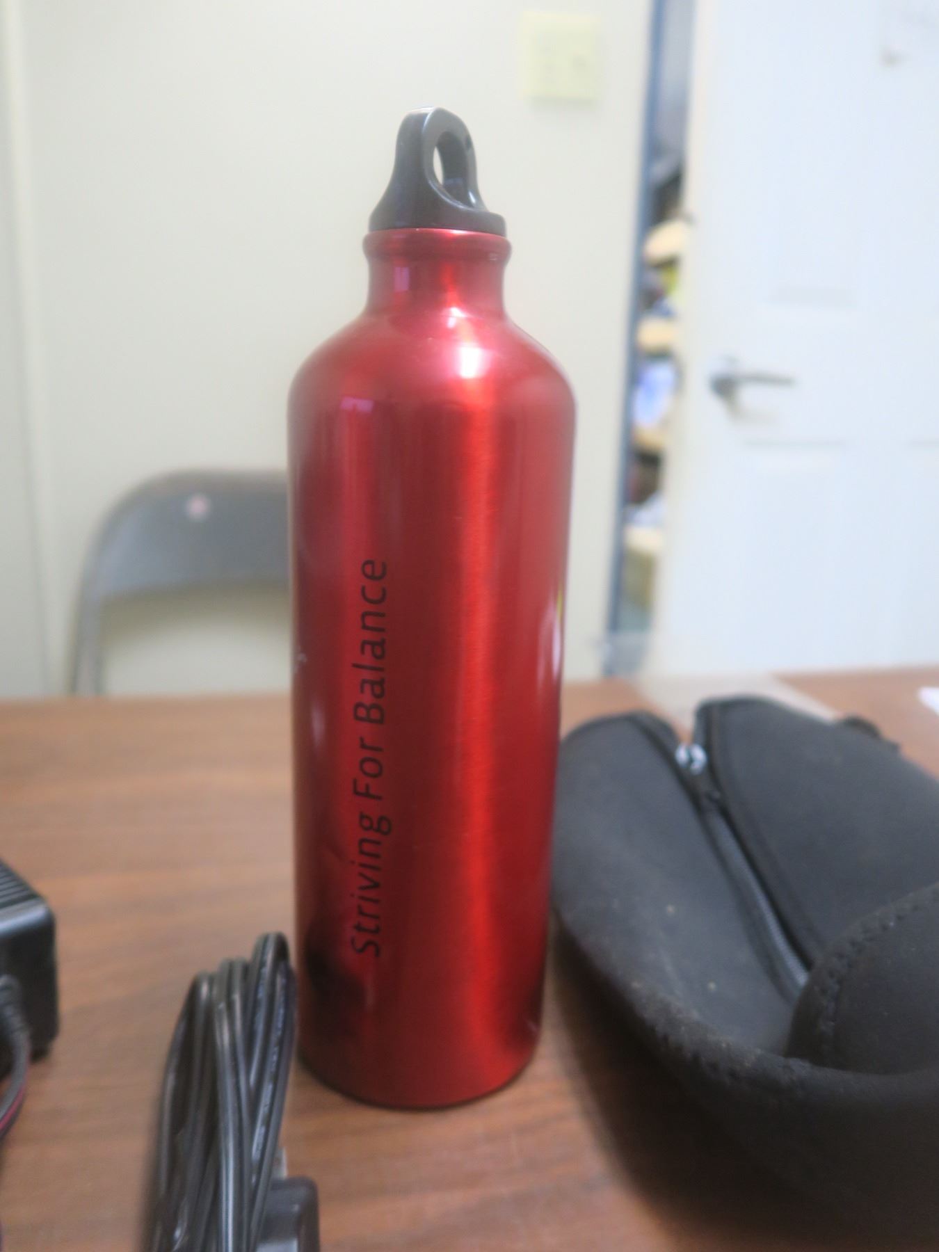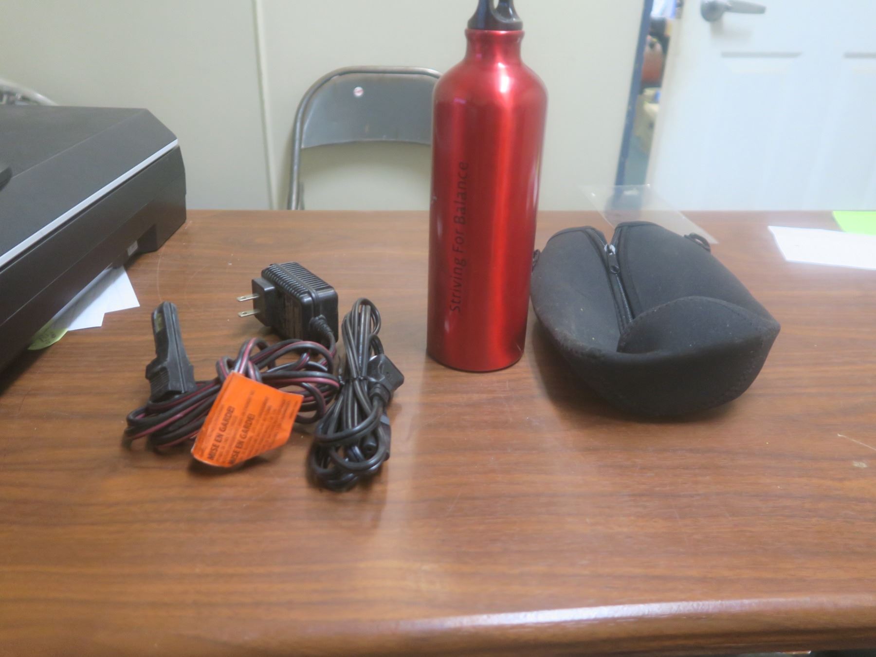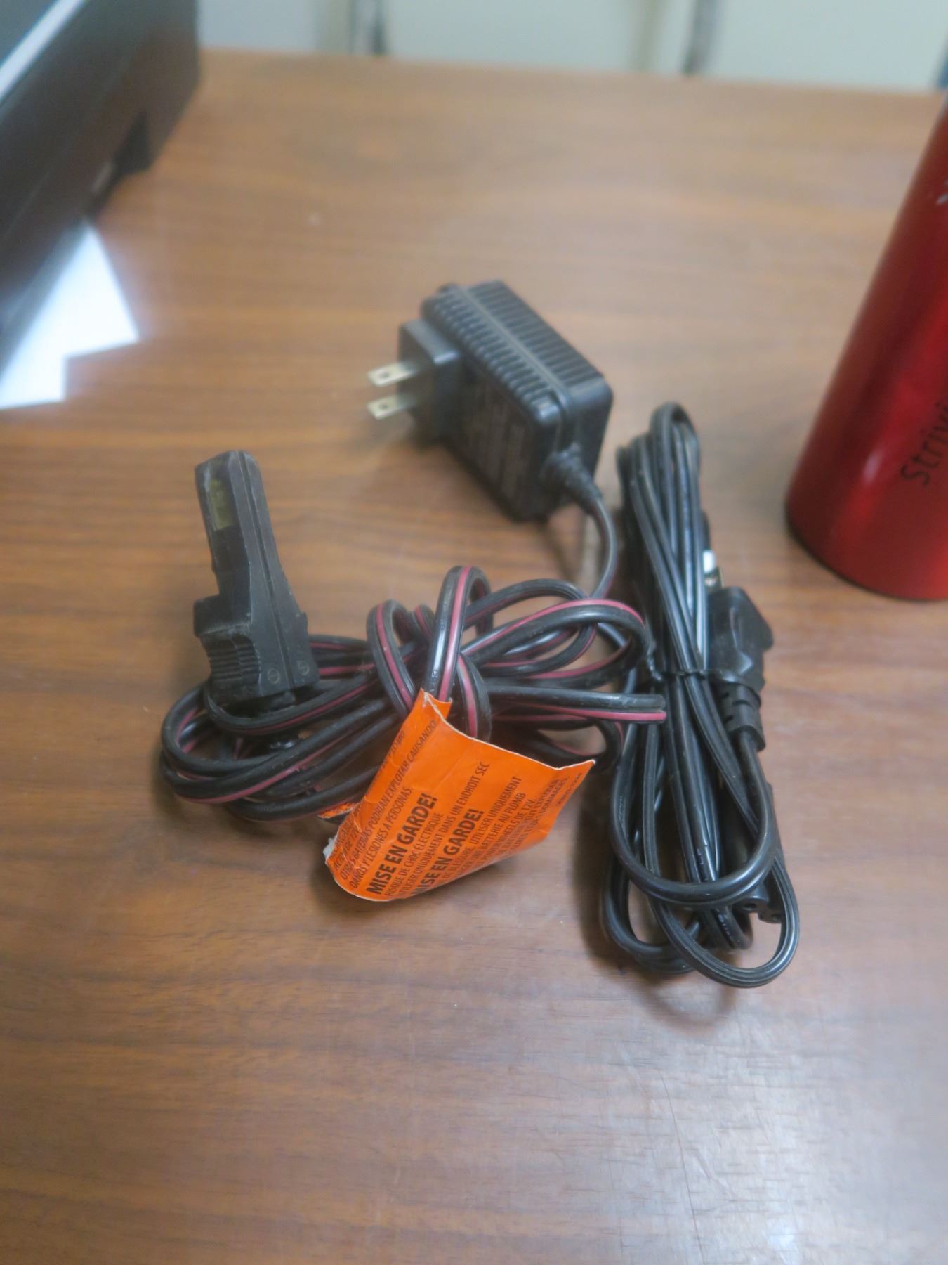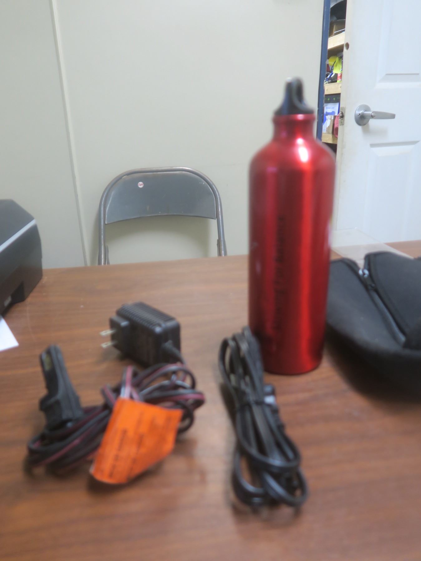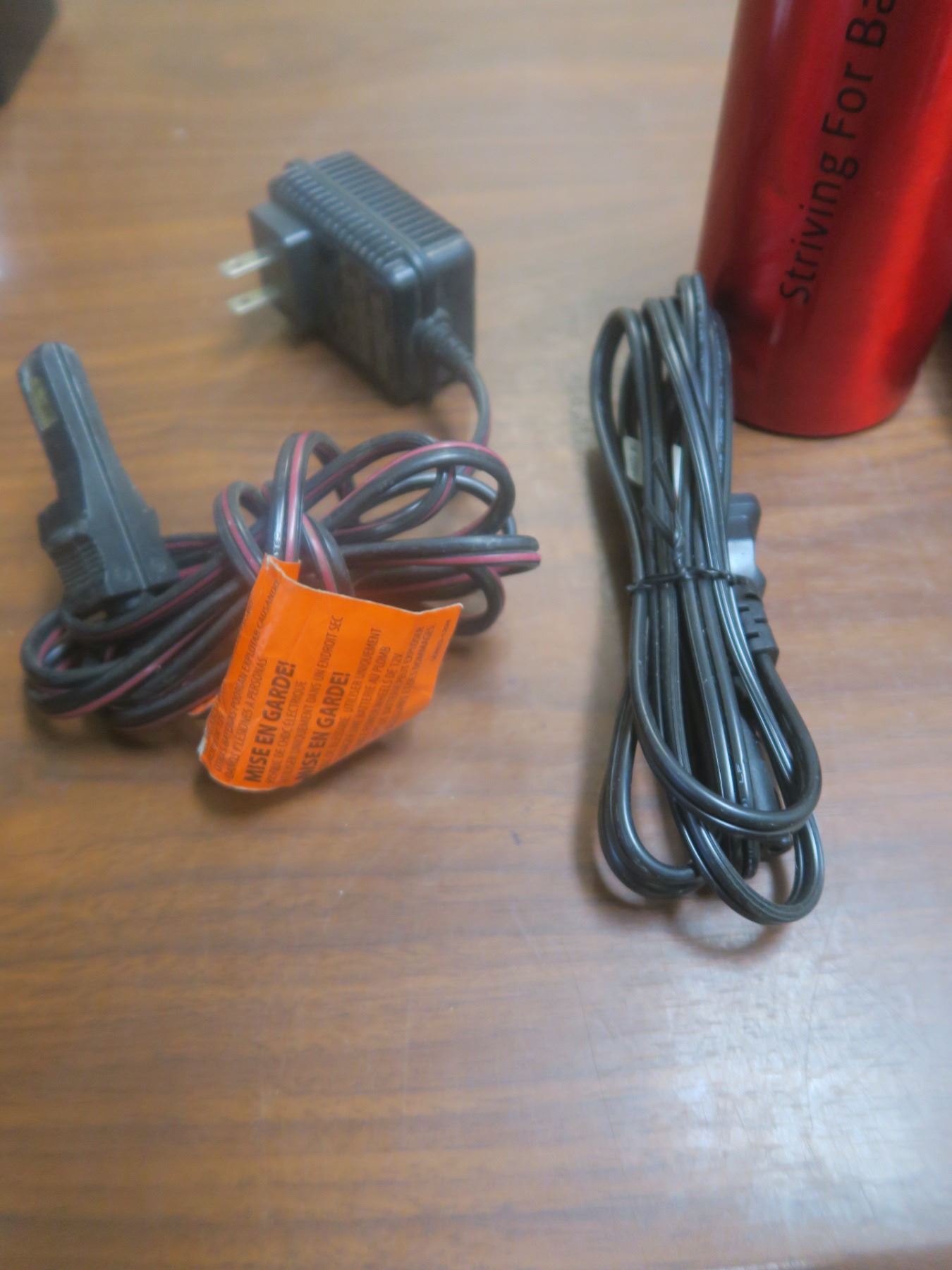 two misc cords and water bottle