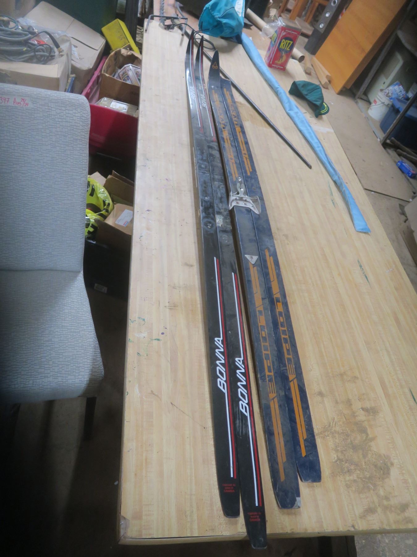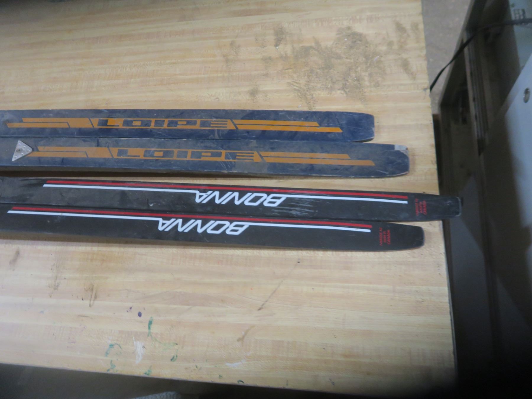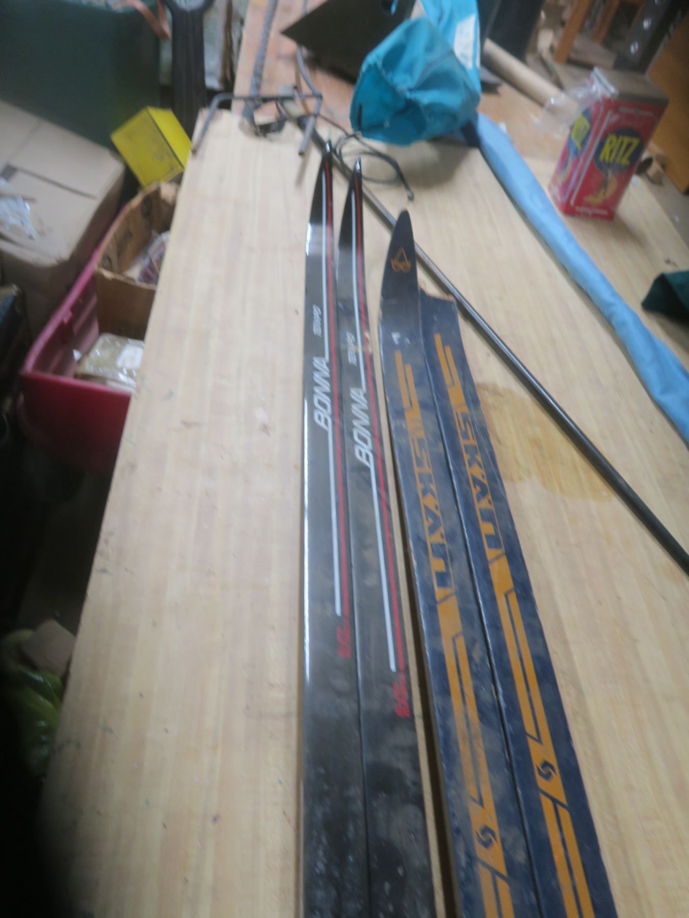 two pairs of broken ski's
