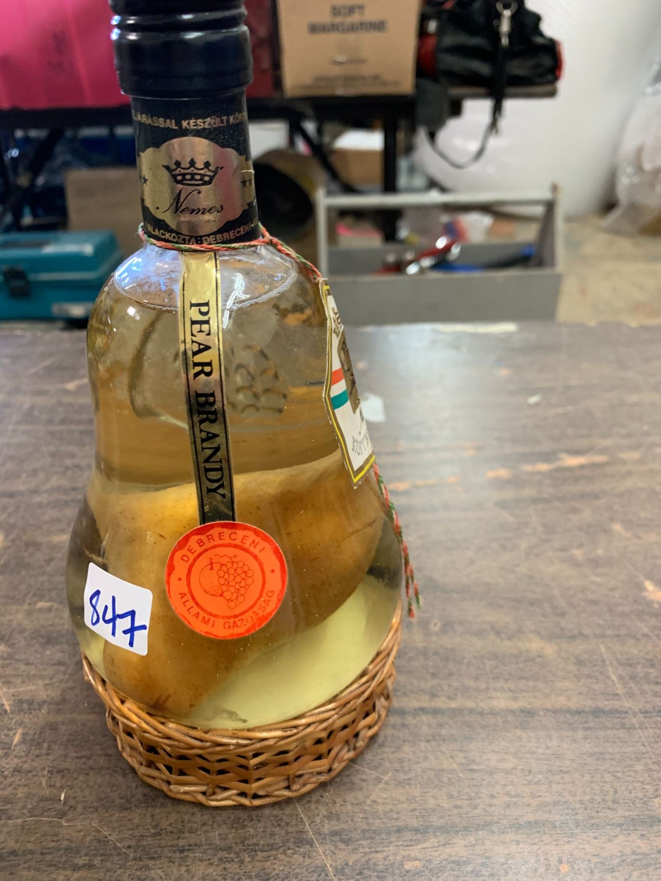 unopened pear brandy bottle