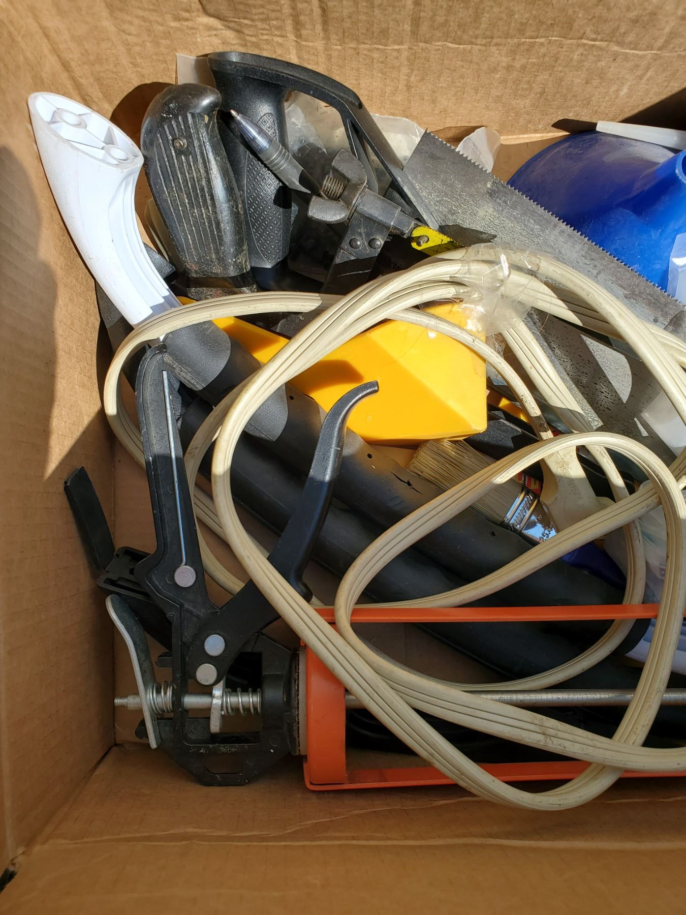 various hardware - saw, caulking gun, etc