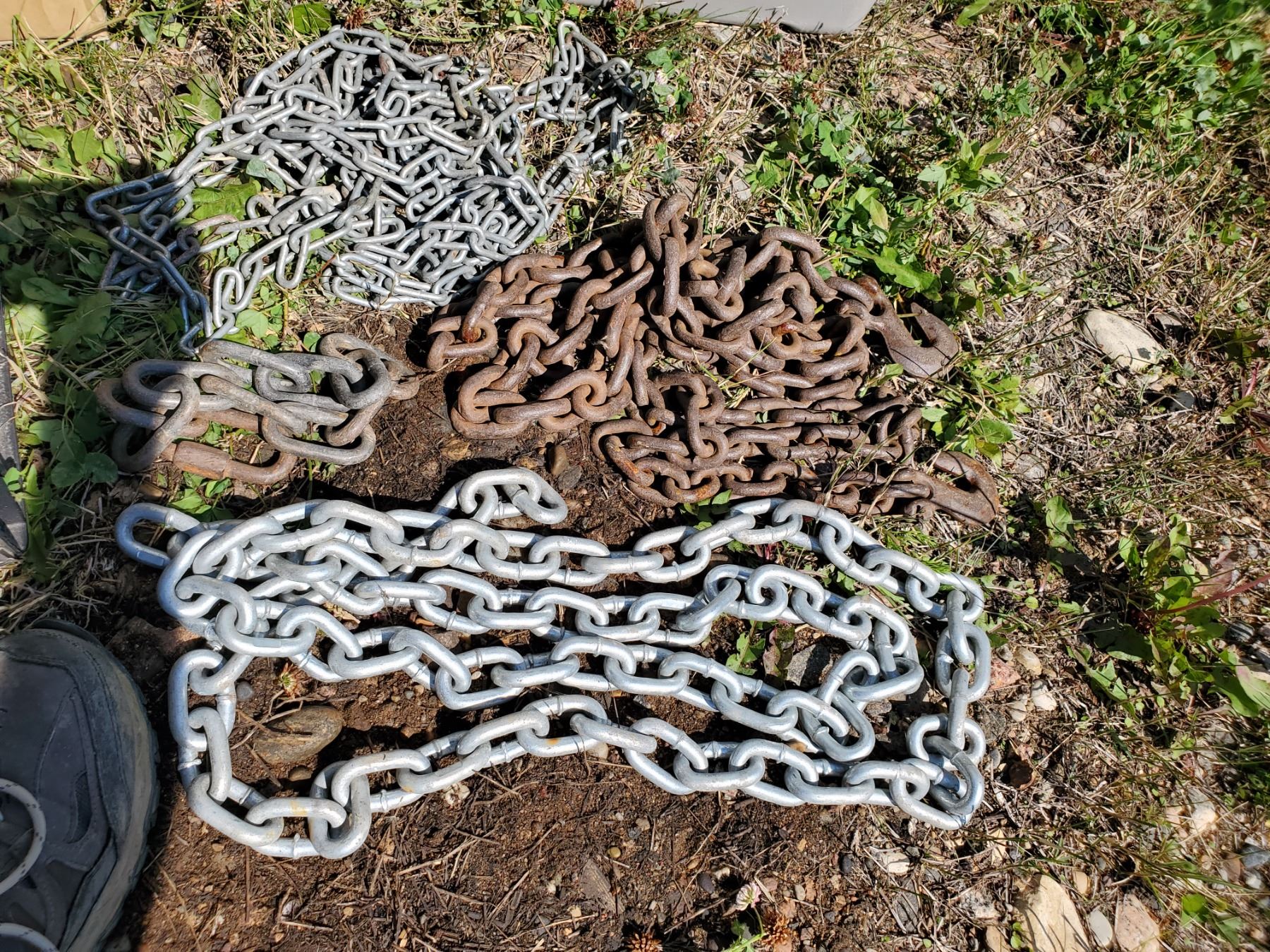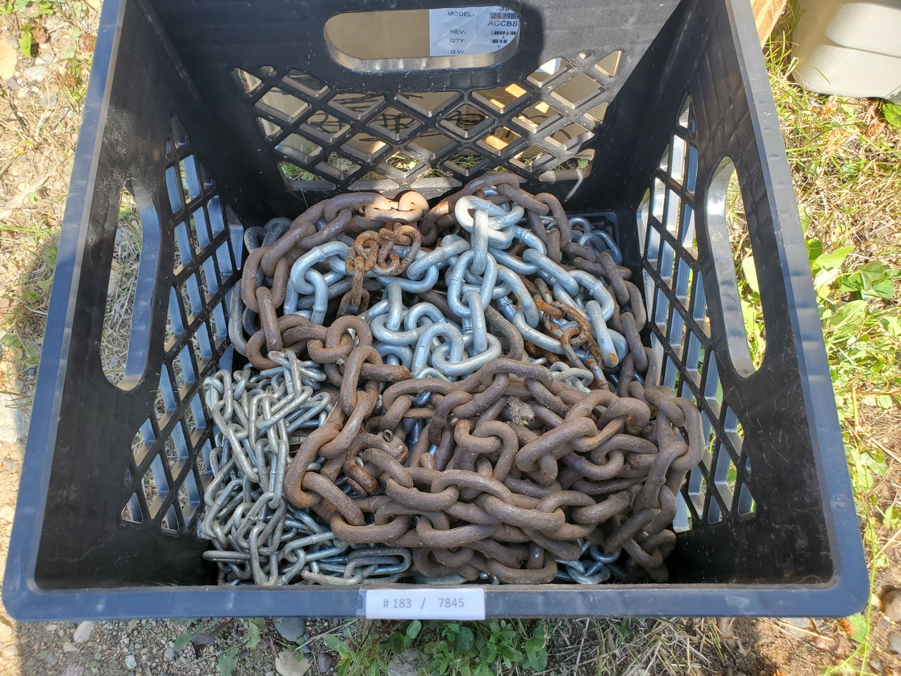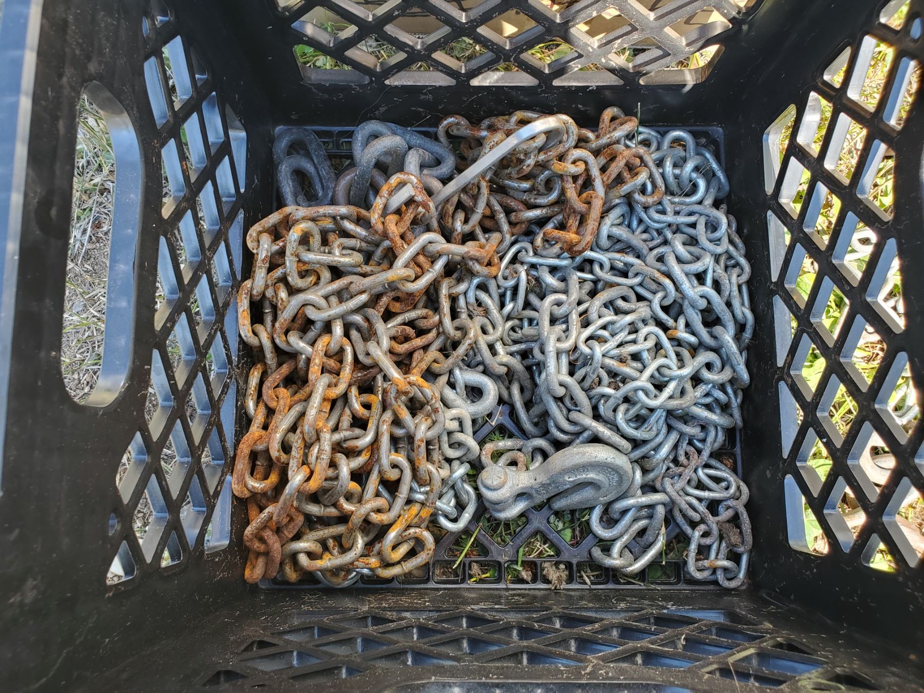 various lengths of chain in milk crate