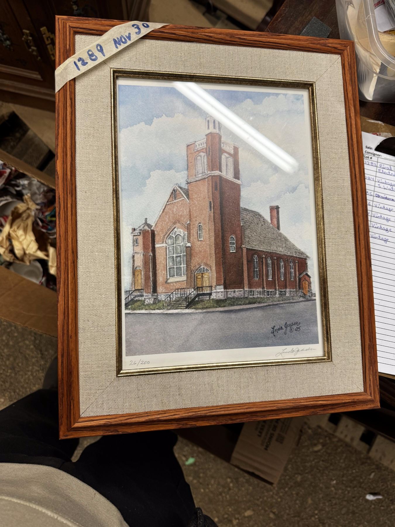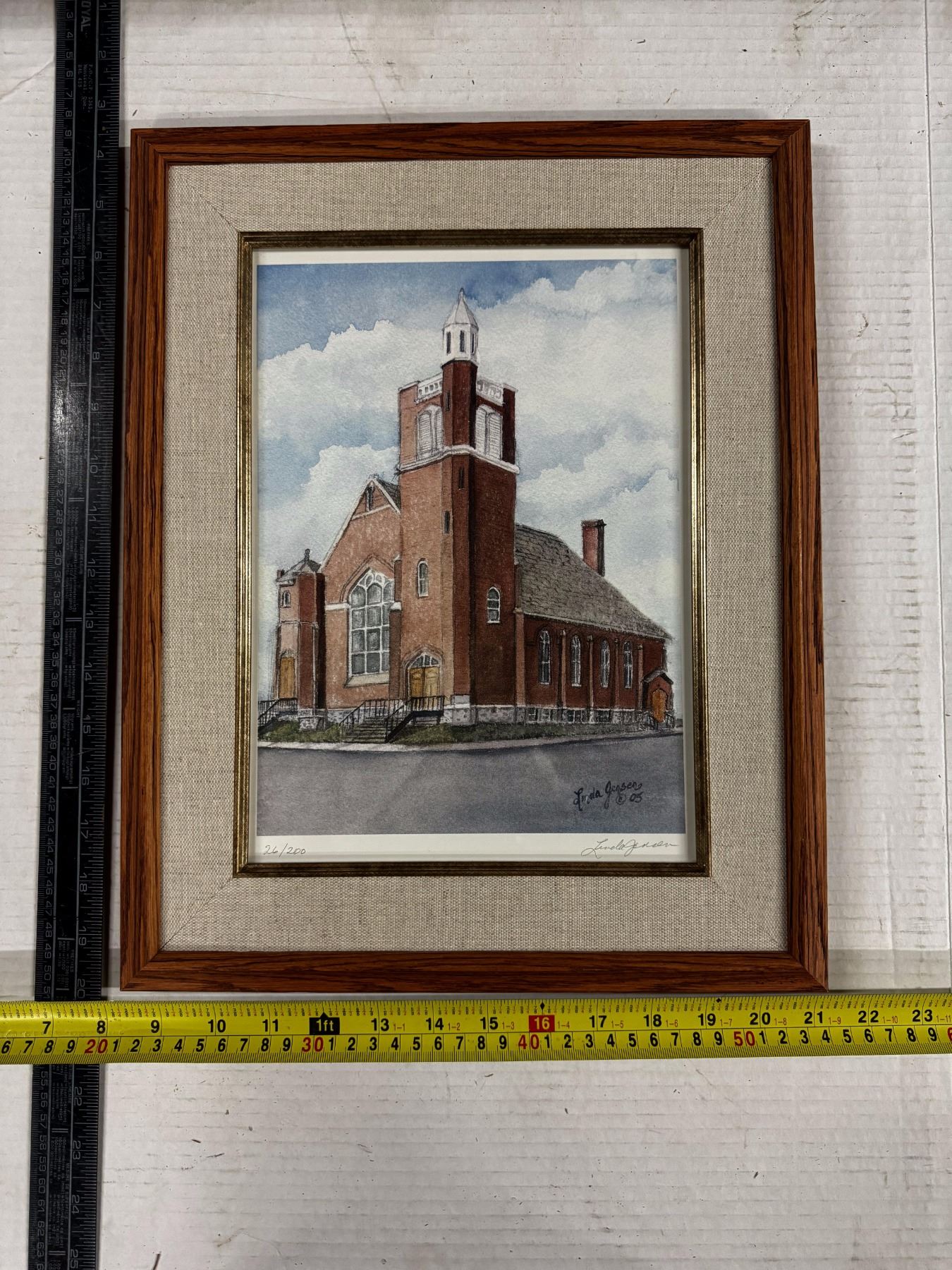 vintage Linda Jensen watercolor in frame '05 - 13"x16.5"