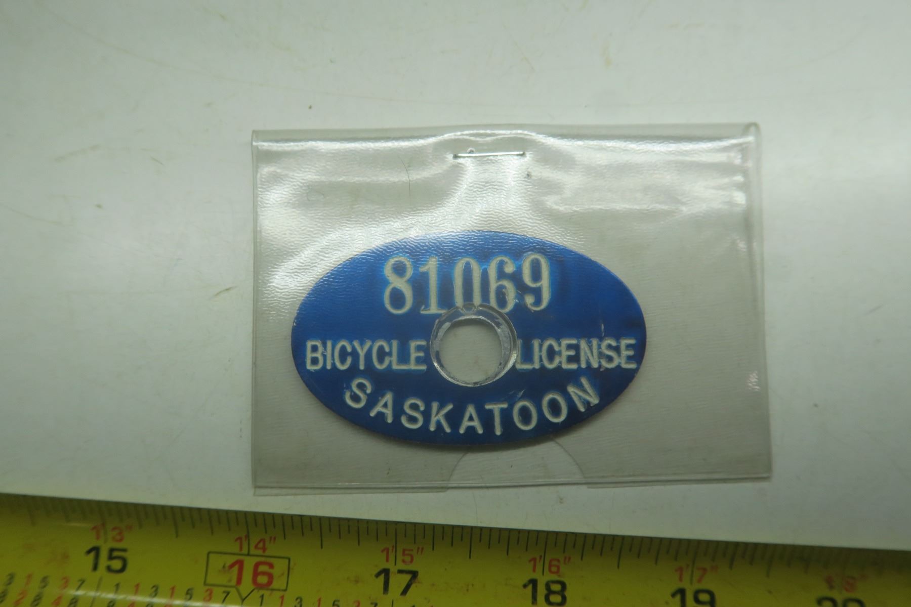 vintage Saskaton bicycle licence plate