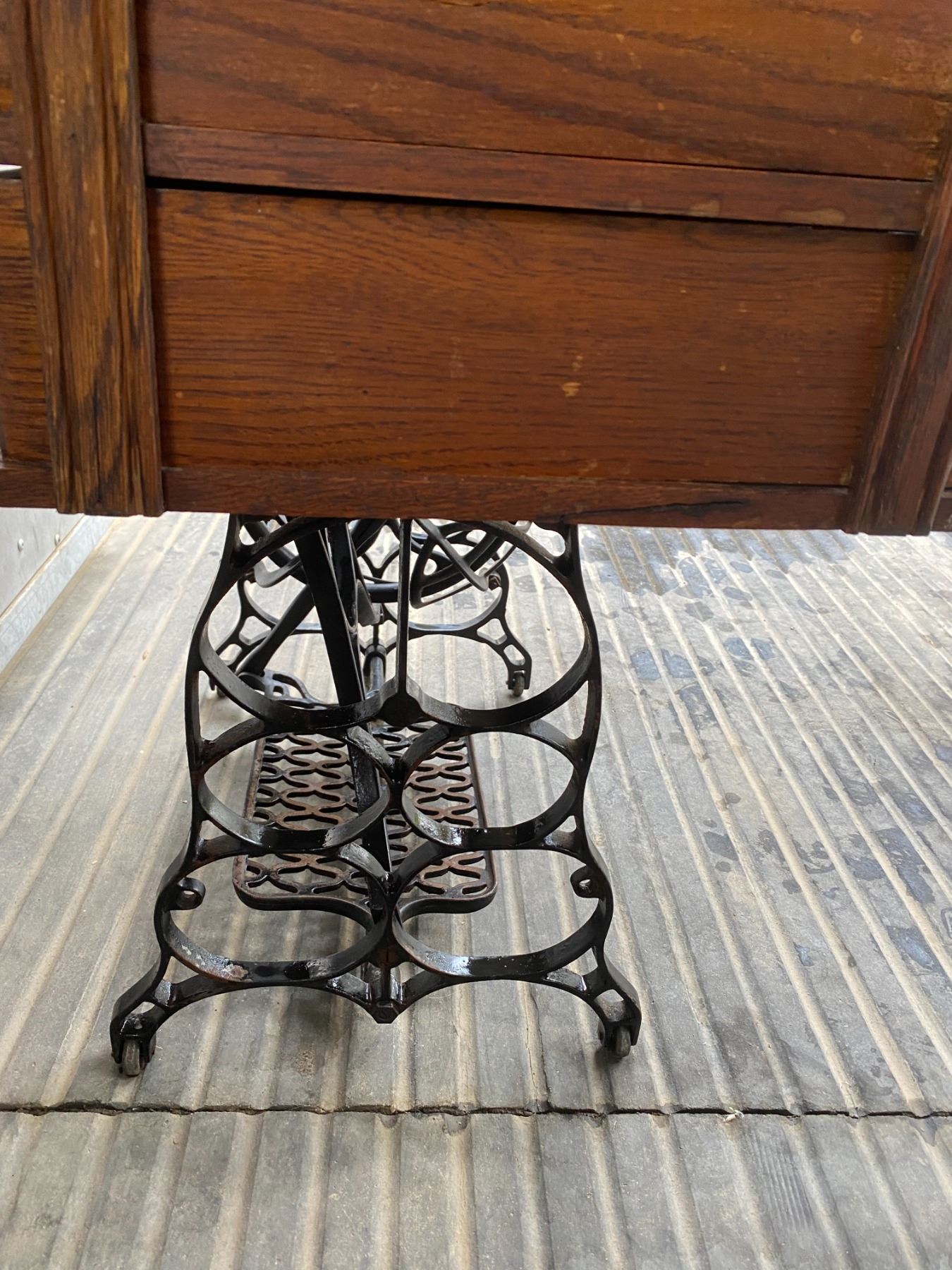 vintage Superior-A tredle sewing machine, solid oak cabinet, cast base, nice graphics, original atta