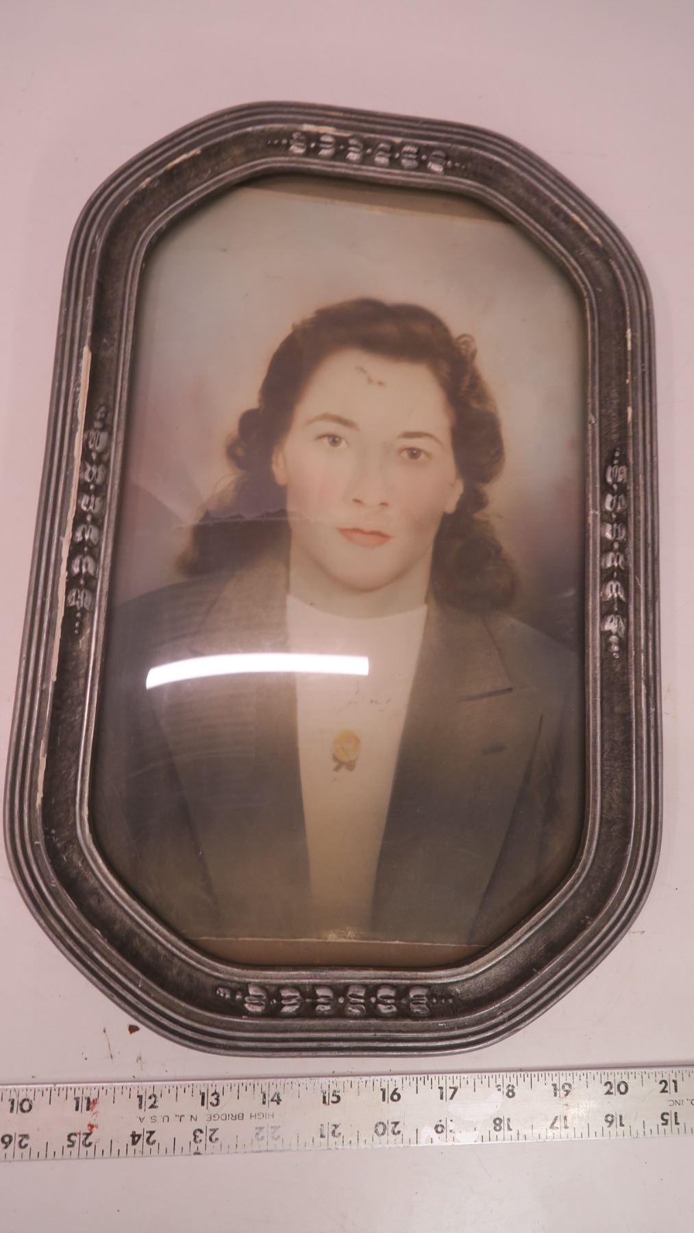 vintage bevelled glass picture frame with picture - 11"x17.25"