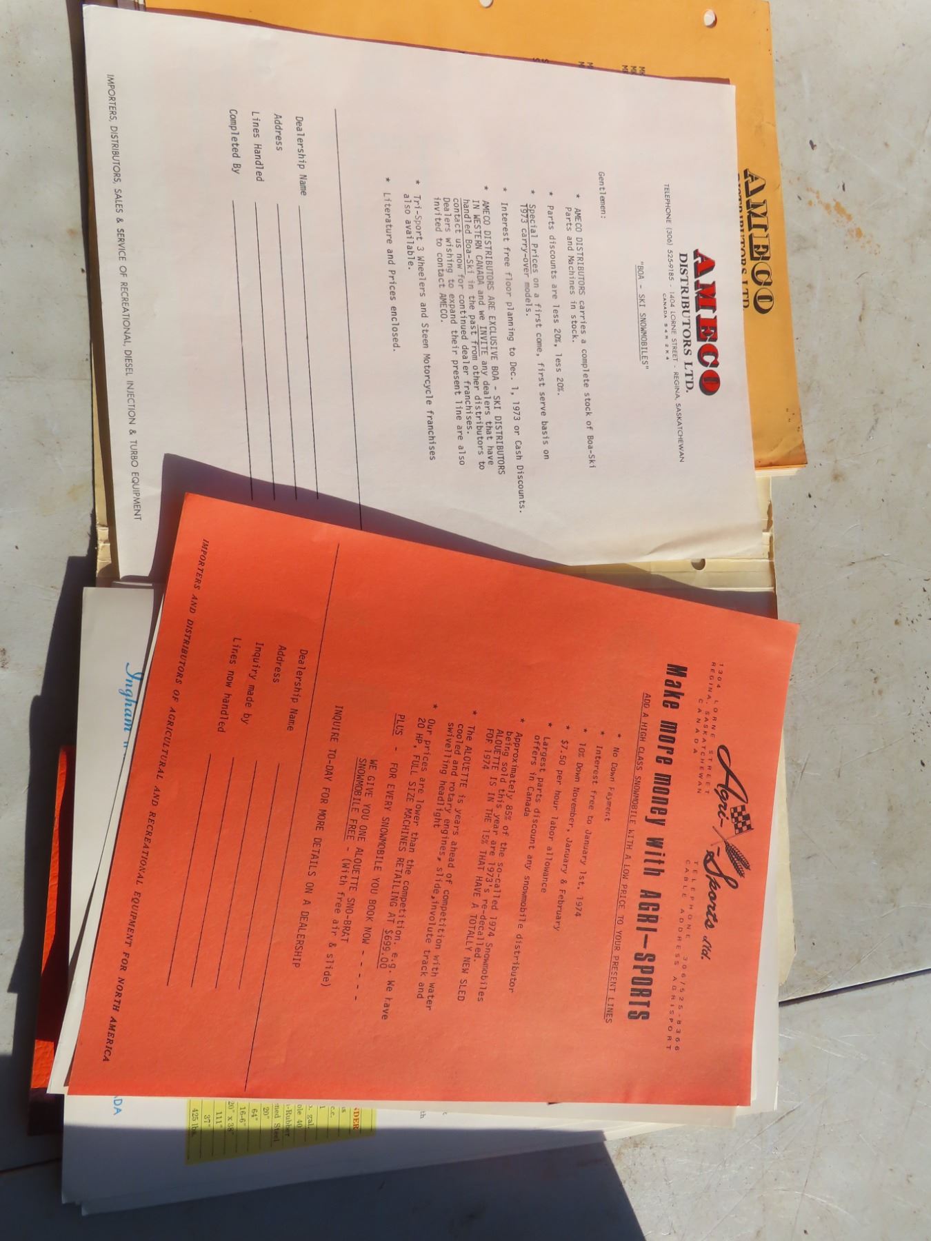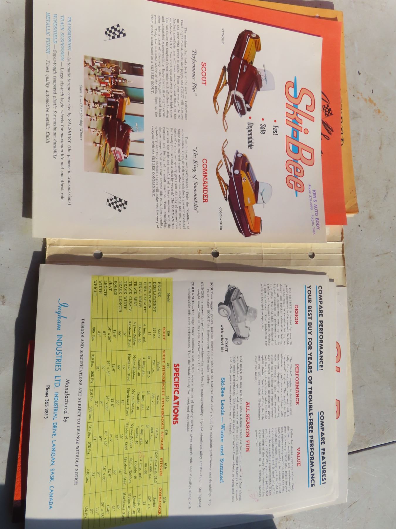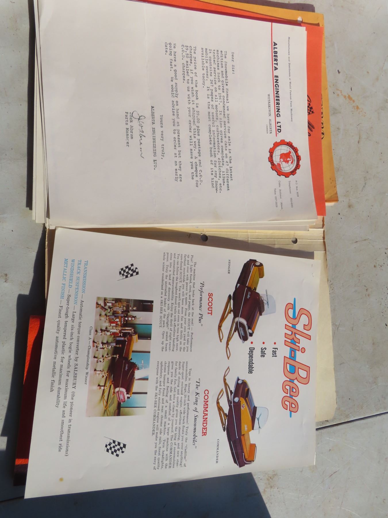 vintage boa ski, and ski bee snowmobile brochures and catalouge parts info