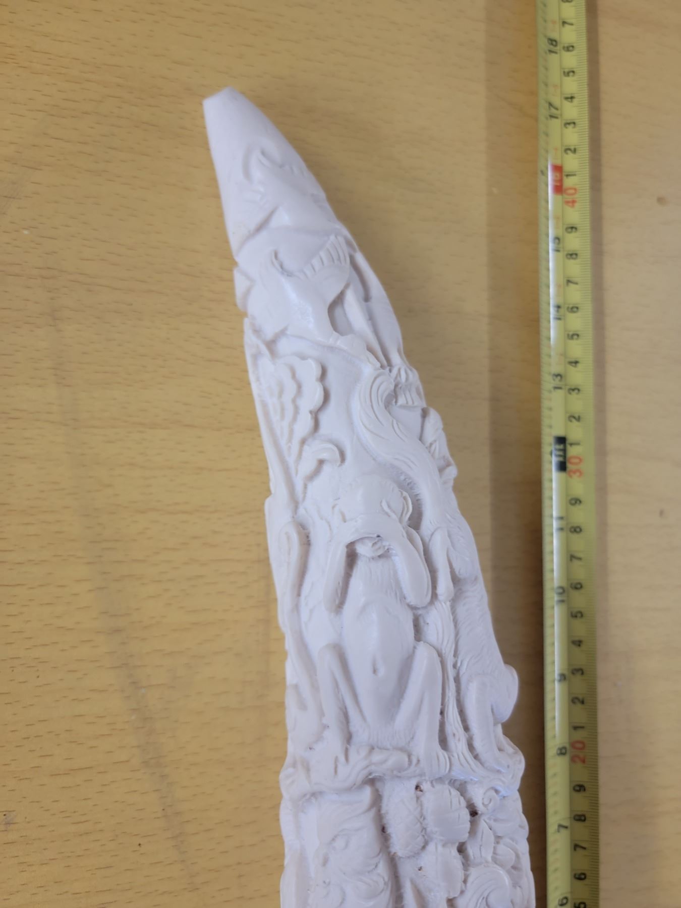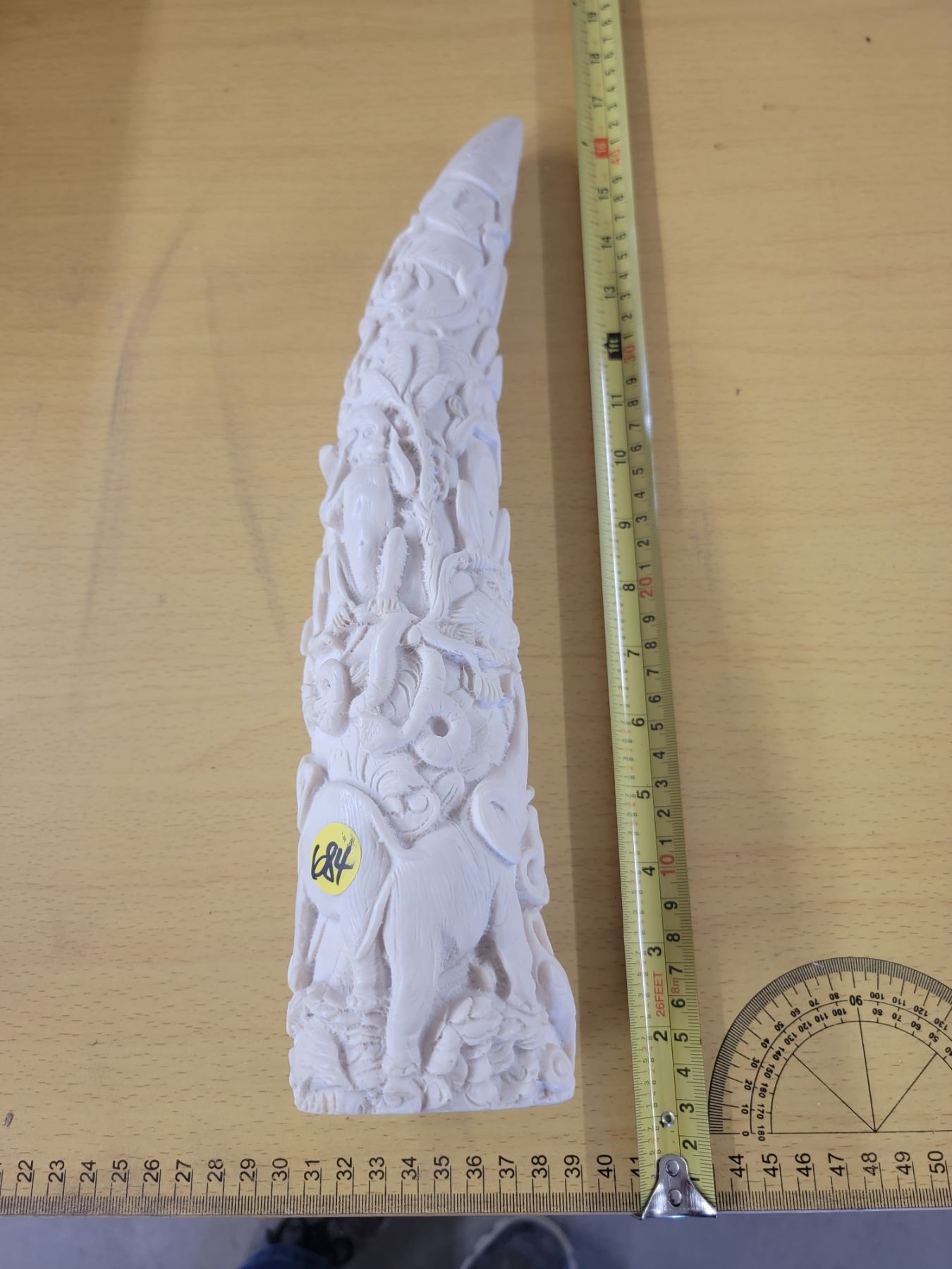 vintage carved ornate resin tusk w/ animal kingdom - heavy 15"