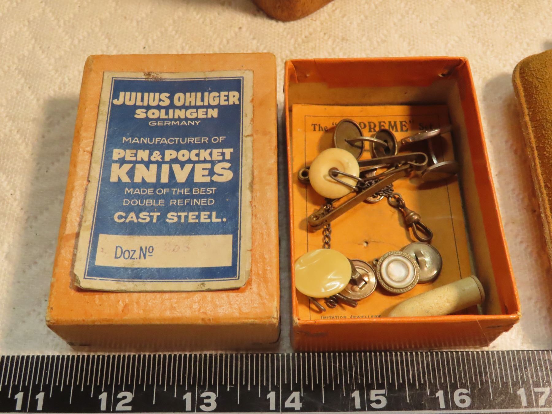vintage glass cutters, Mr. Surprise, handy sewing awl, cufflinks