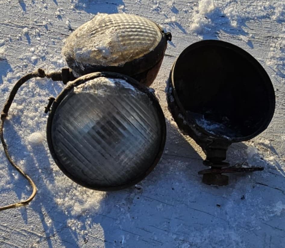 vintage head lights and bucket