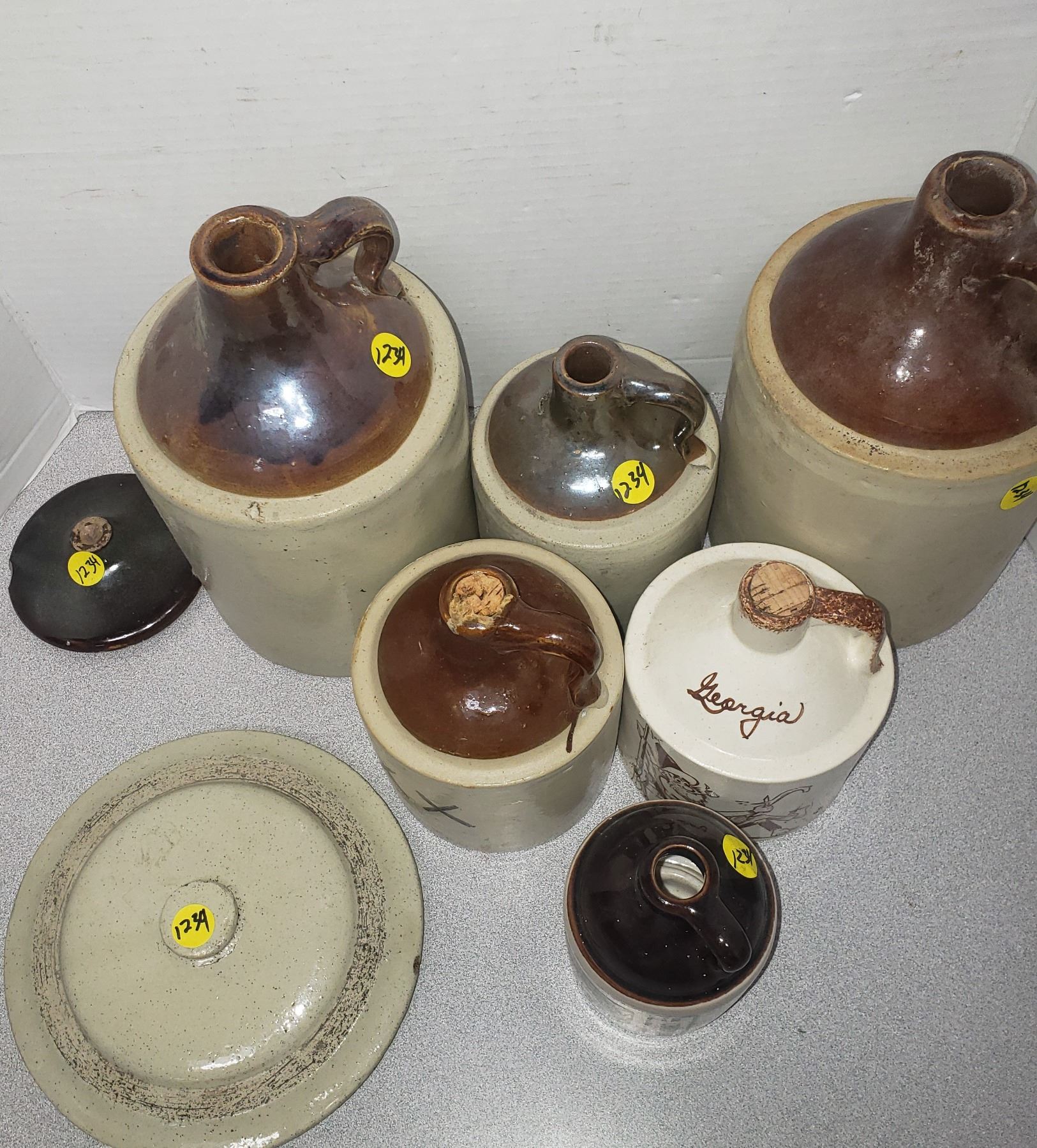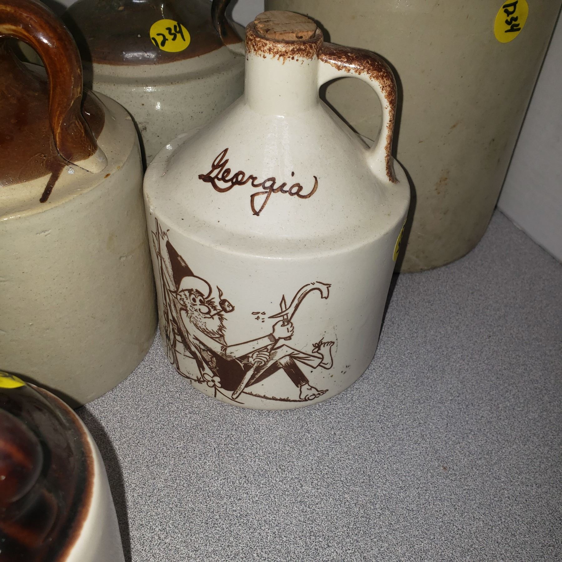 vintage jugs clay georgia hand painted by the Cash Erwin Texas